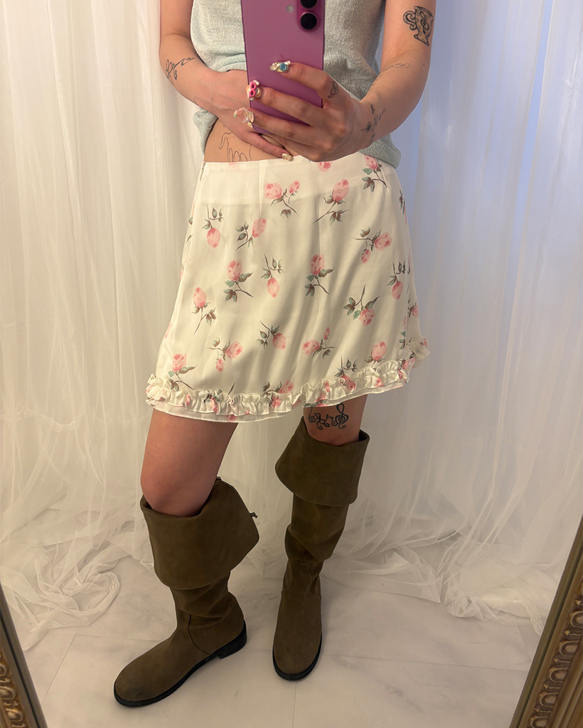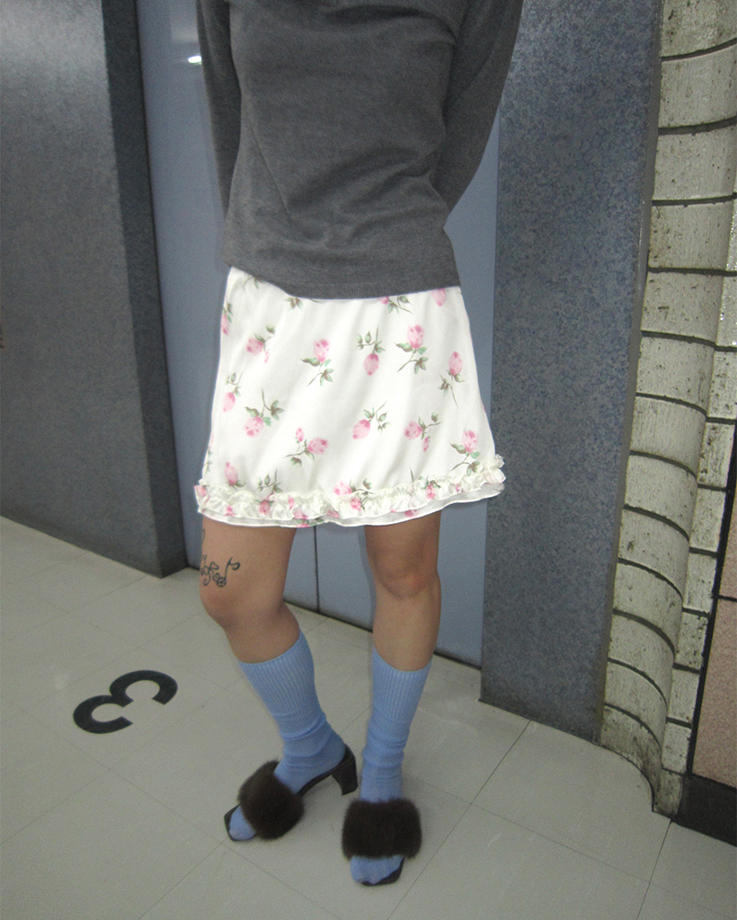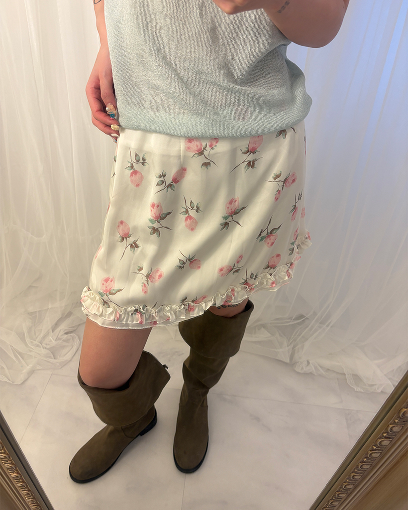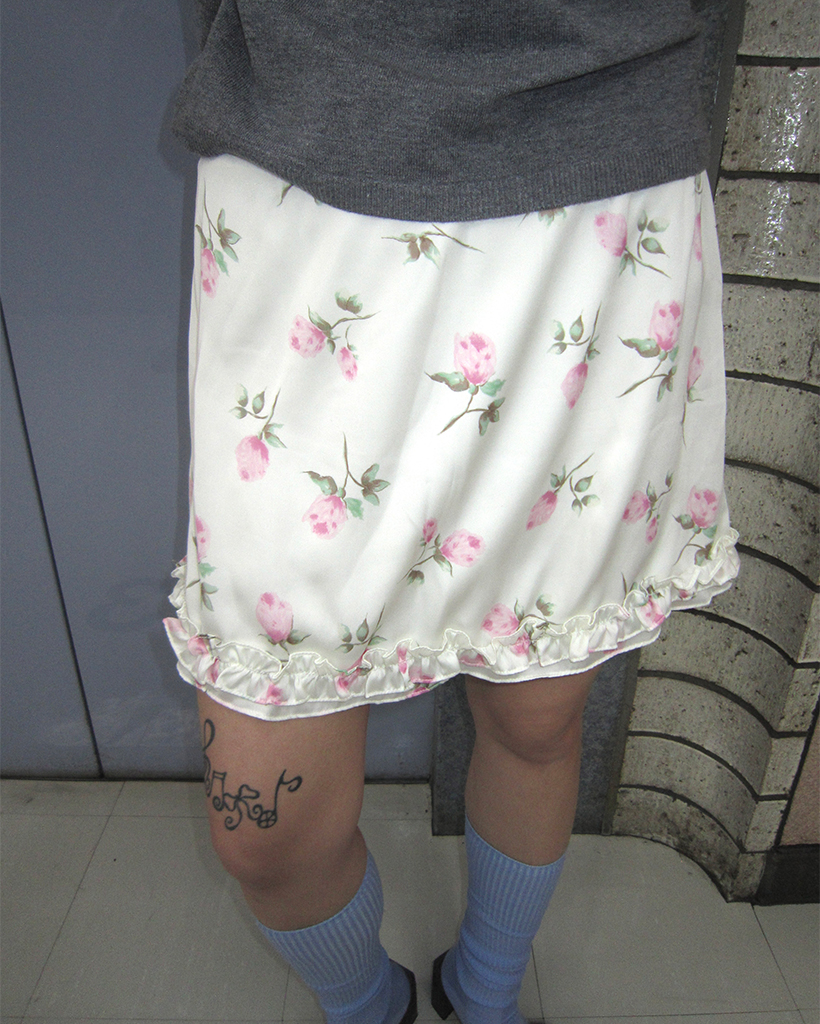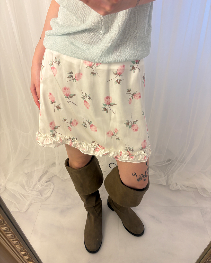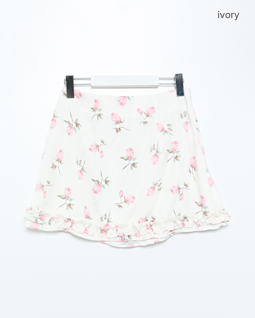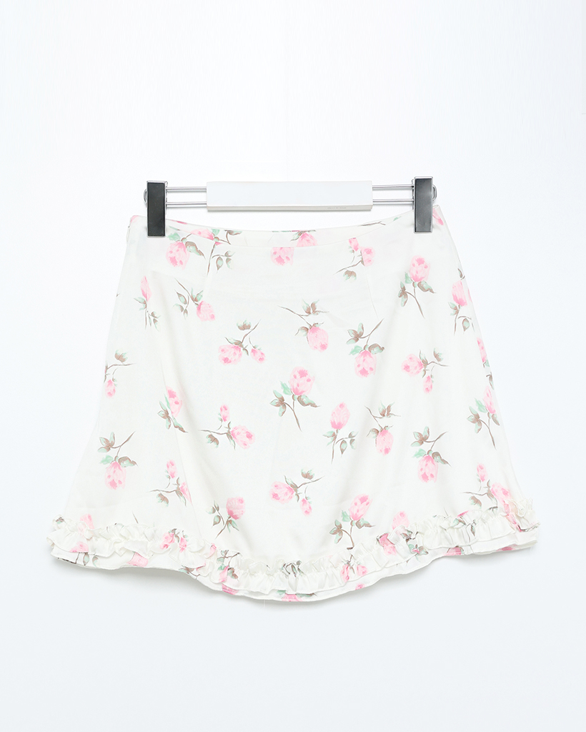 ローズサテンフリルヘムミニスカート