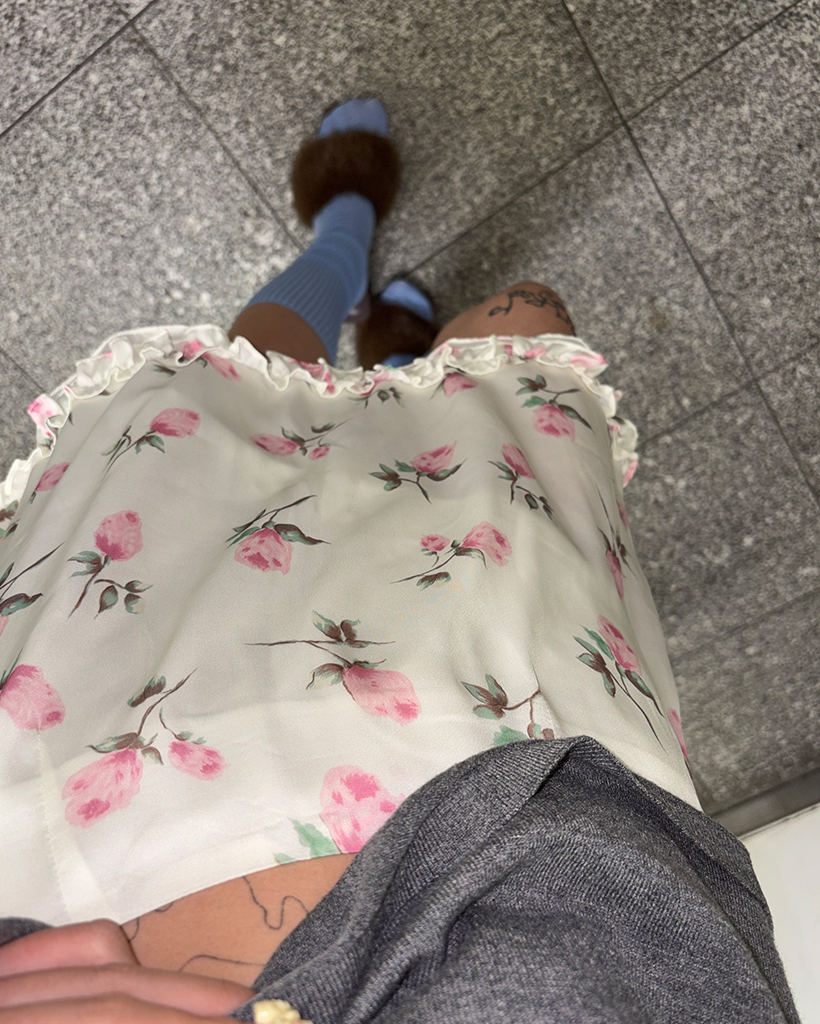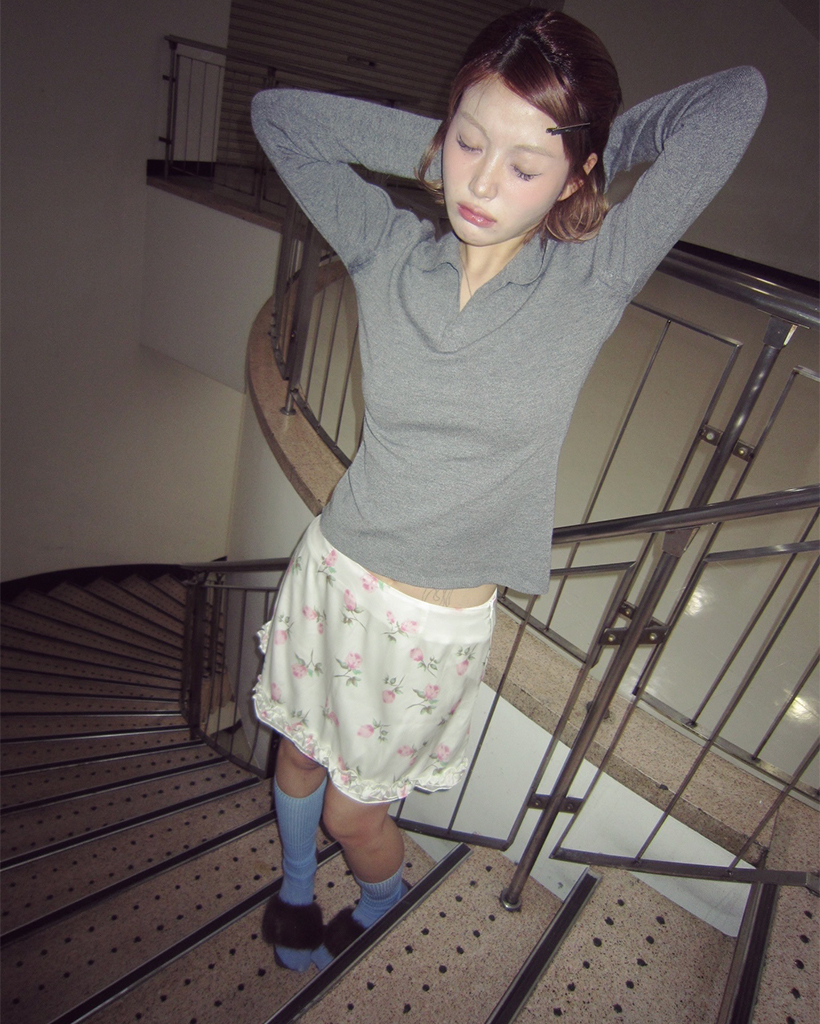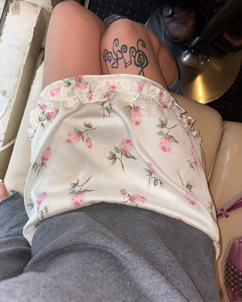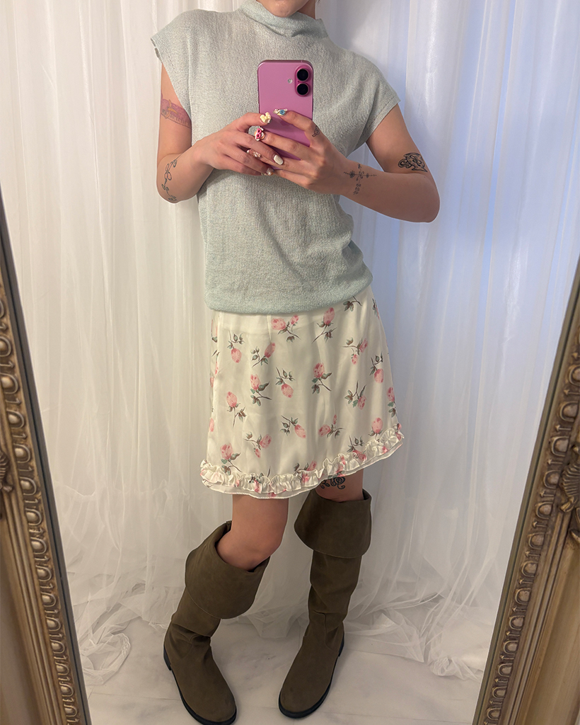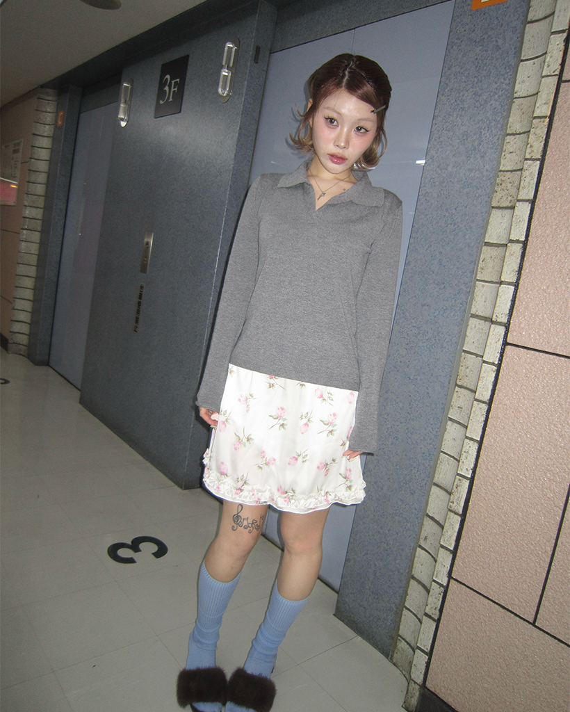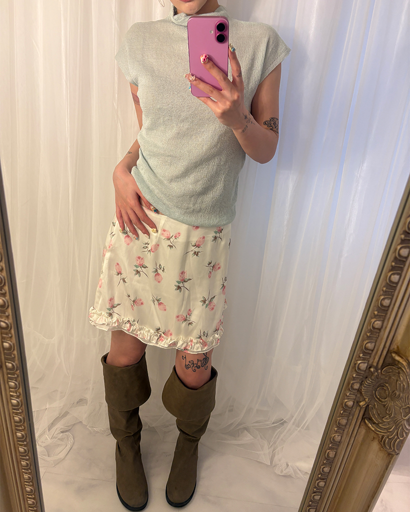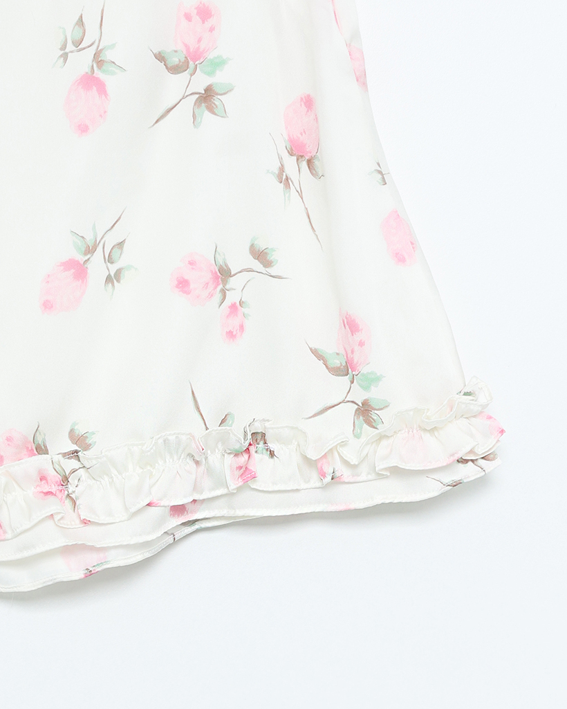 ローズサテンフリルヘムミニスカート