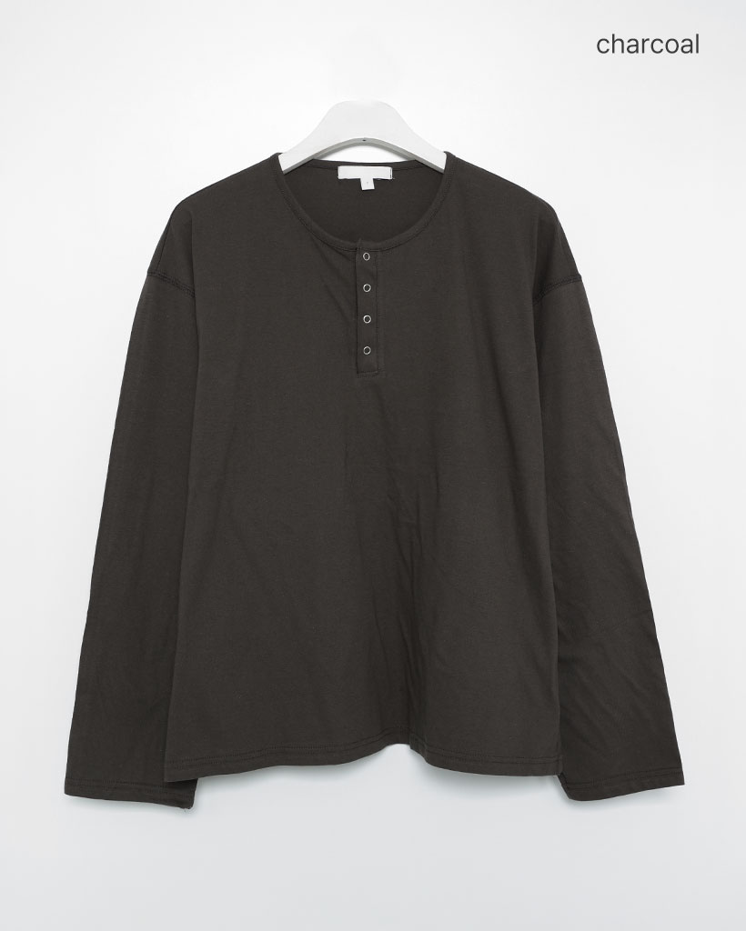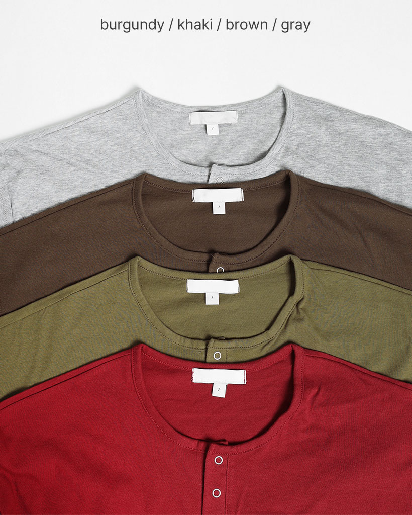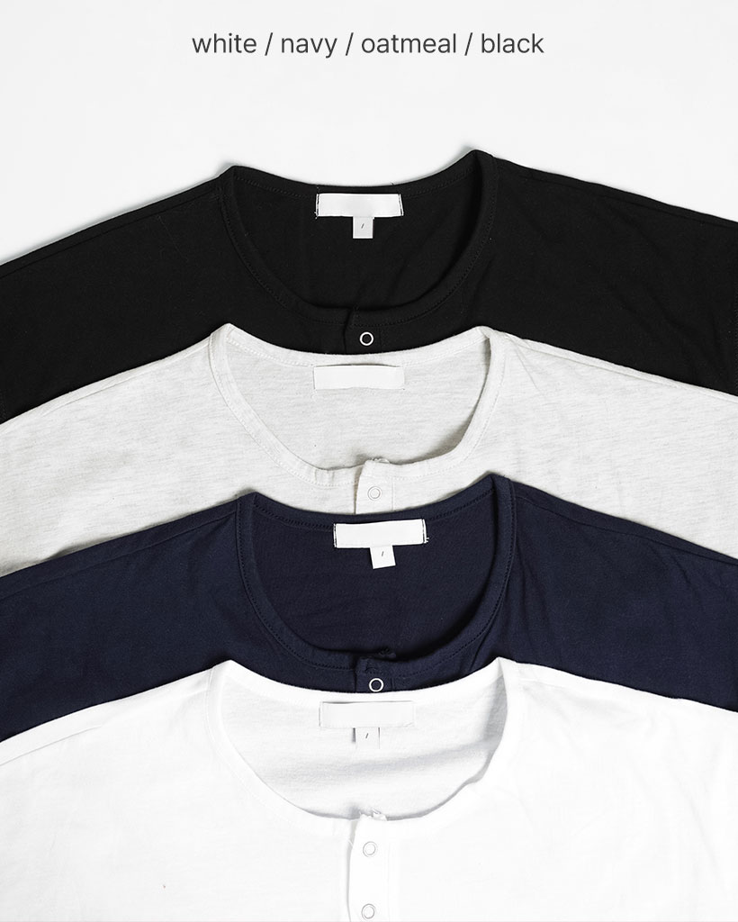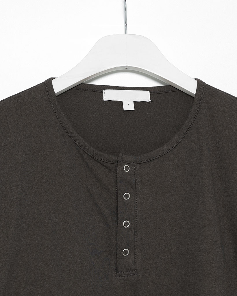 スナップボタンステッチヘンリーネックTシャツ