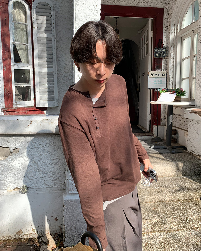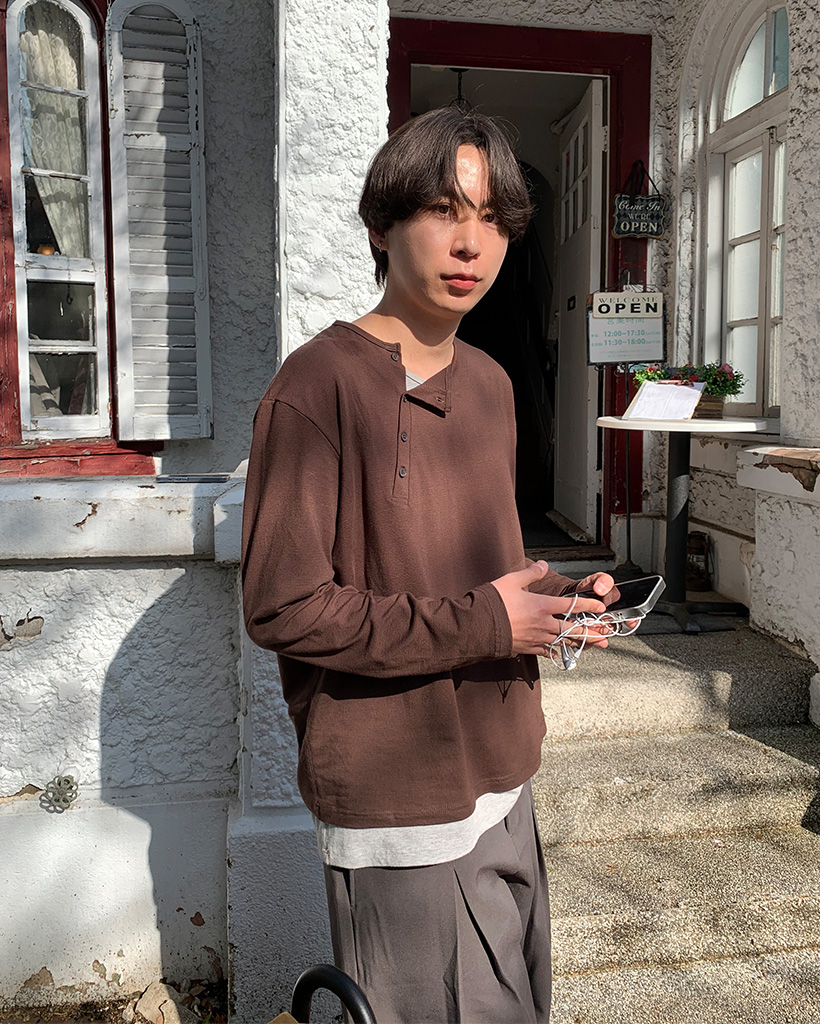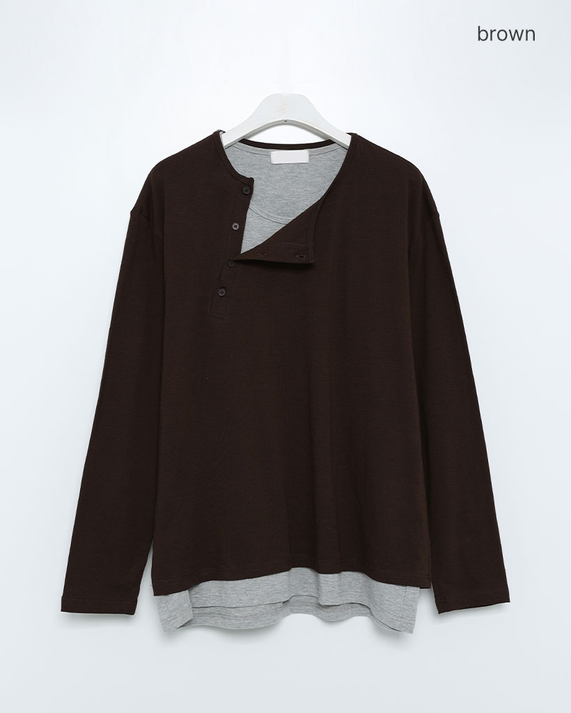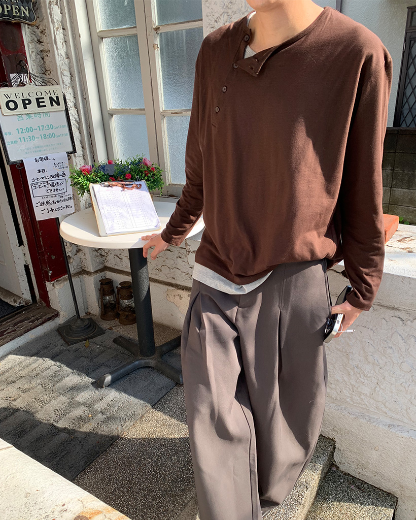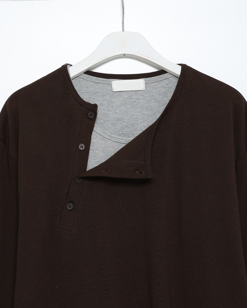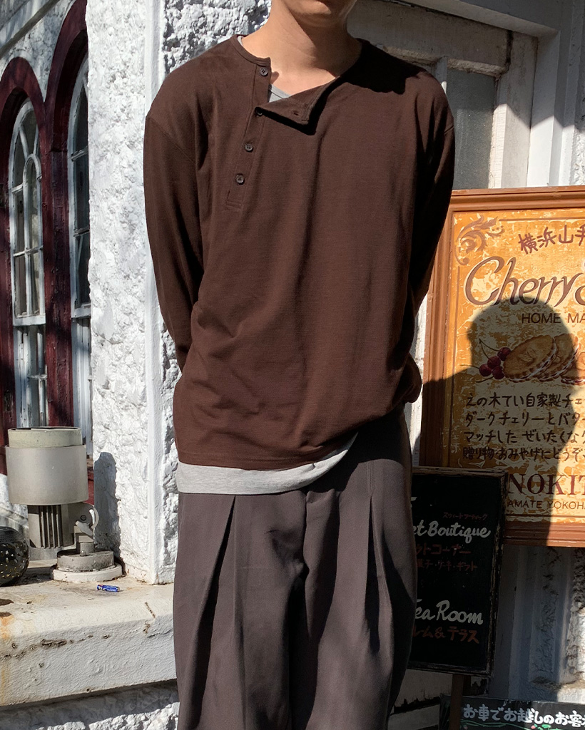 斜線ヘンリーネックポイントボタン長袖Tシャツ