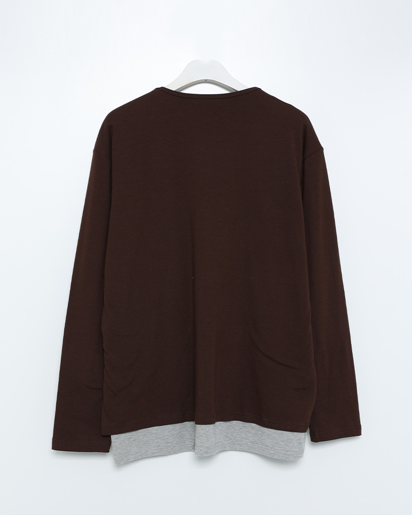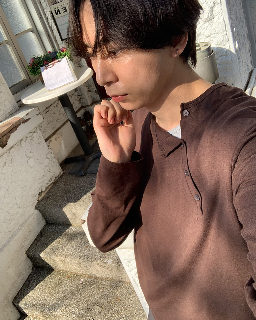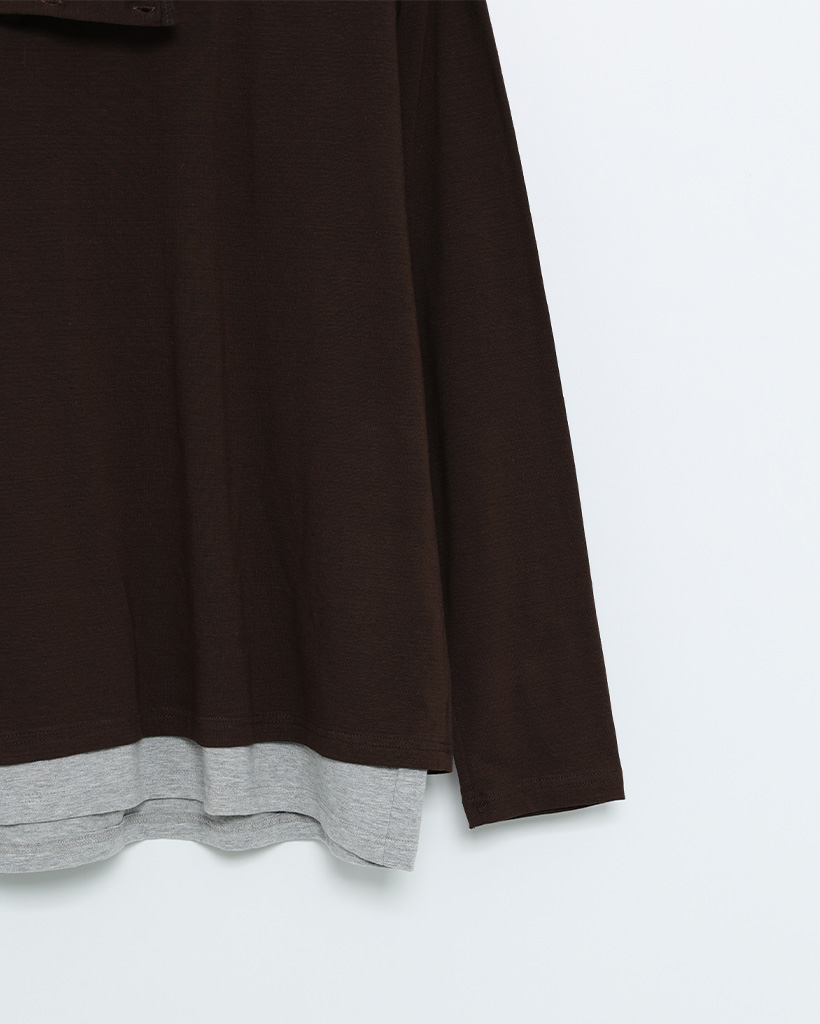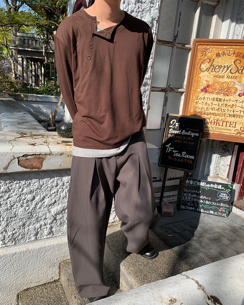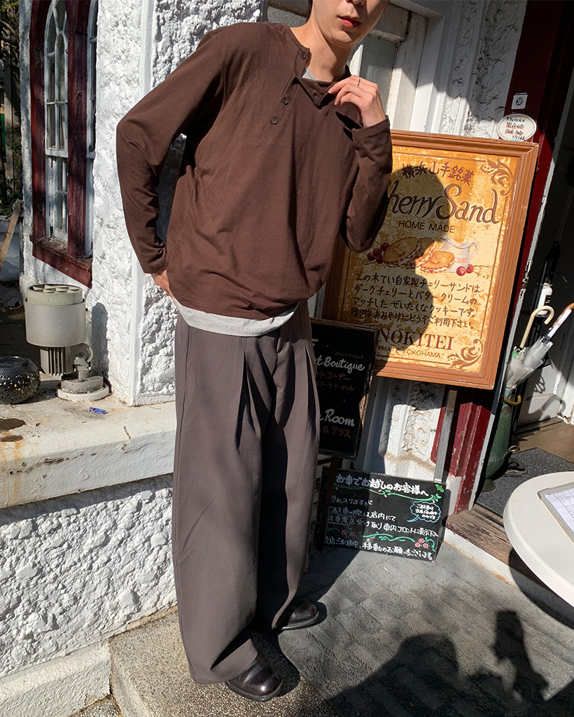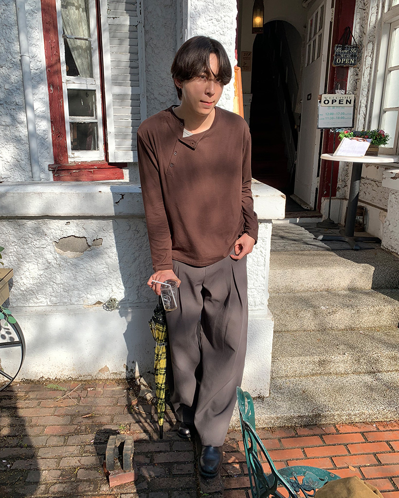 斜線ヘンリーネックポイントボタン長袖Tシャツ