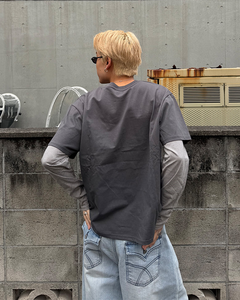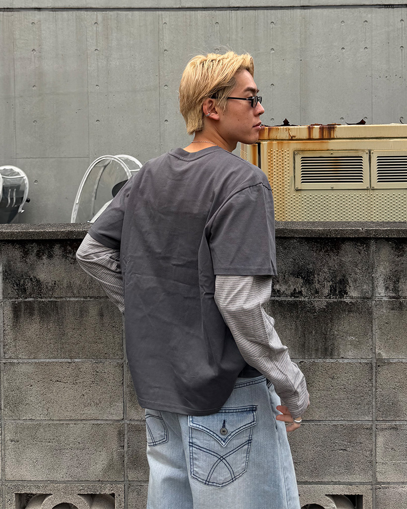 ツートンボーダーレイヤードTシャツ