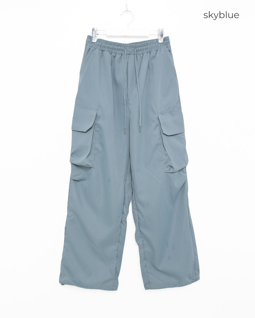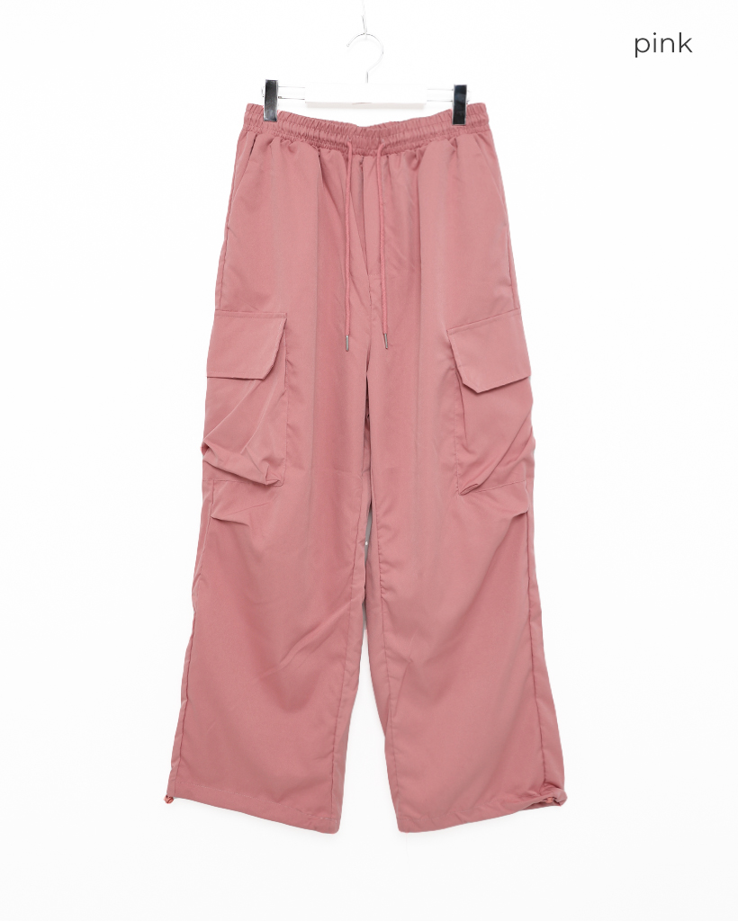 (ユニセックス)ウエストドローストリングコードパラシュートカーゴパンツ