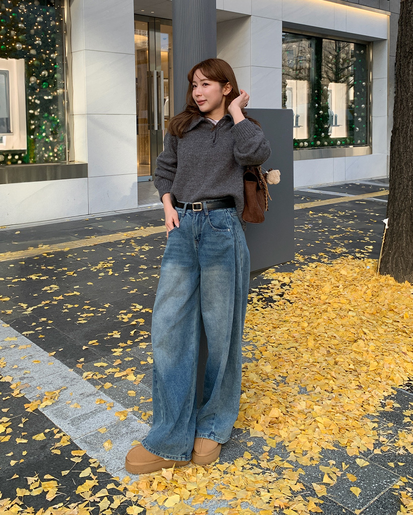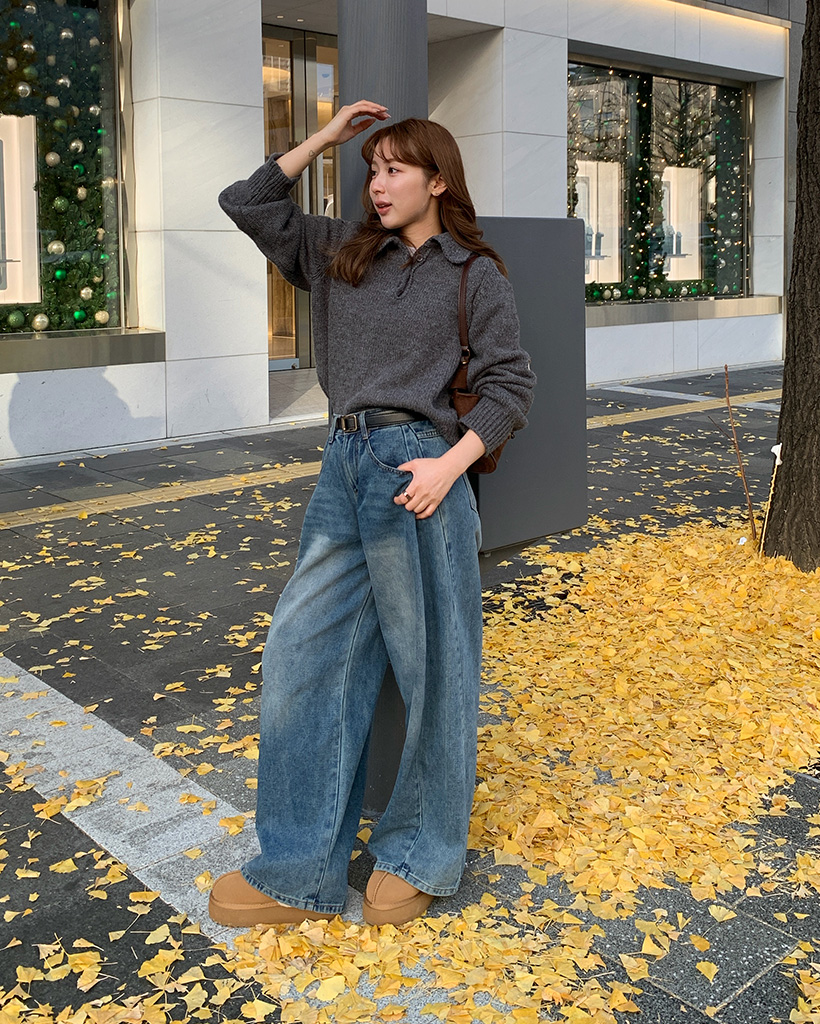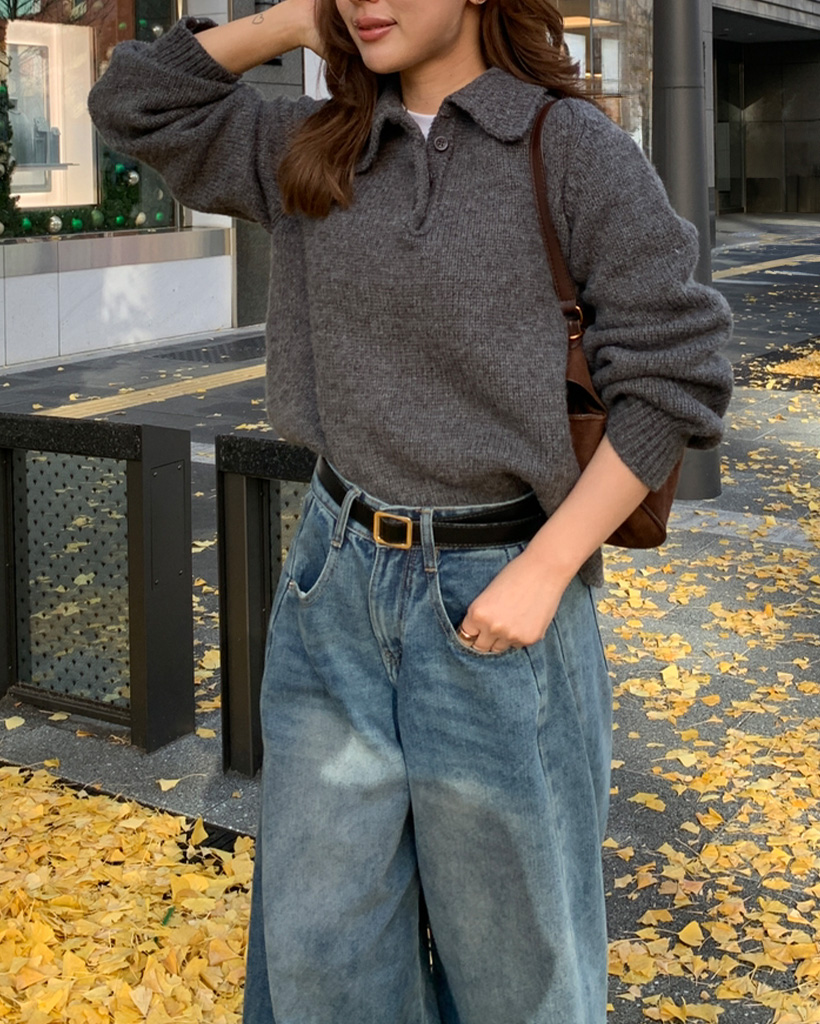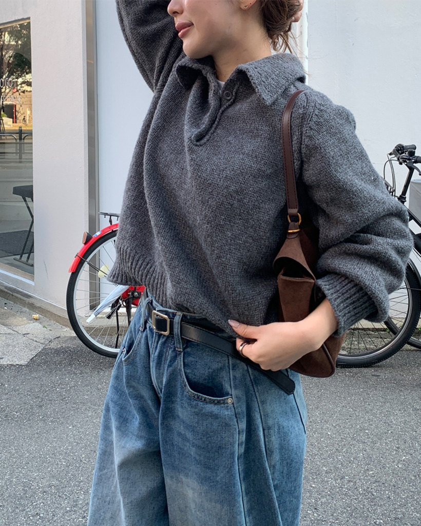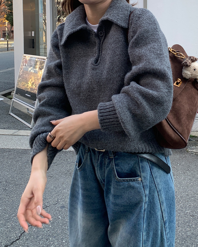 ボタンカラー長袖ニット
