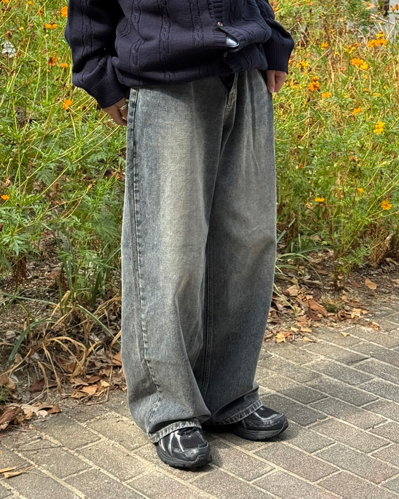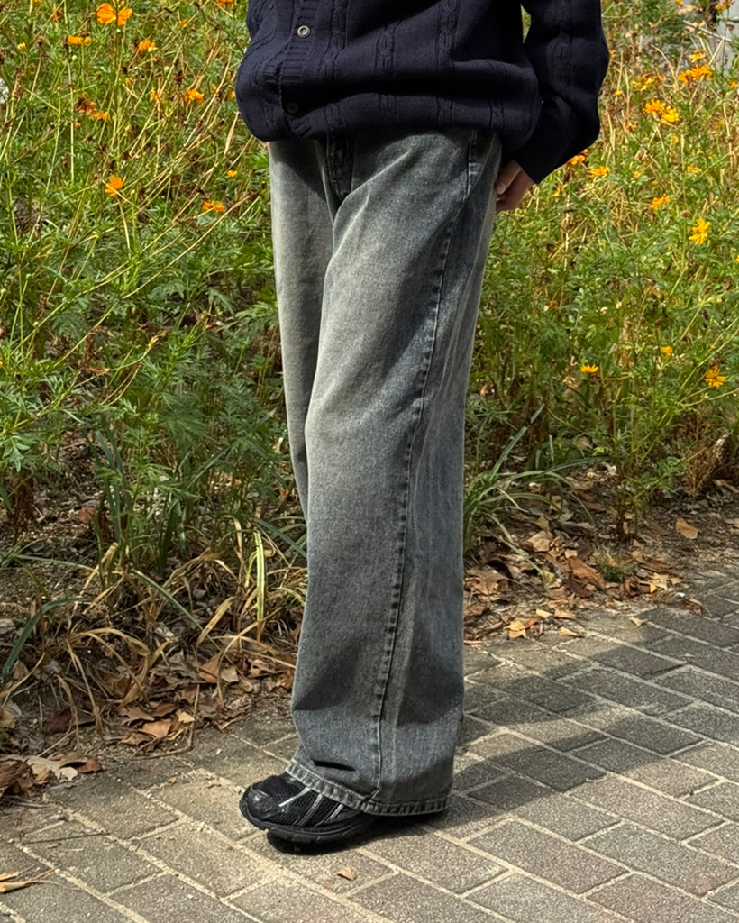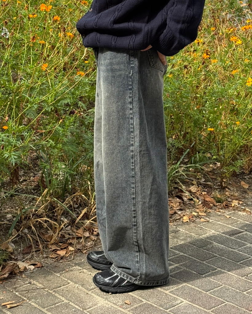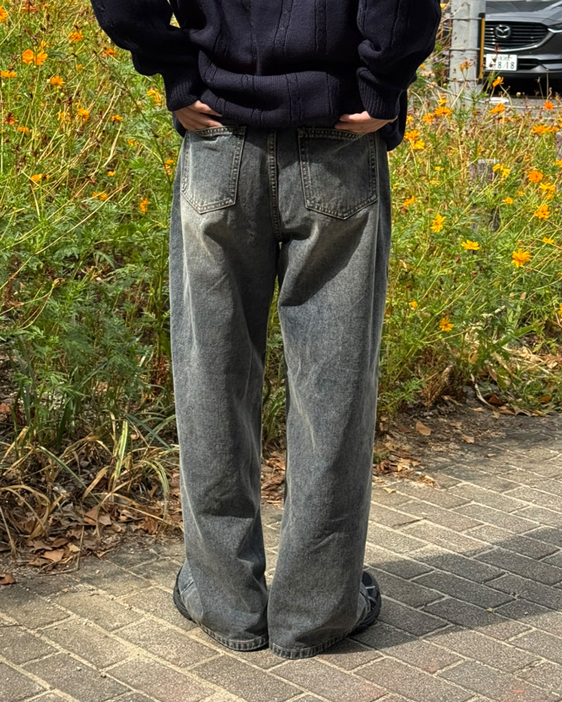 (ユニセックス)ウォッシングワイドデニムパンツ