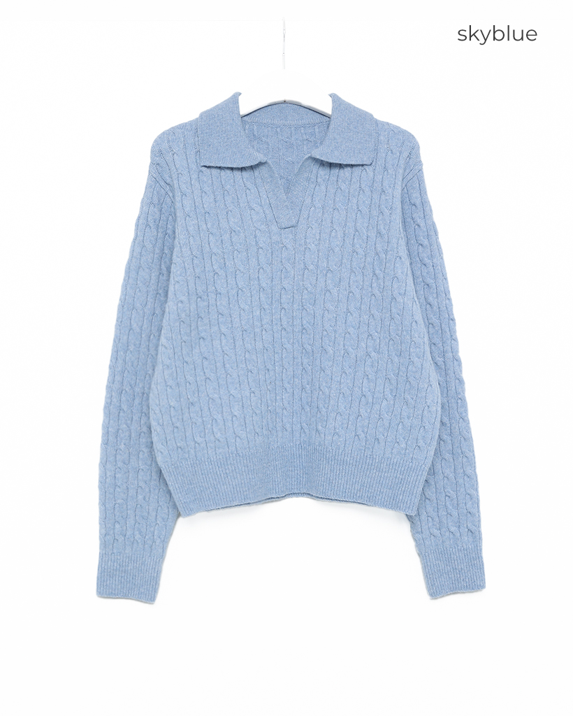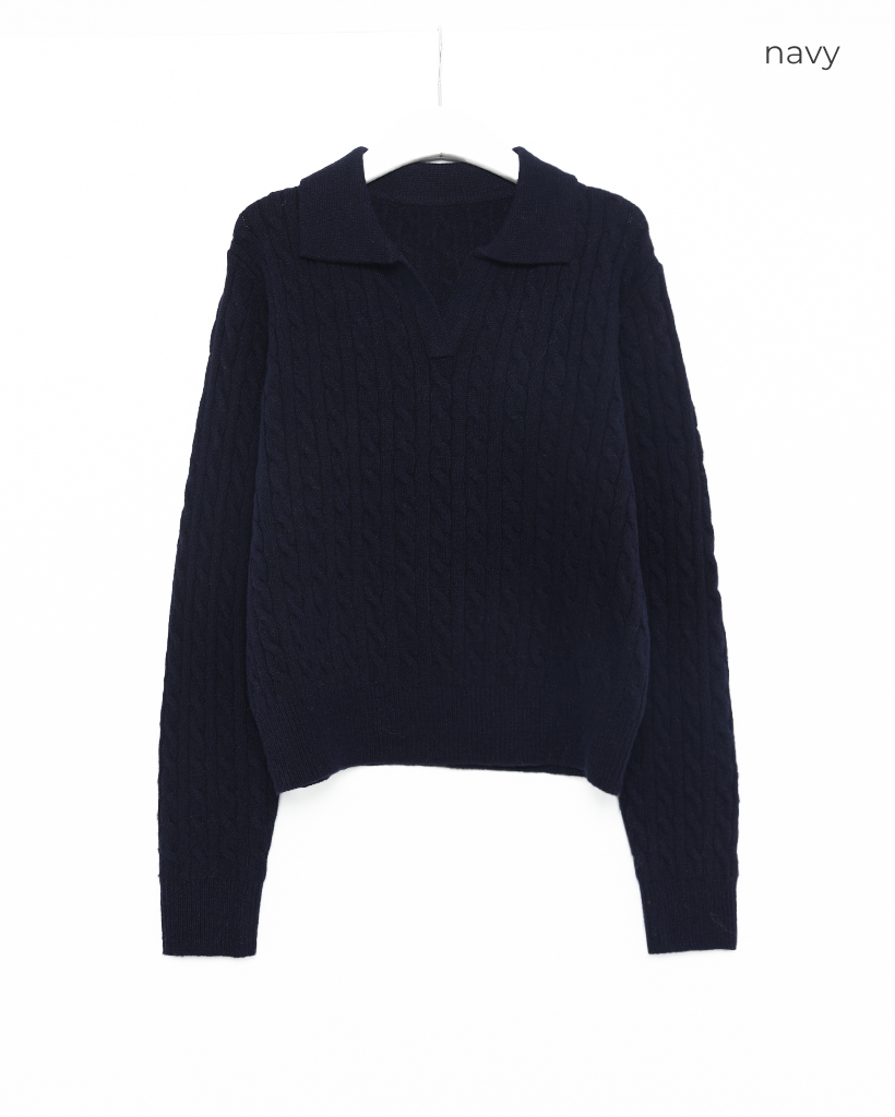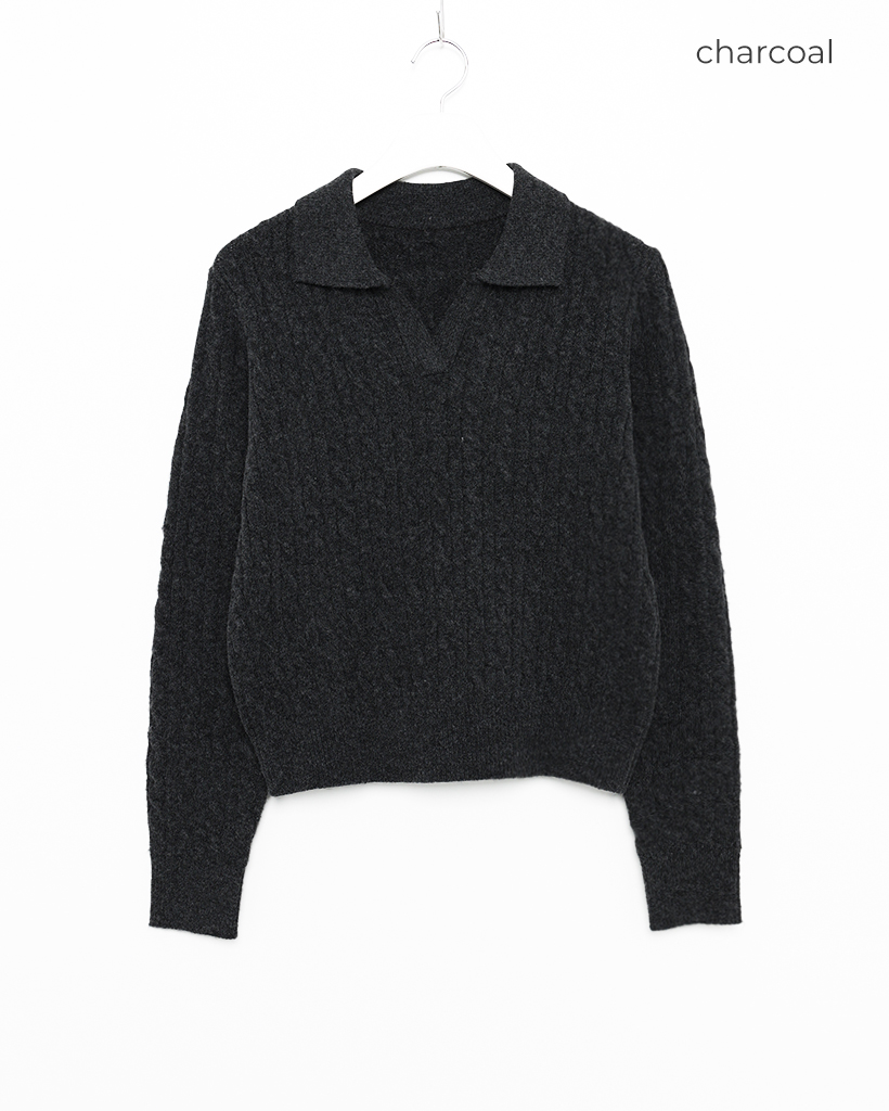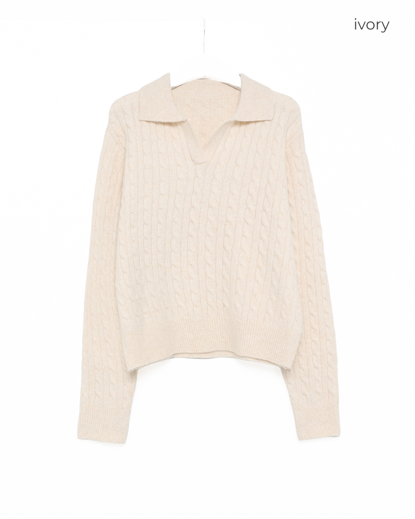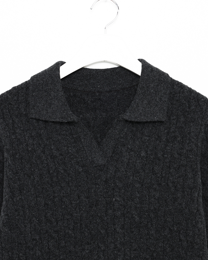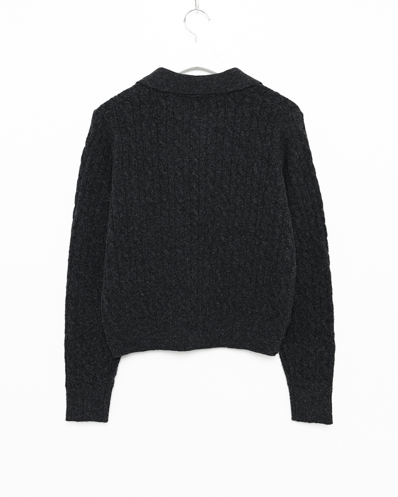 オープンカラーケーブルニット