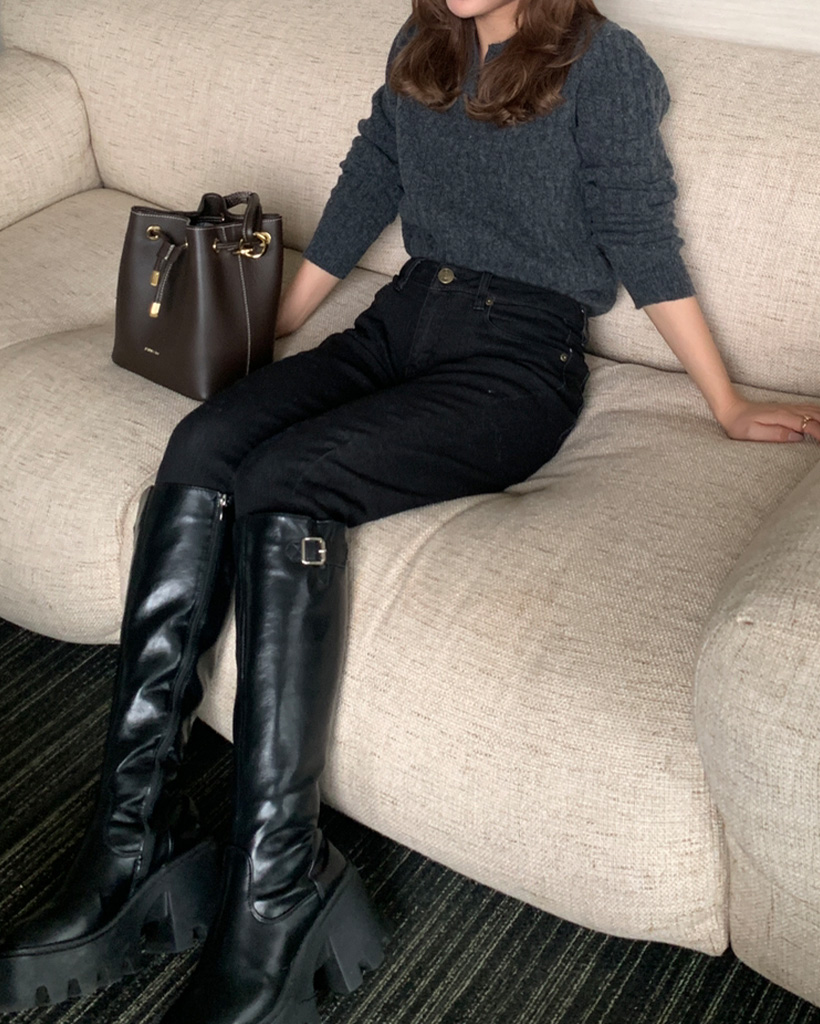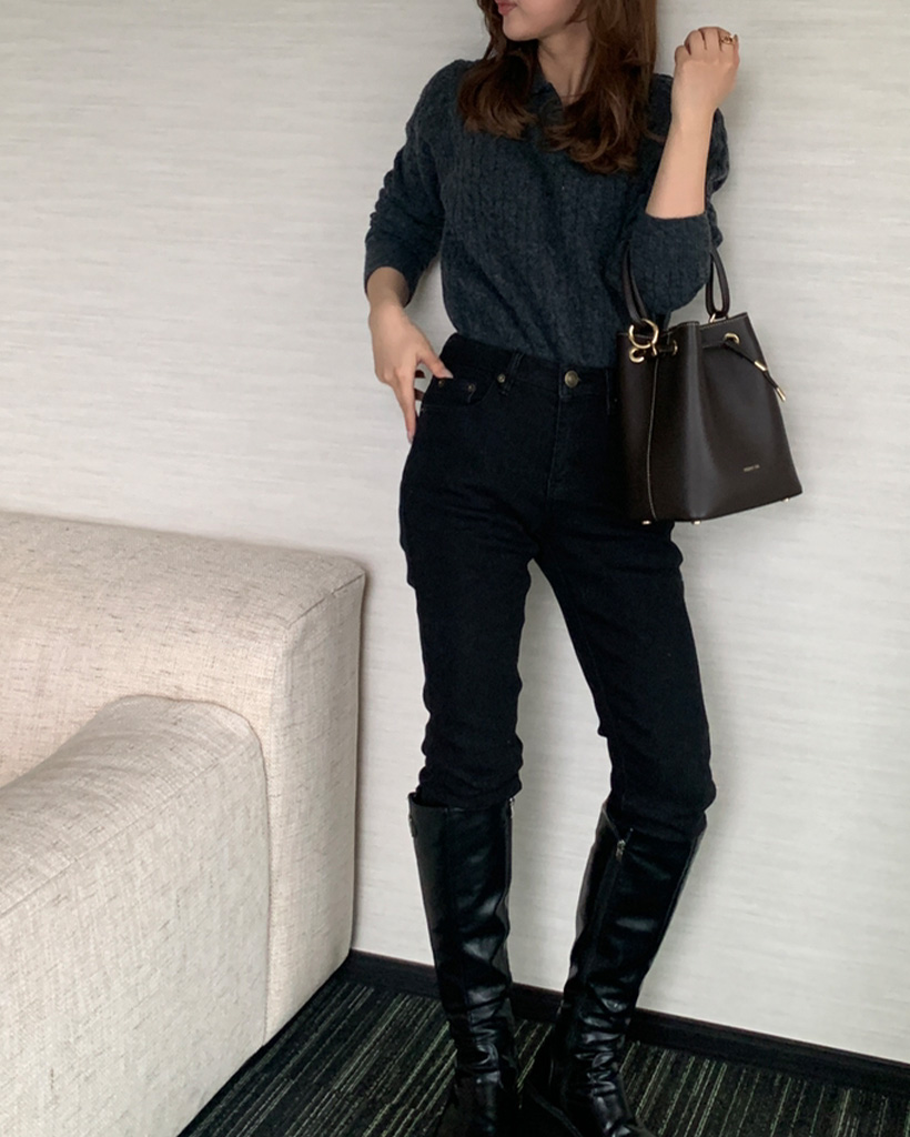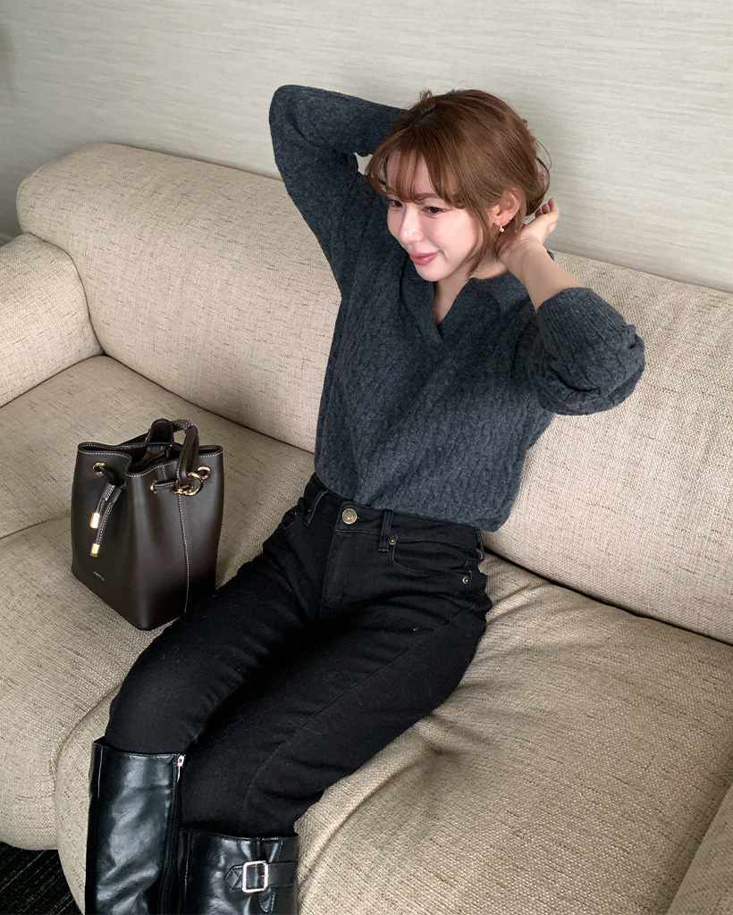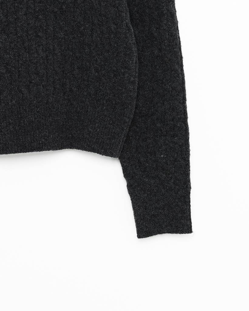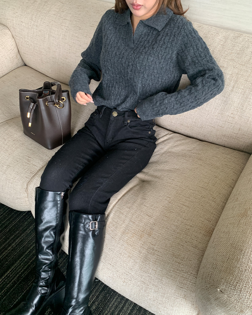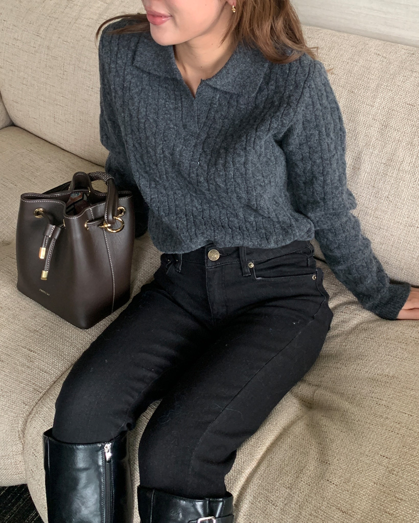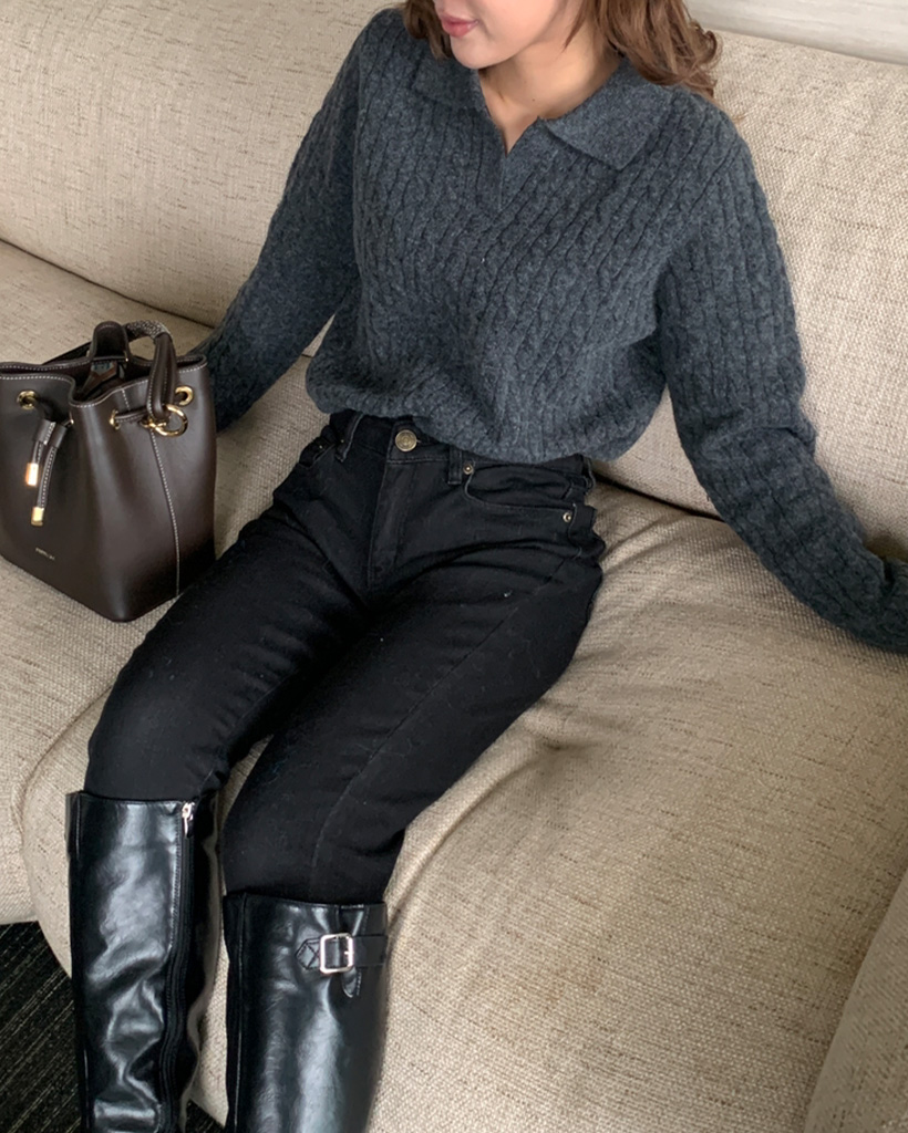 オープンカラーケーブルニット