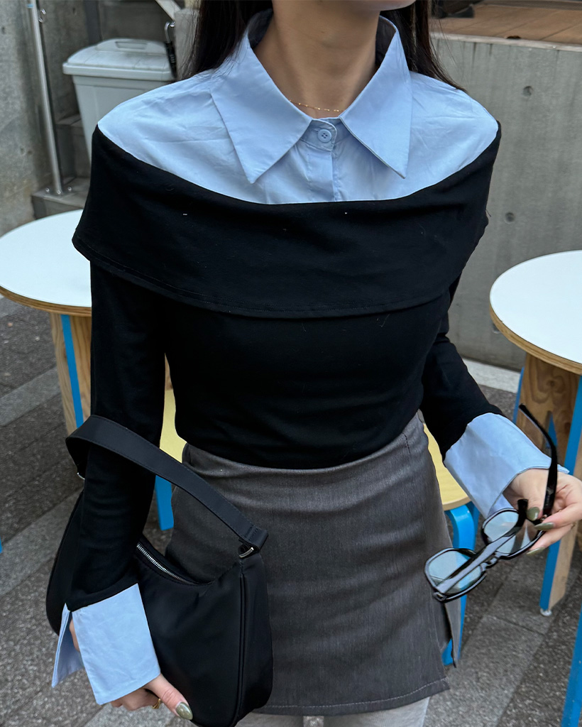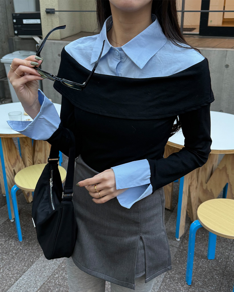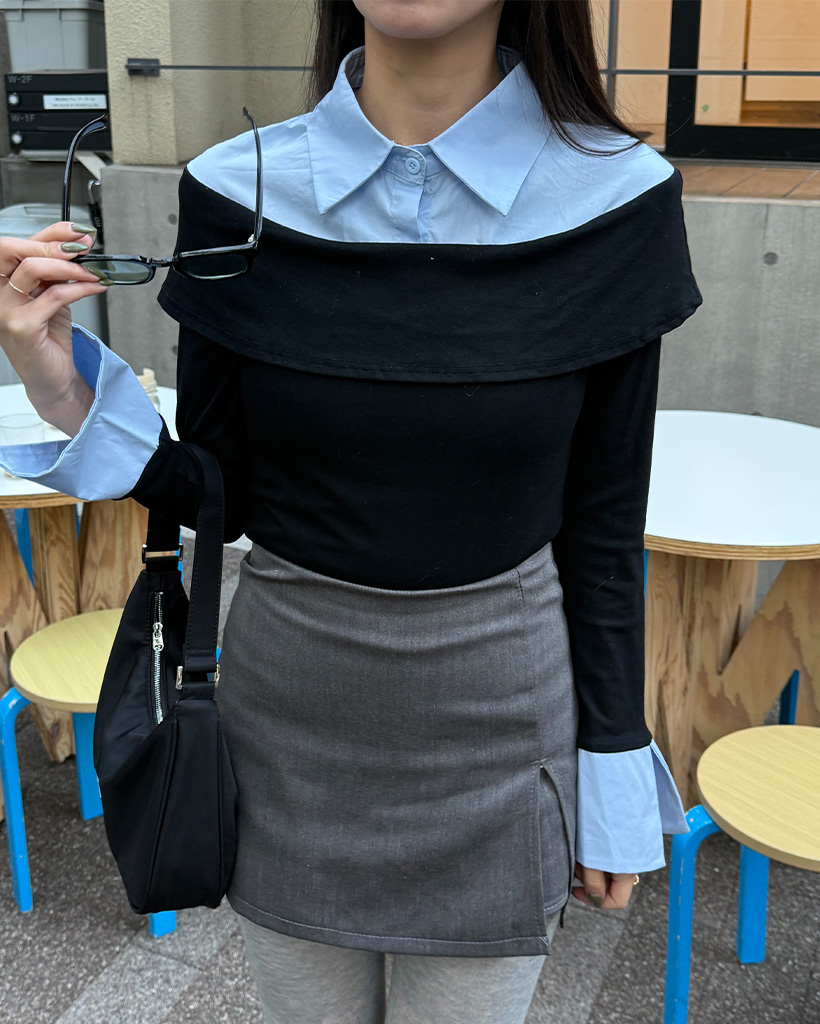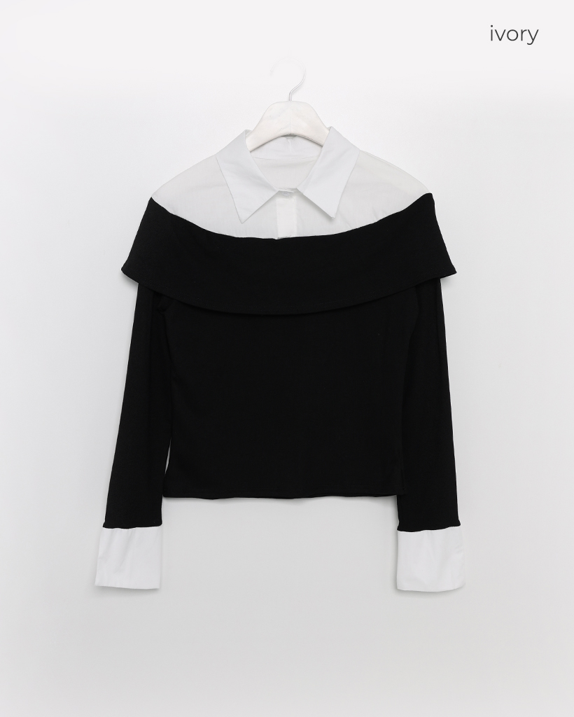 シャツレイヤードオフショルブラウス