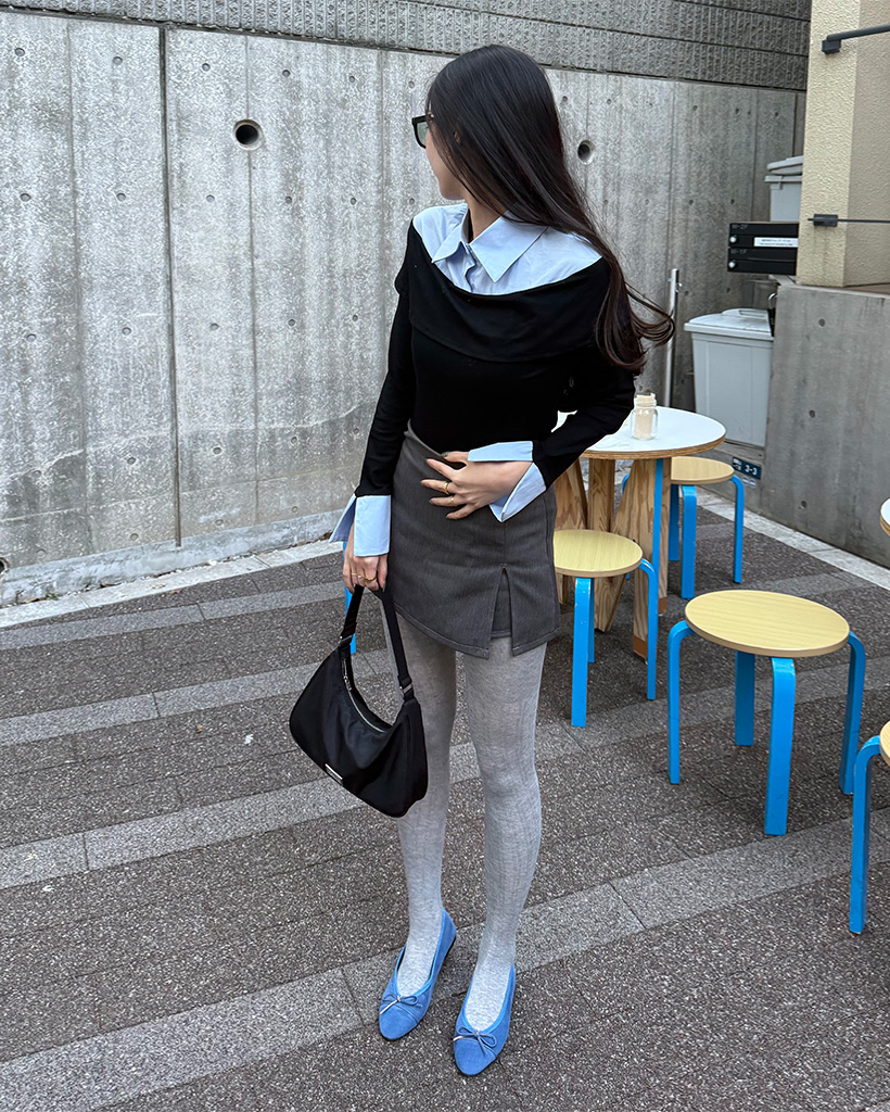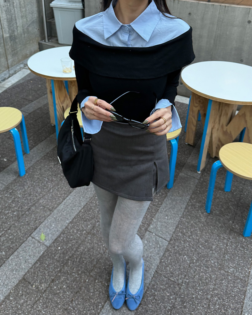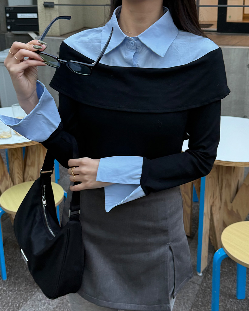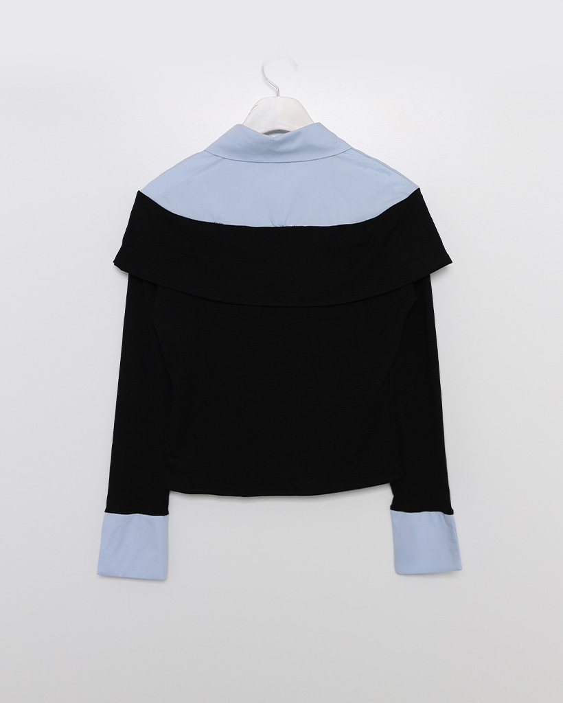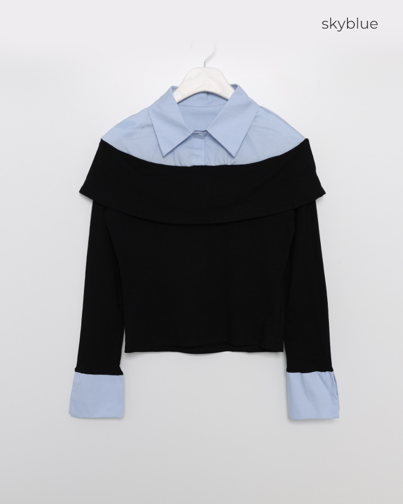 シャツレイヤードオフショルブラウス