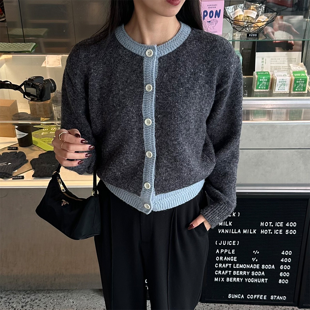 バイカラーポイントラウンドカーディガン