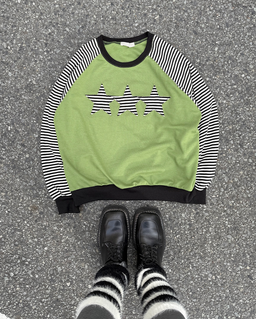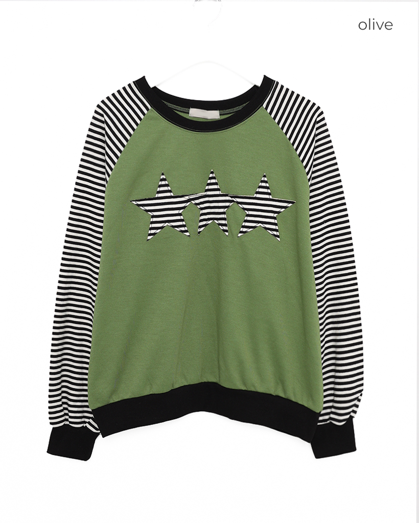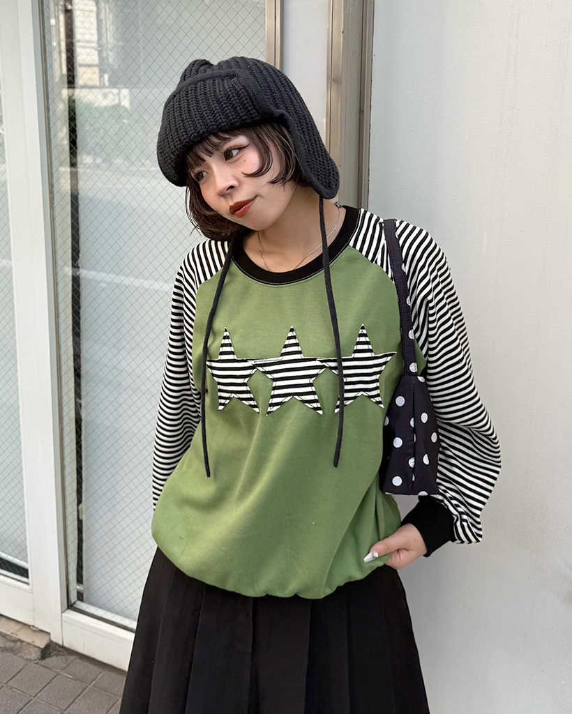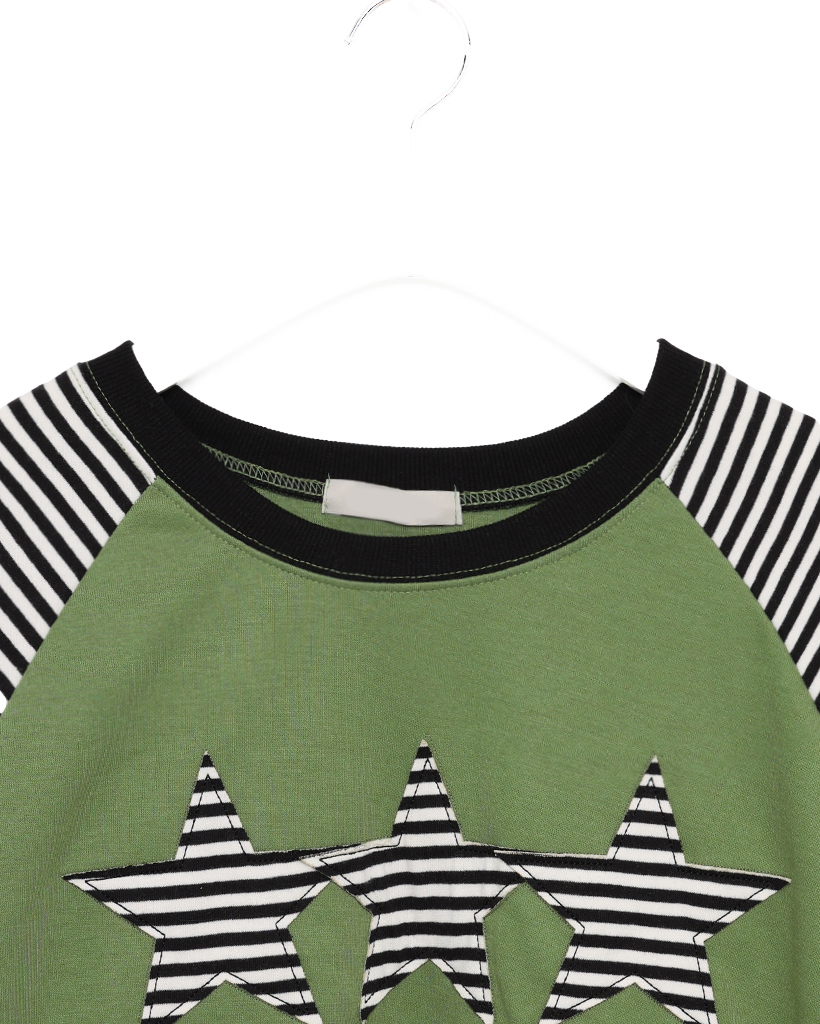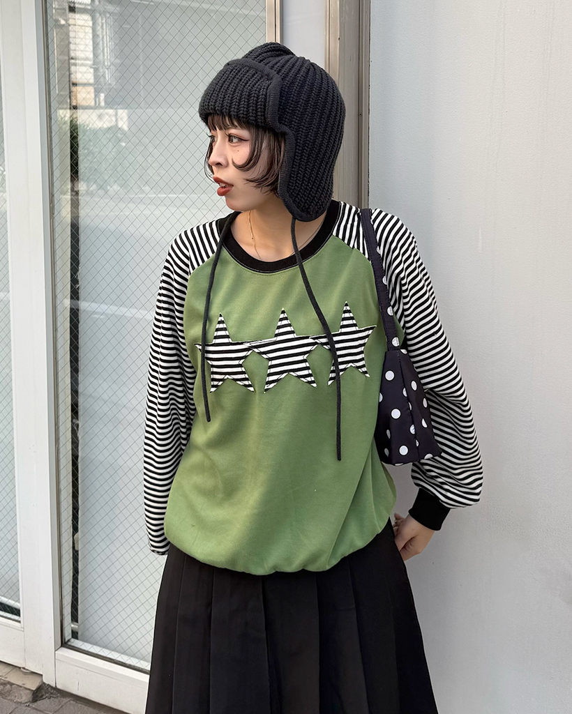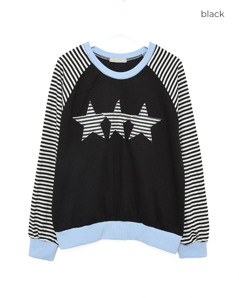 (ユニセックス)ボーダースターパッチラグランスウェットシャツ