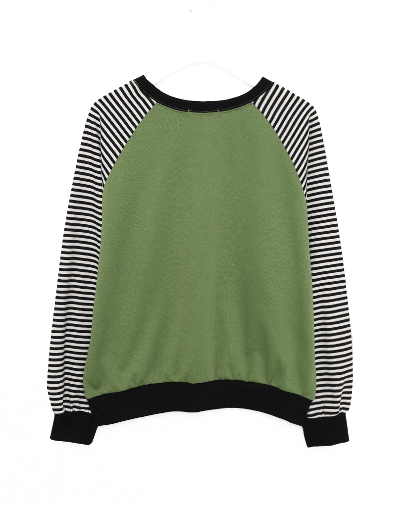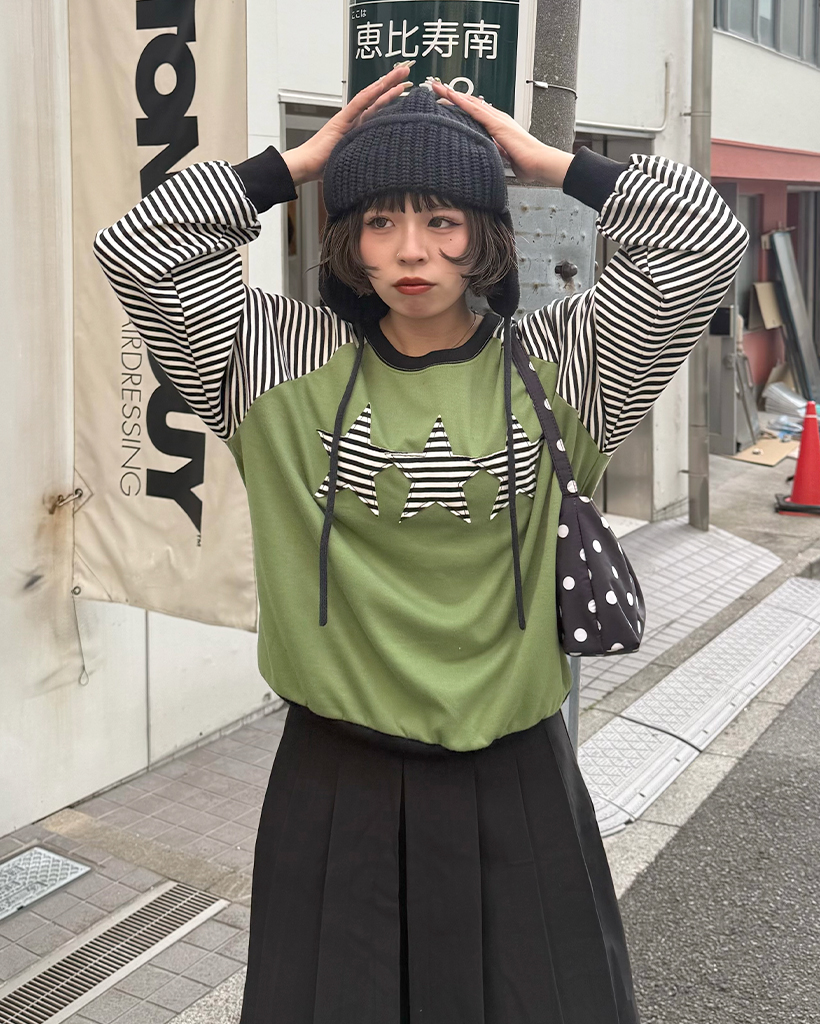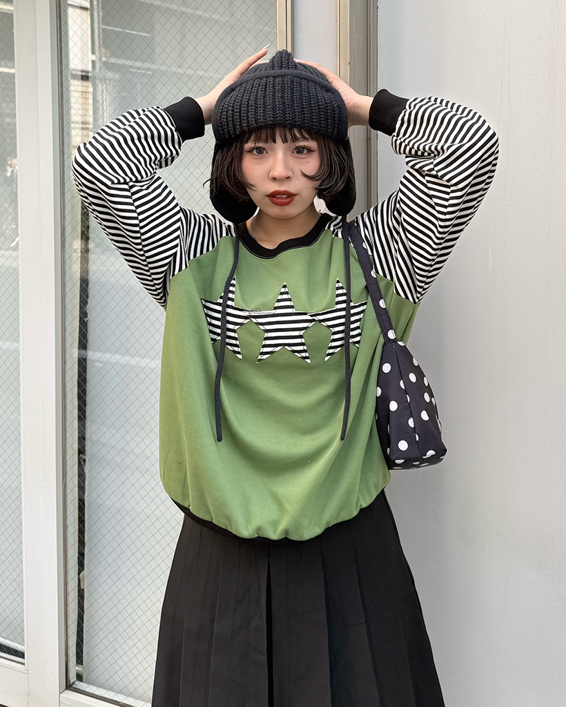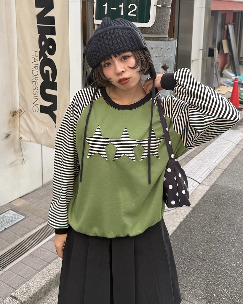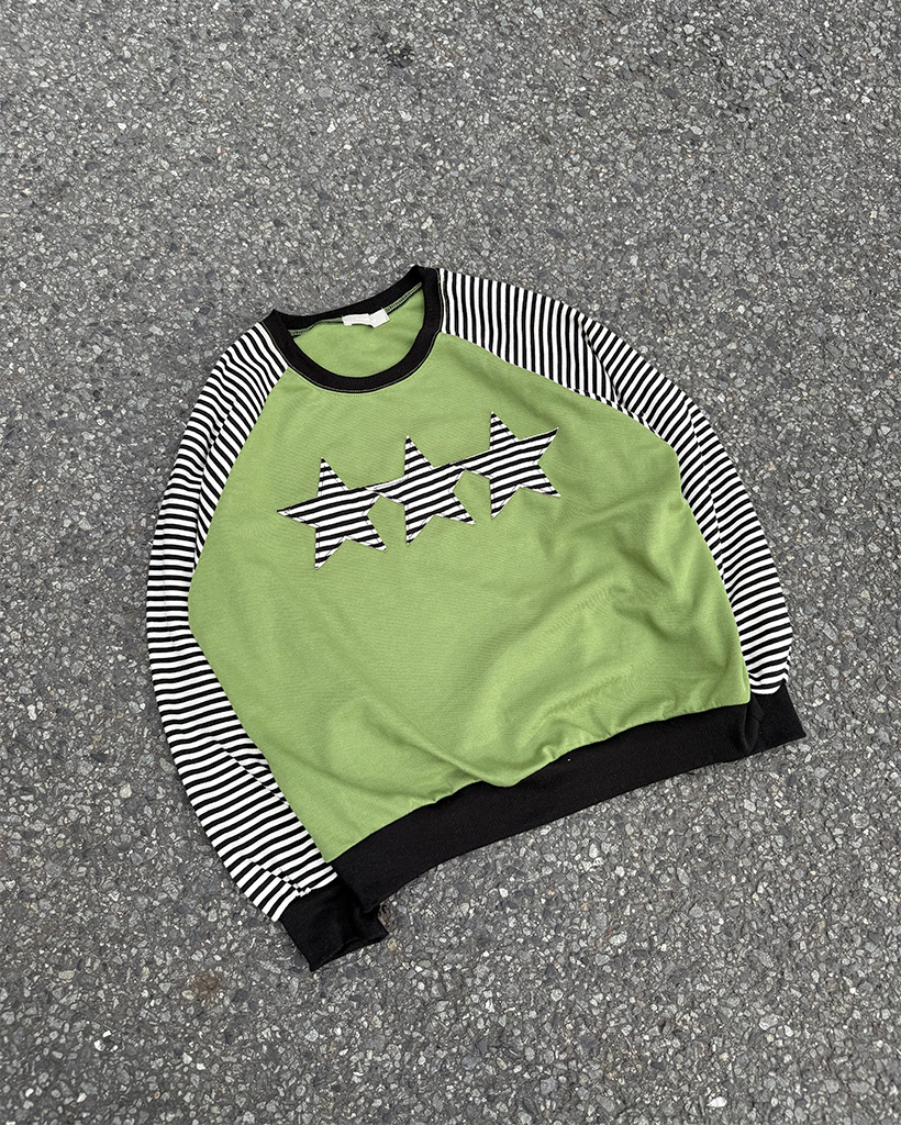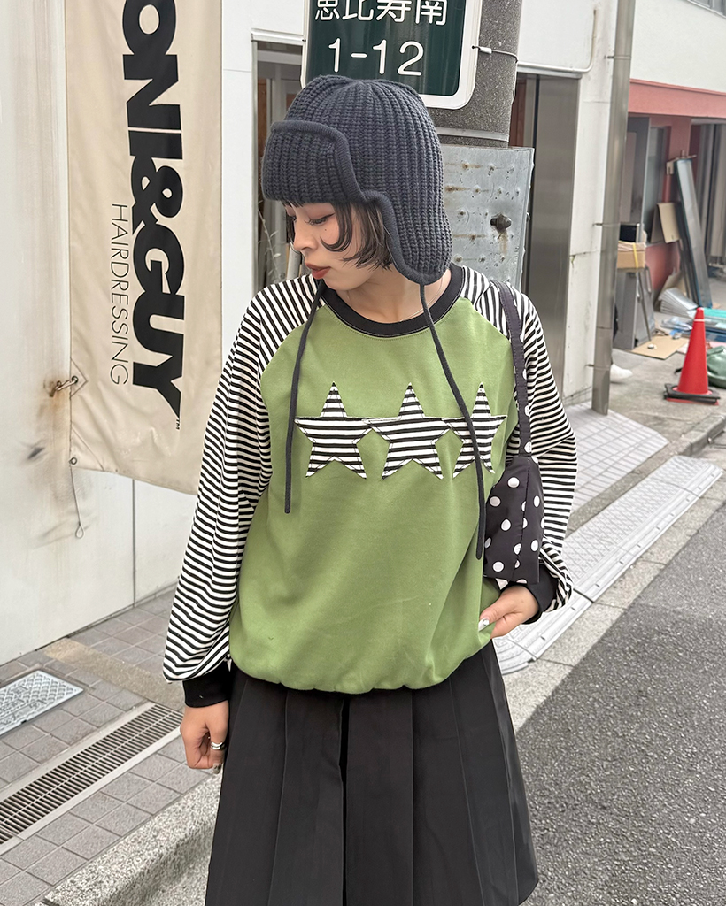(ユニセックス)ボーダースターパッチラグランスウェットシャツ