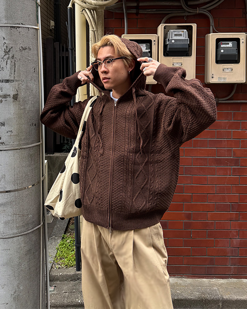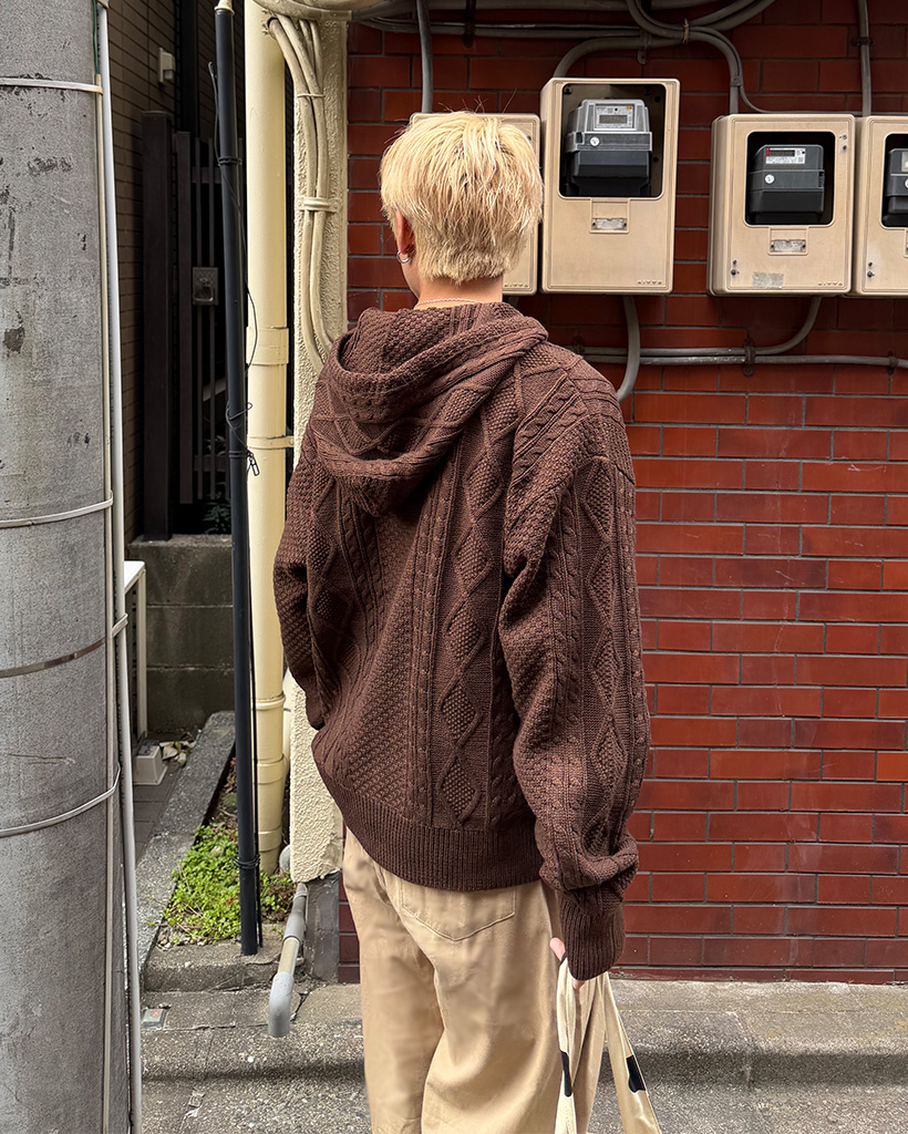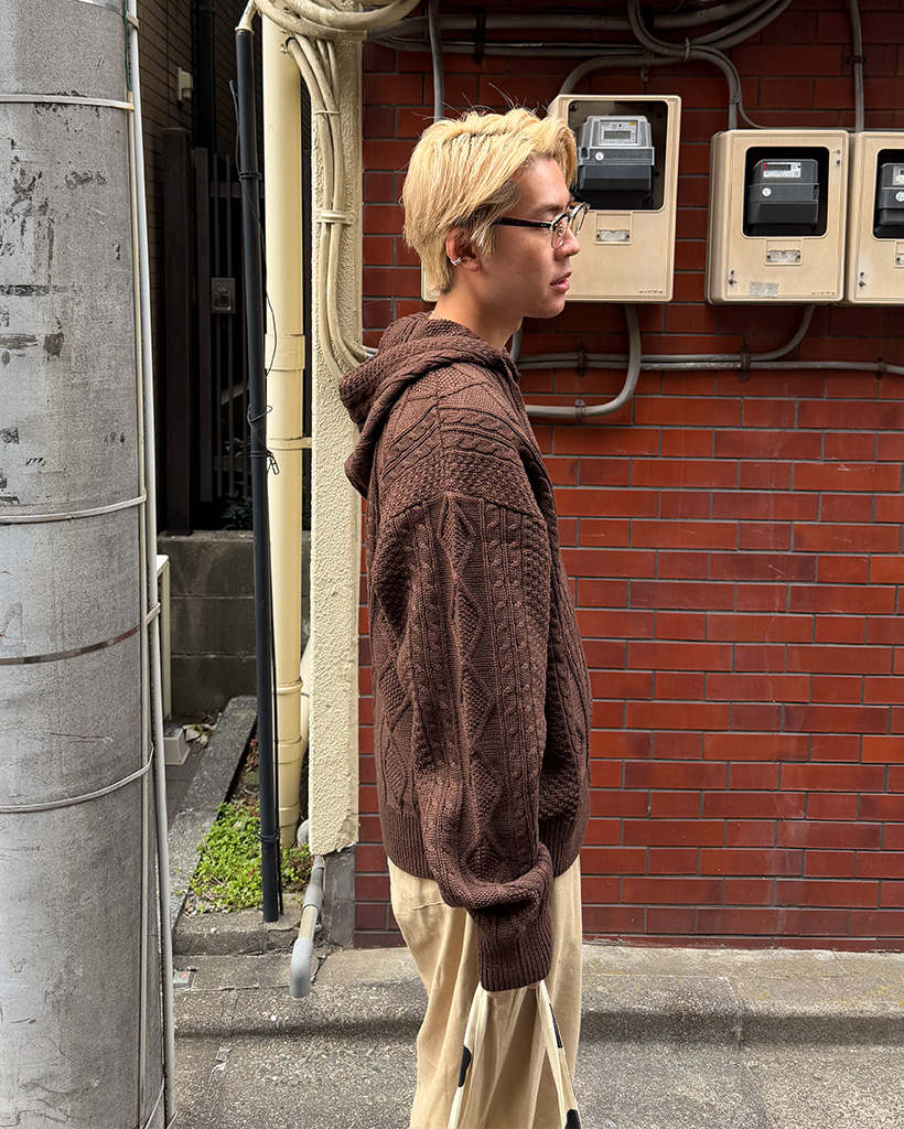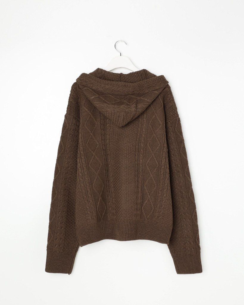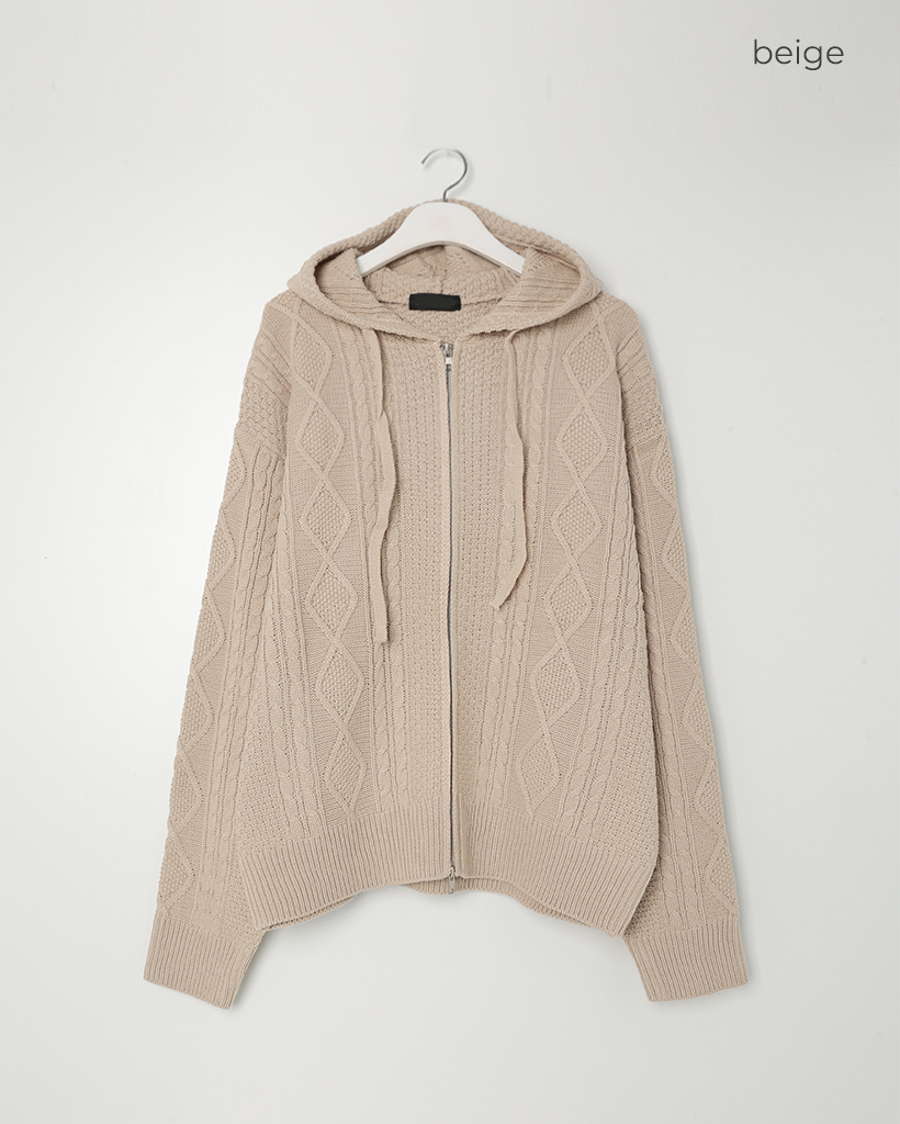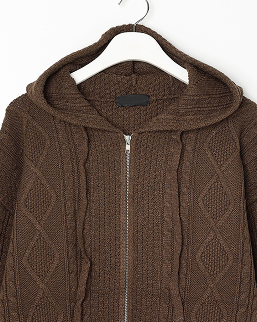 (ユニセックス)フードケーブルニットカーディガン