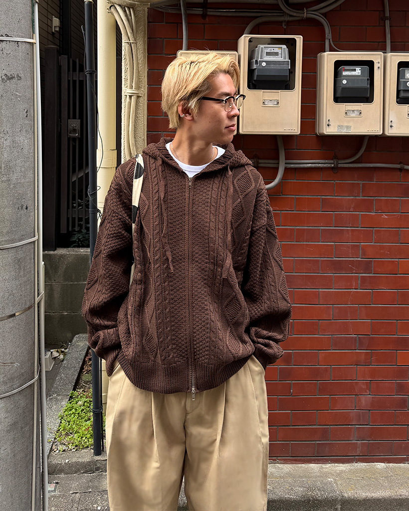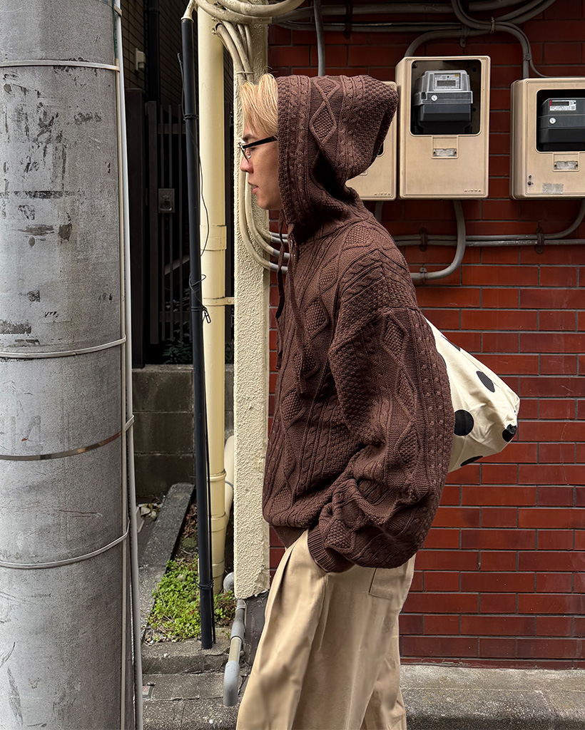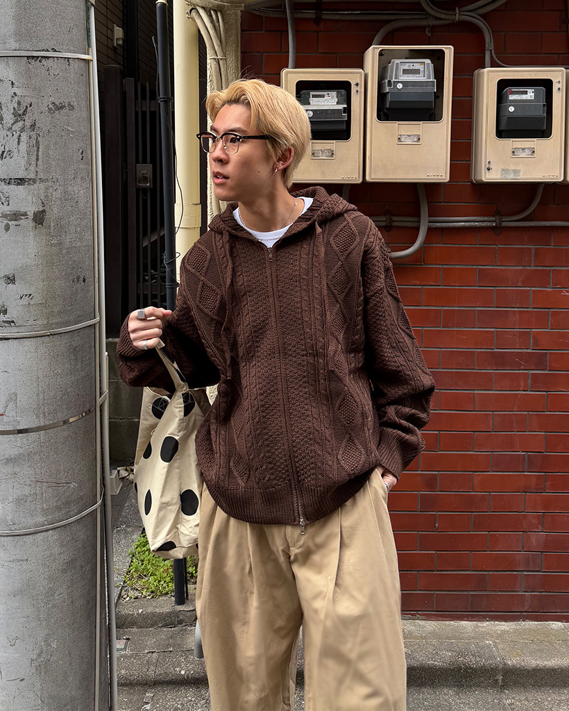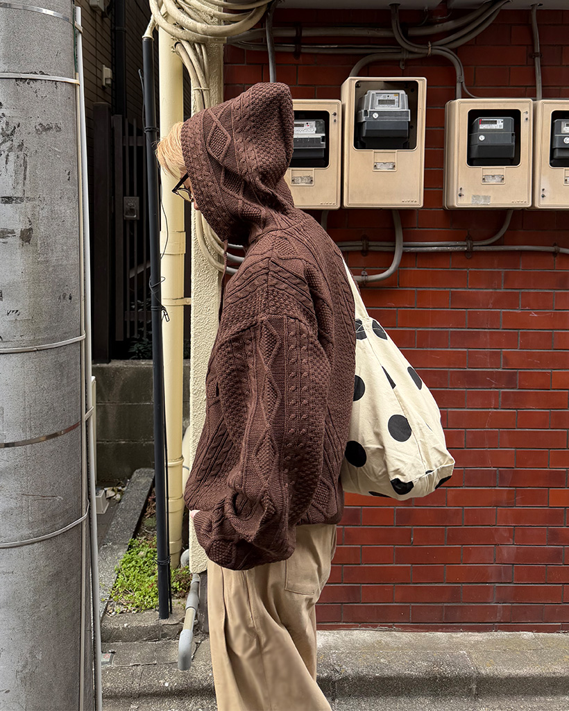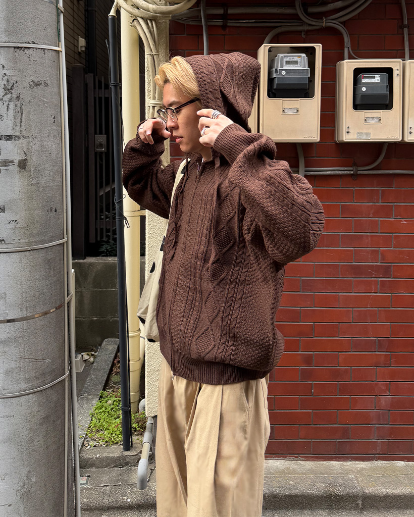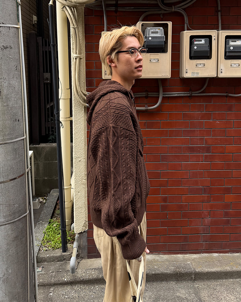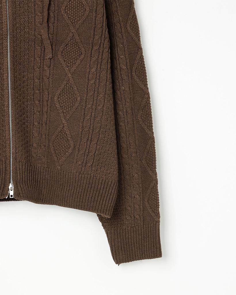 (ユニセックス)フードケーブルニットカーディガン