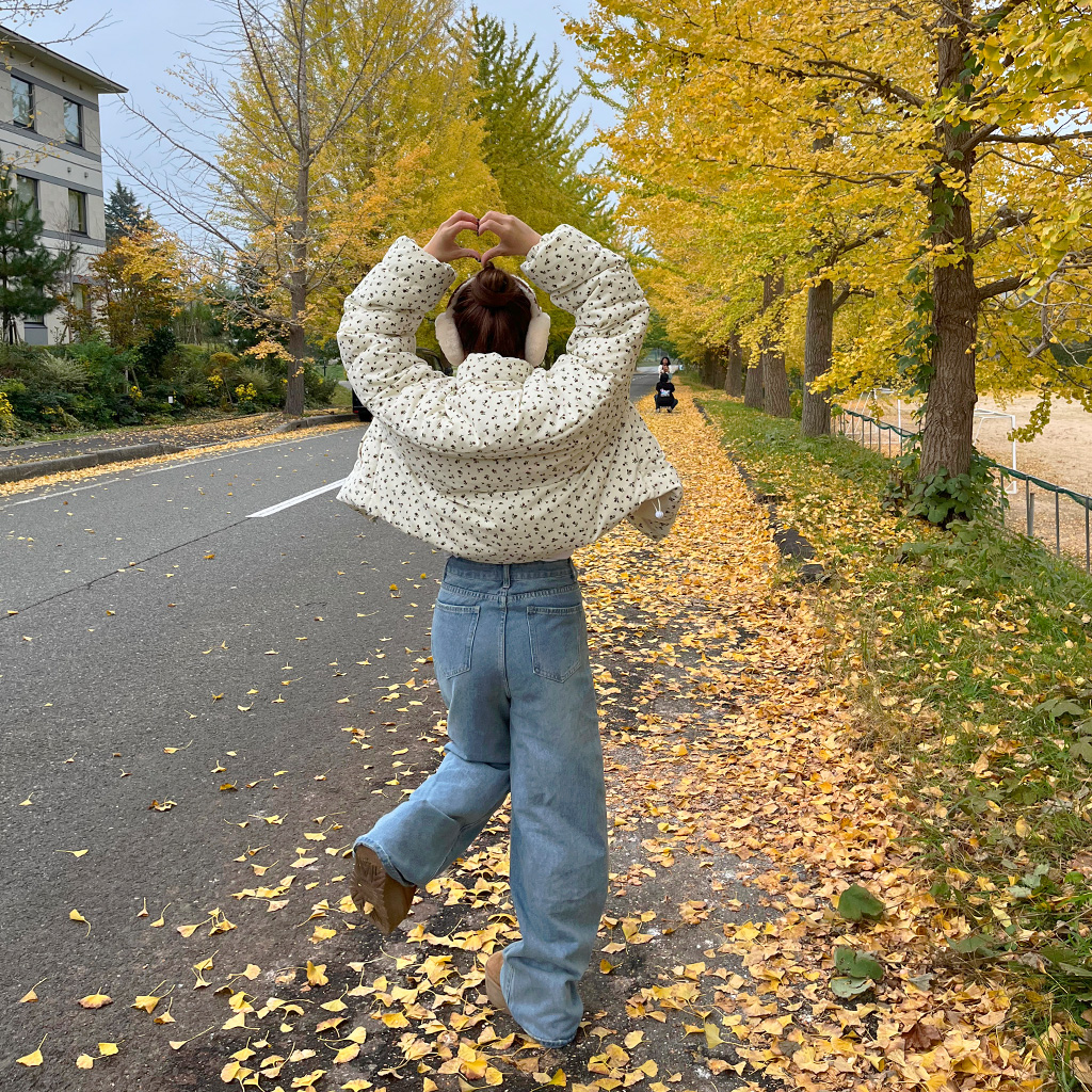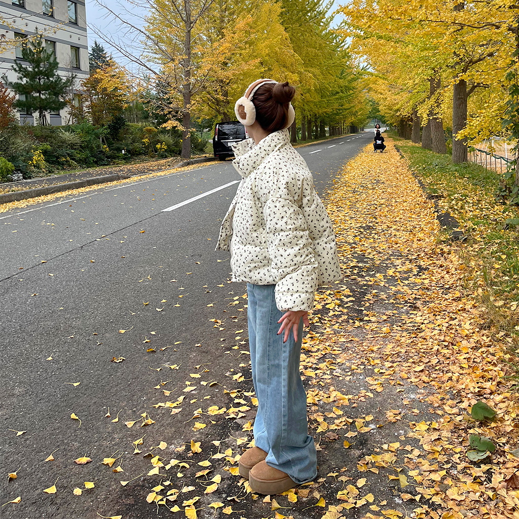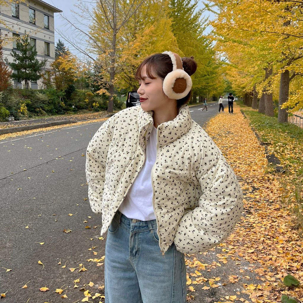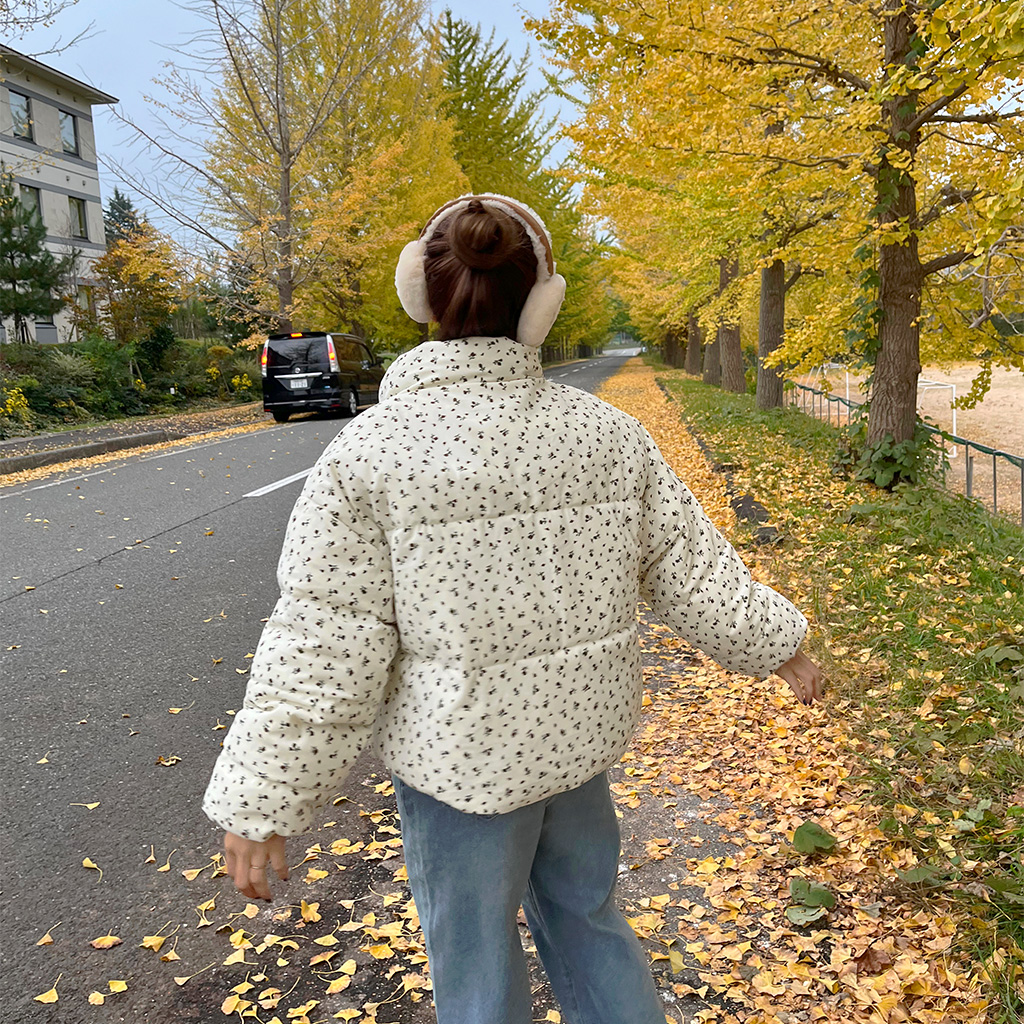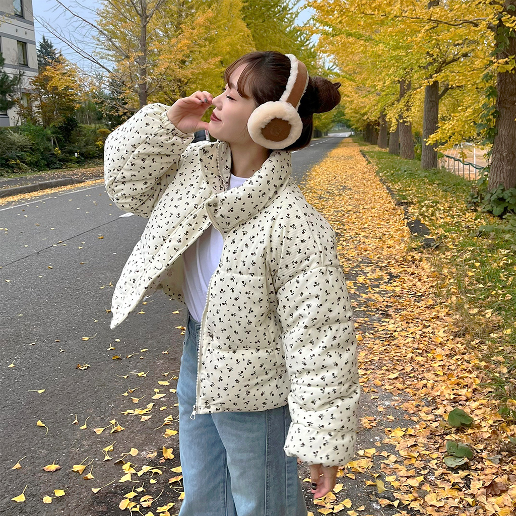 フラワーコーデユロイパデッドジャケット