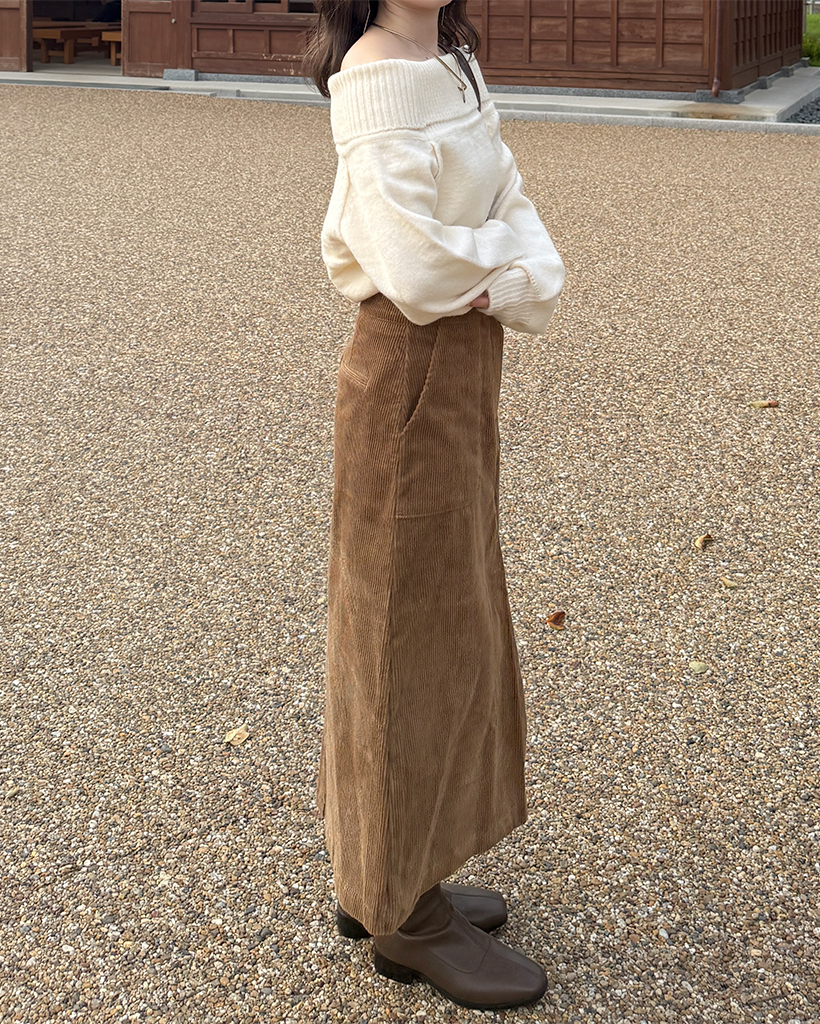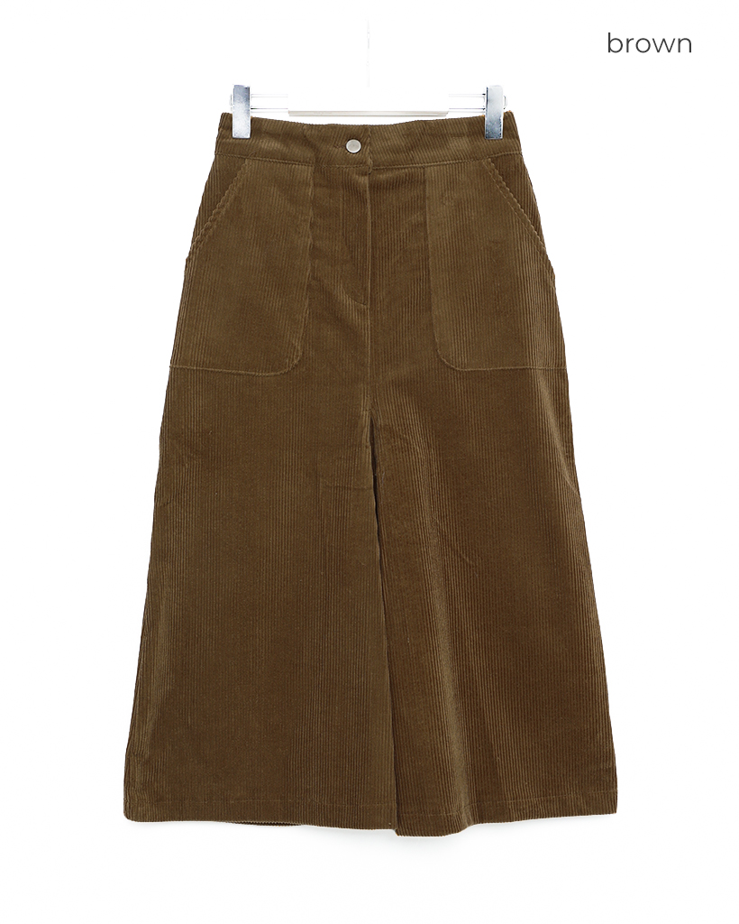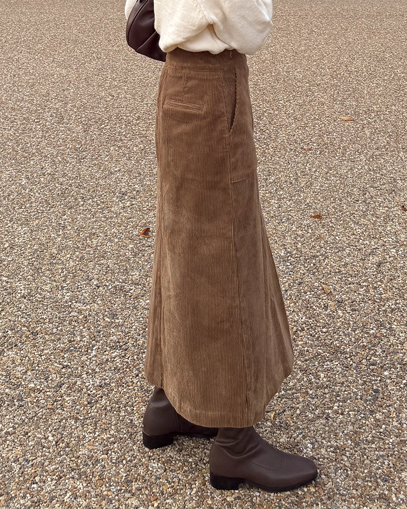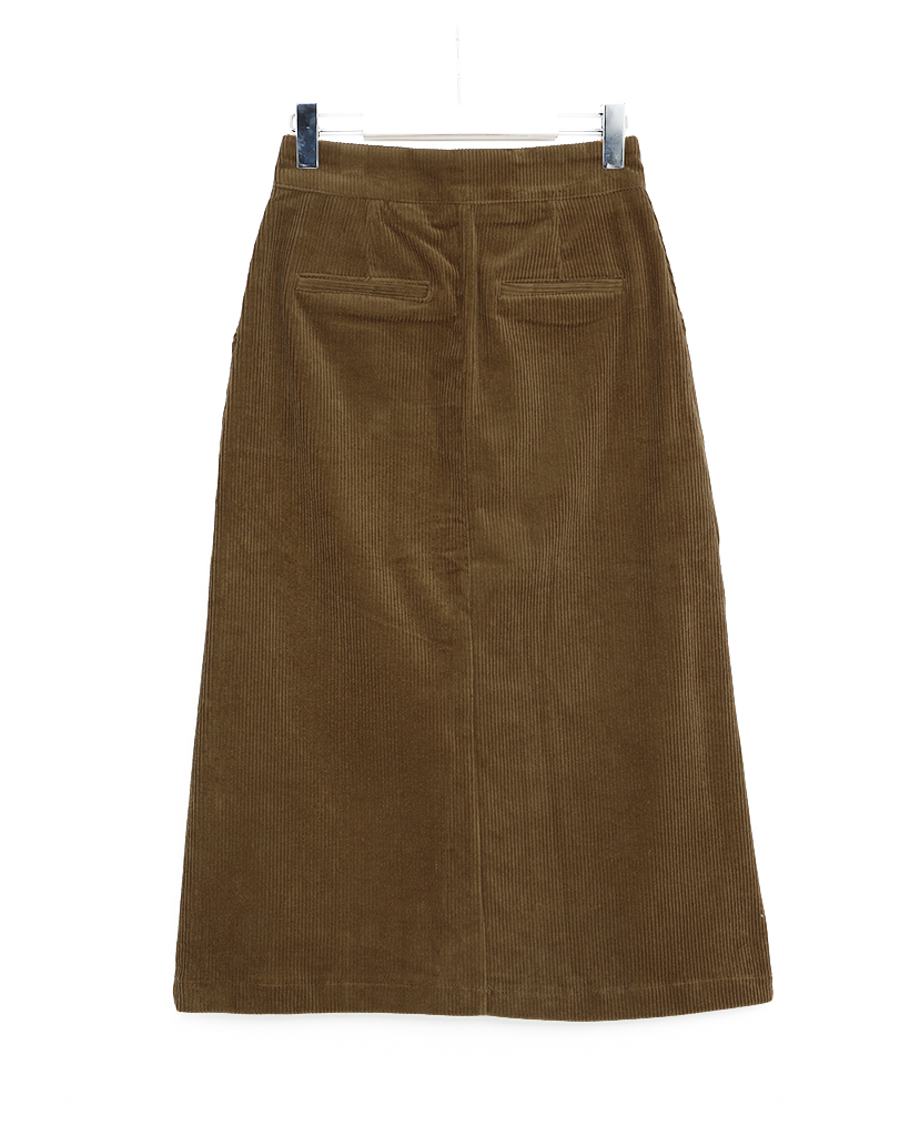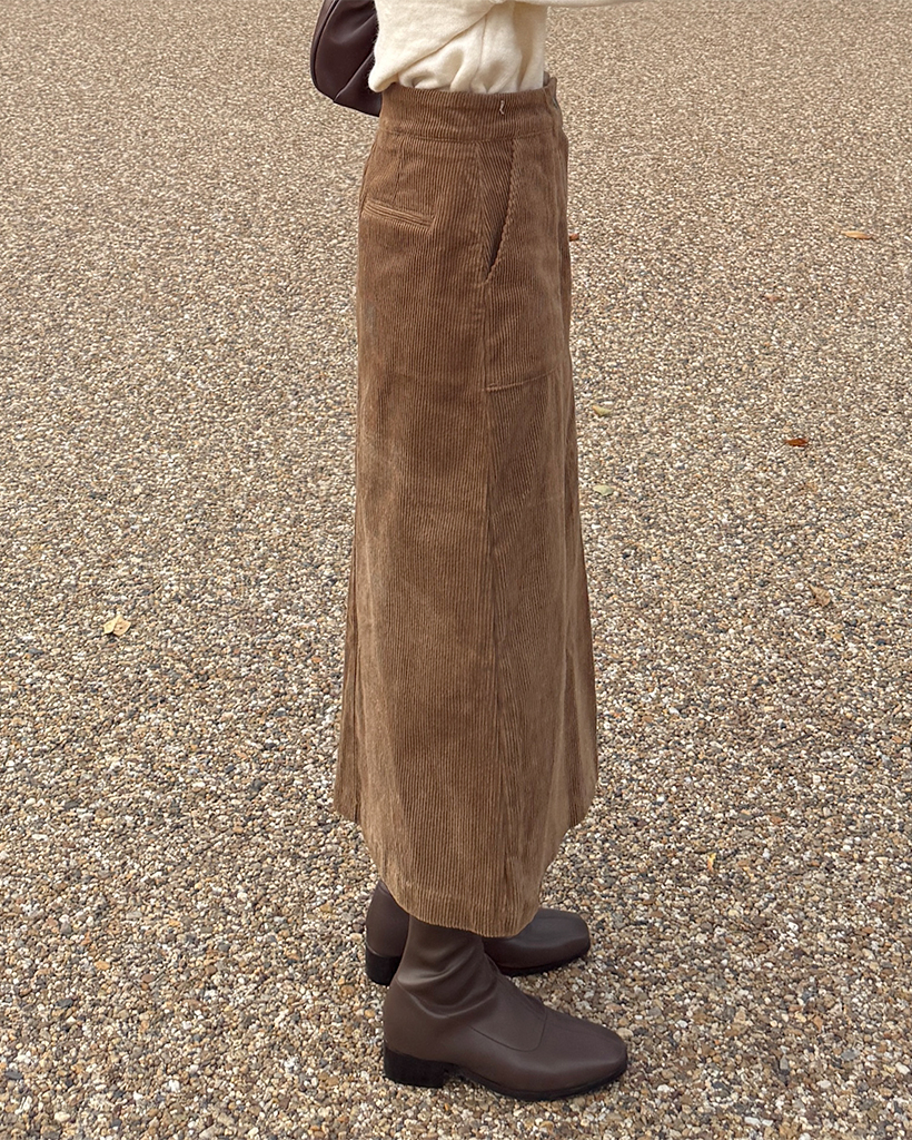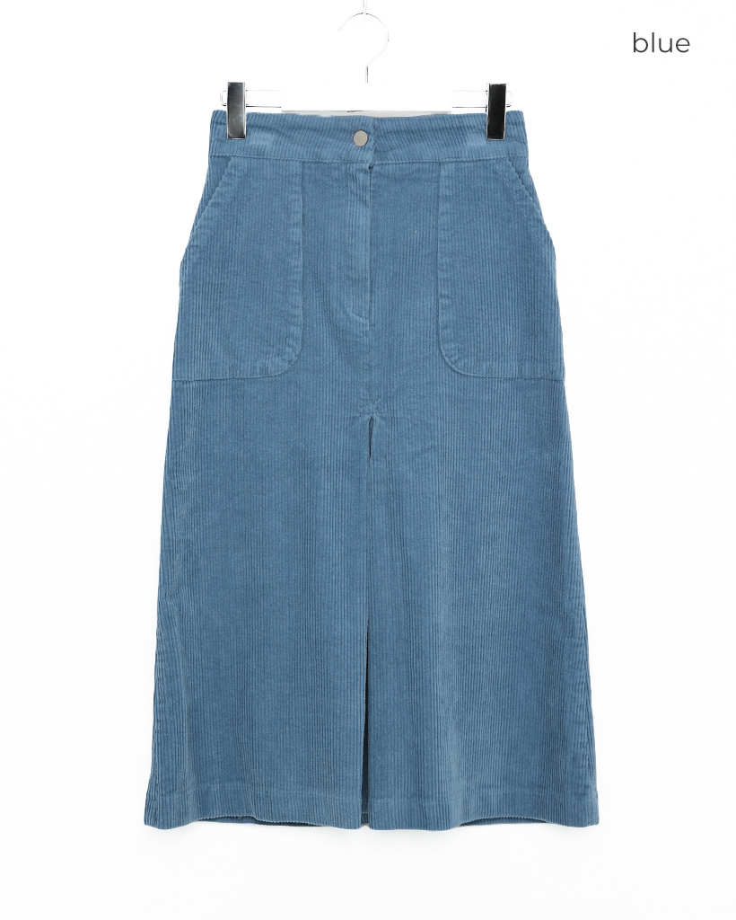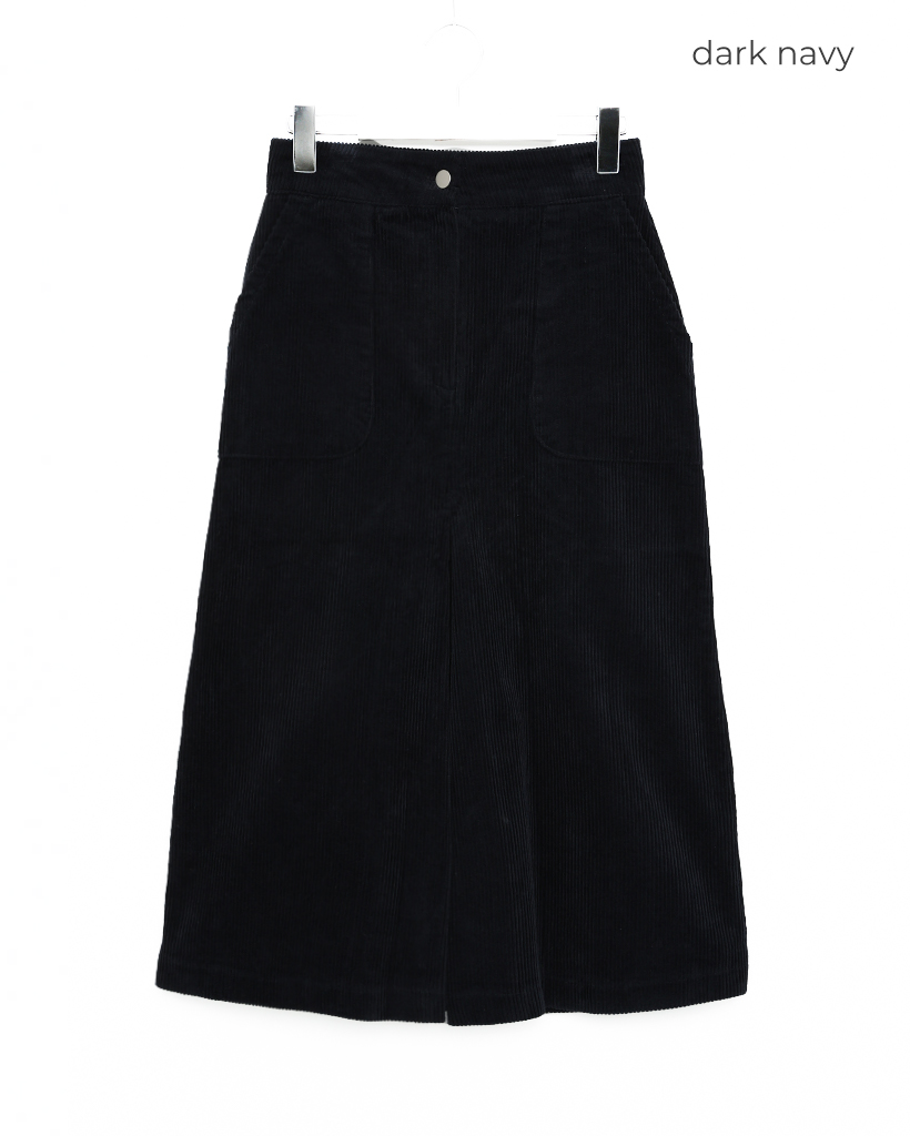 スクエアポケット付きフロントスリットコーデュロイロングスカート