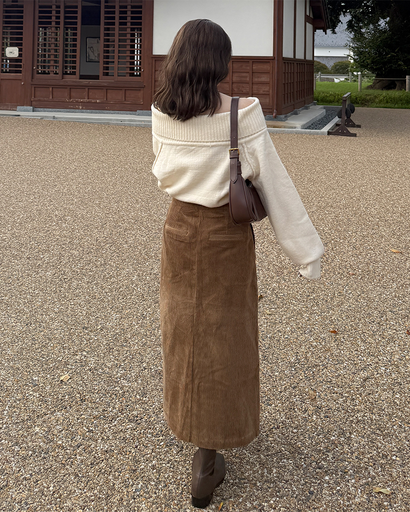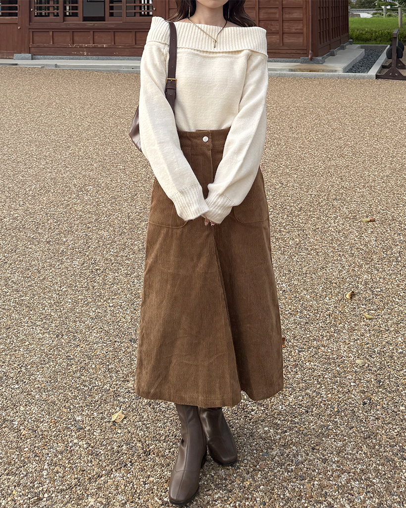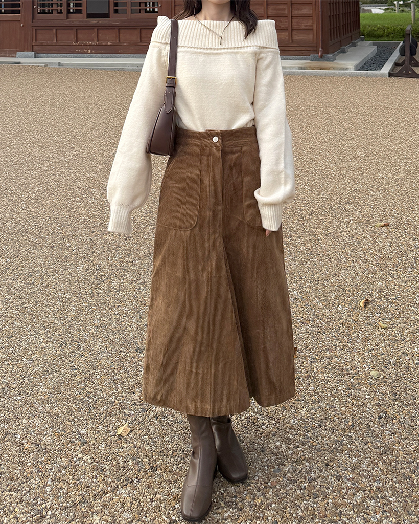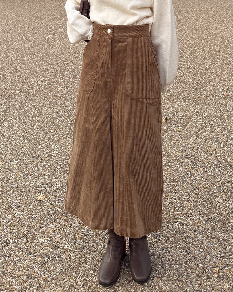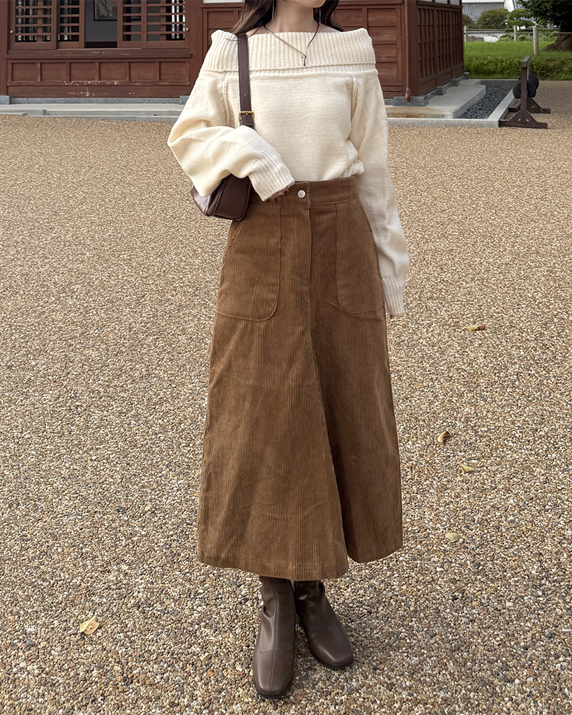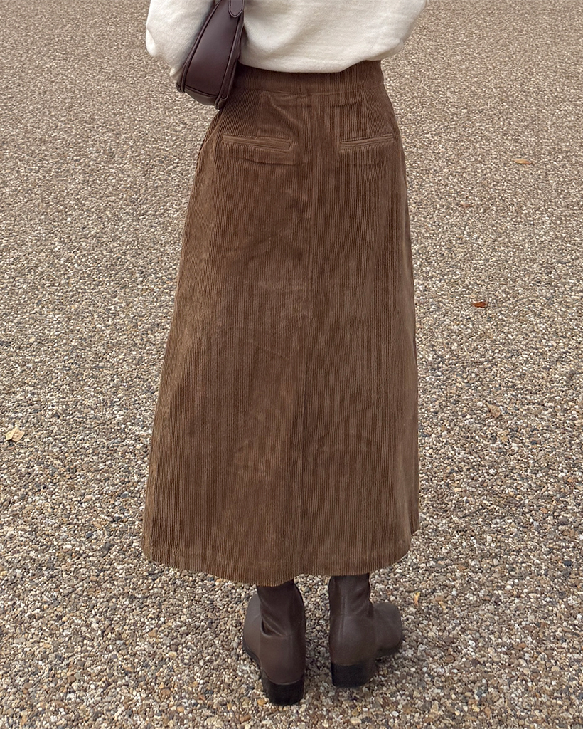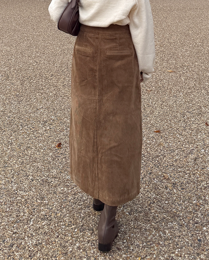 スクエアポケット付きフロントスリットコーデュロイロングスカート