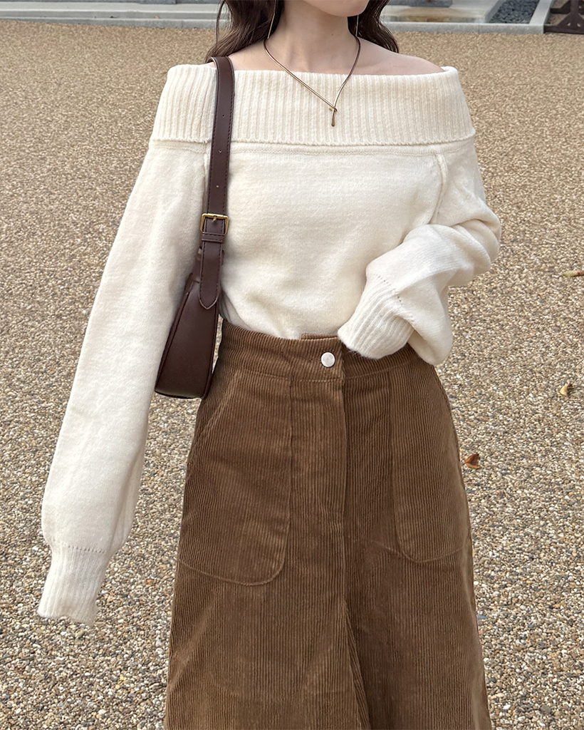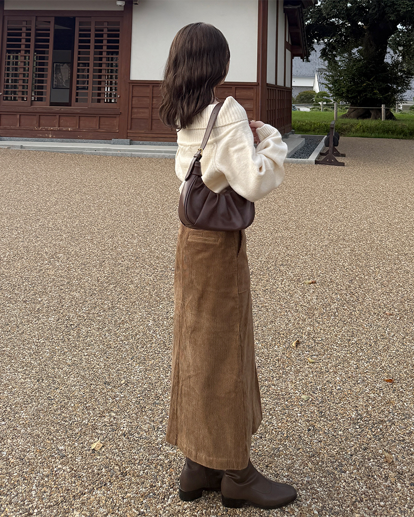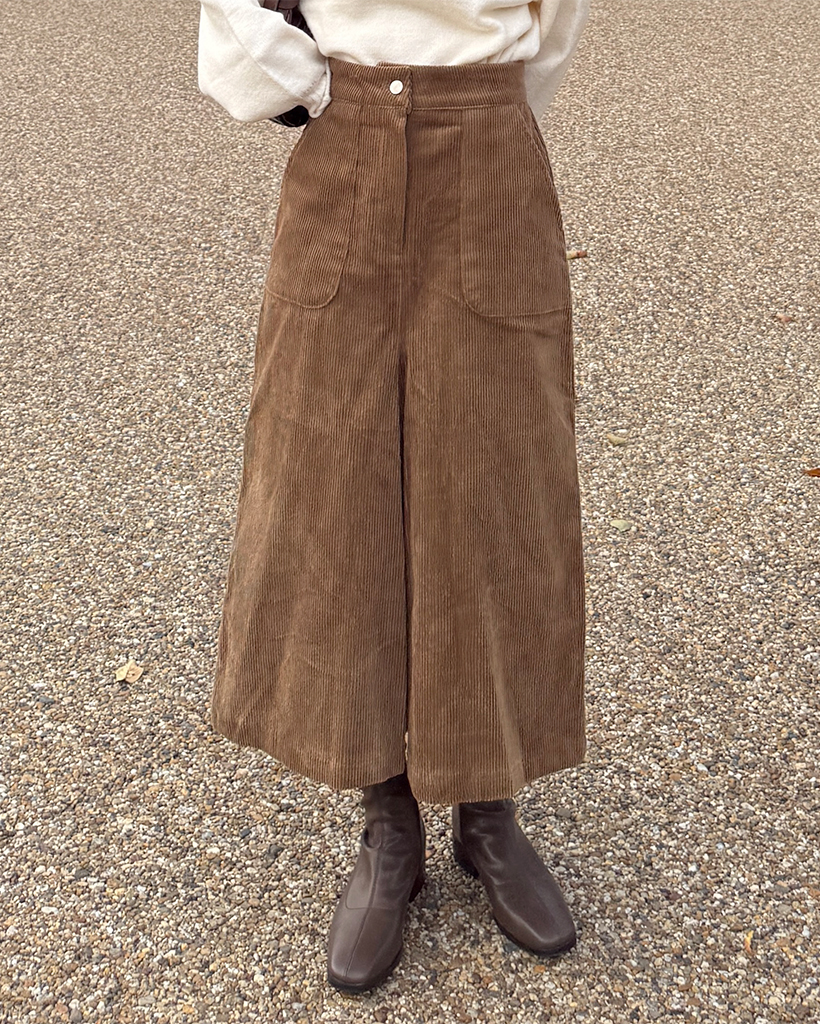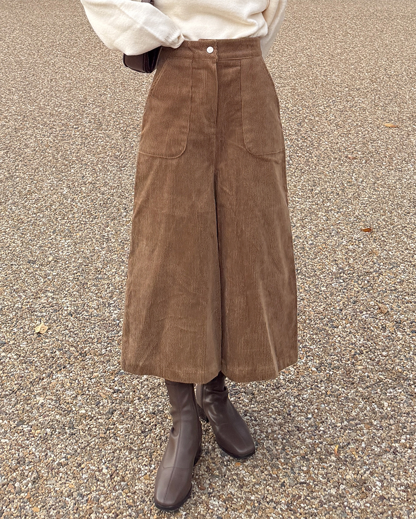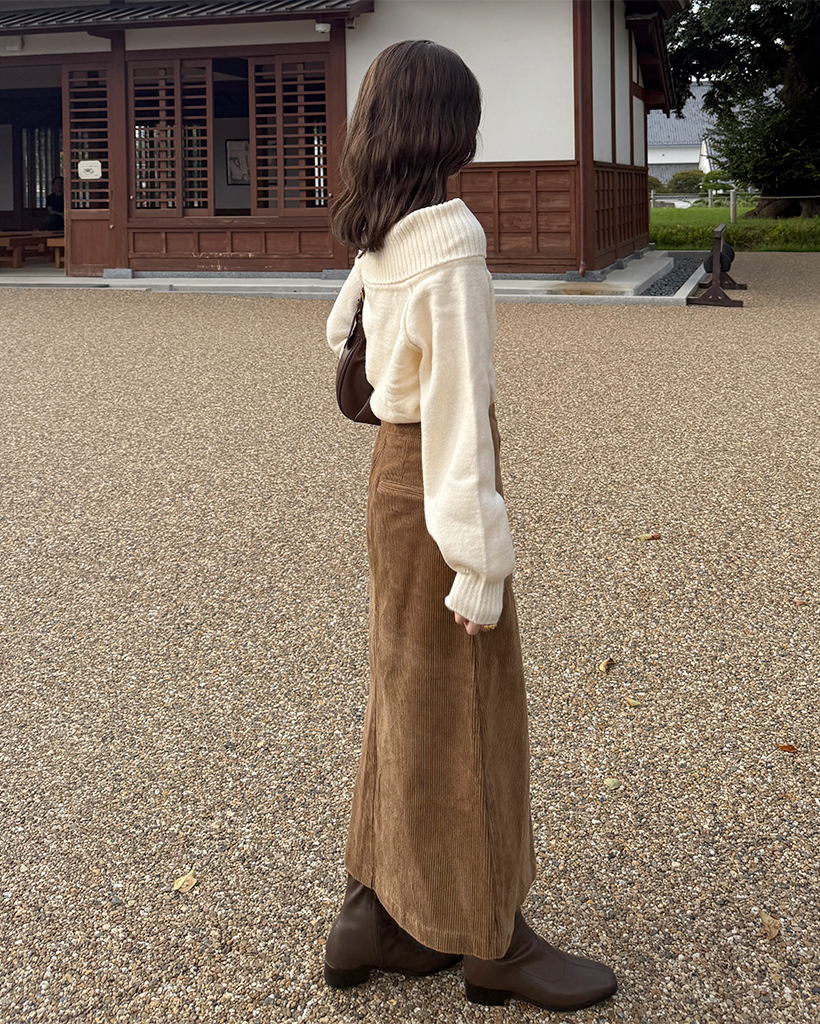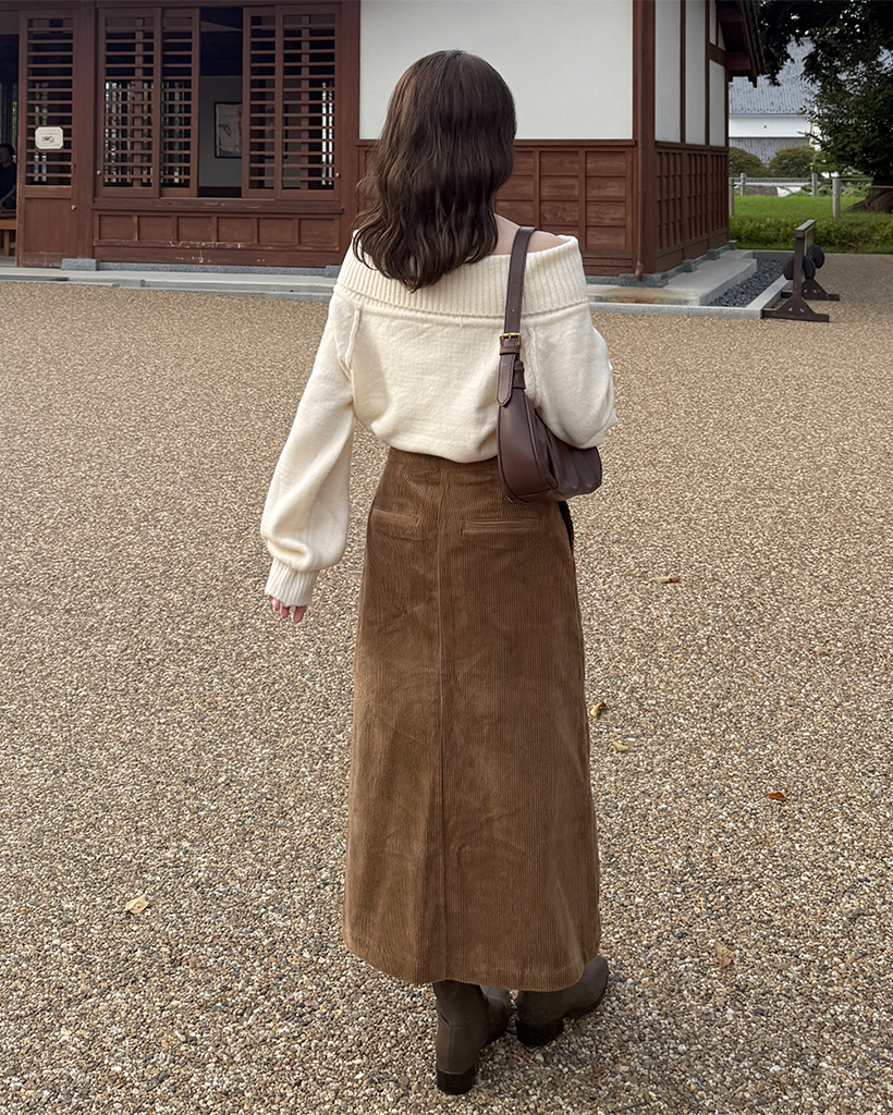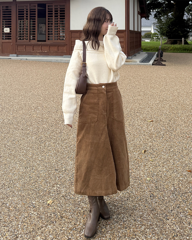 スクエアポケット付きフロントスリットコーデュロイロングスカート