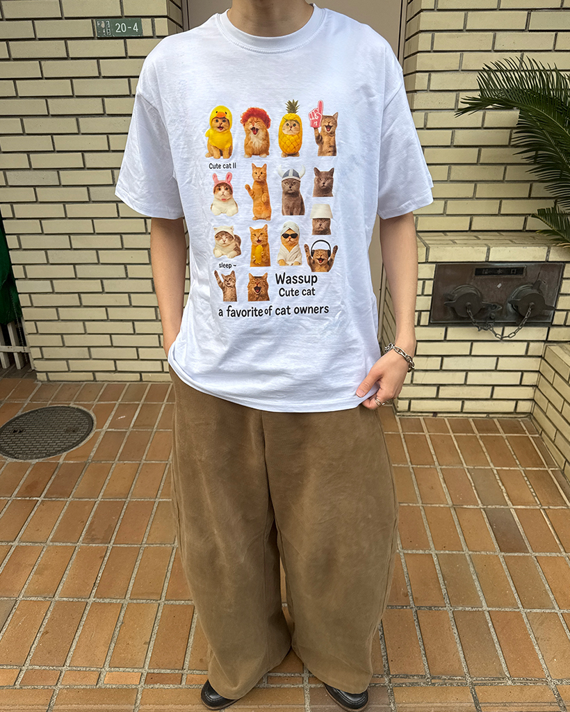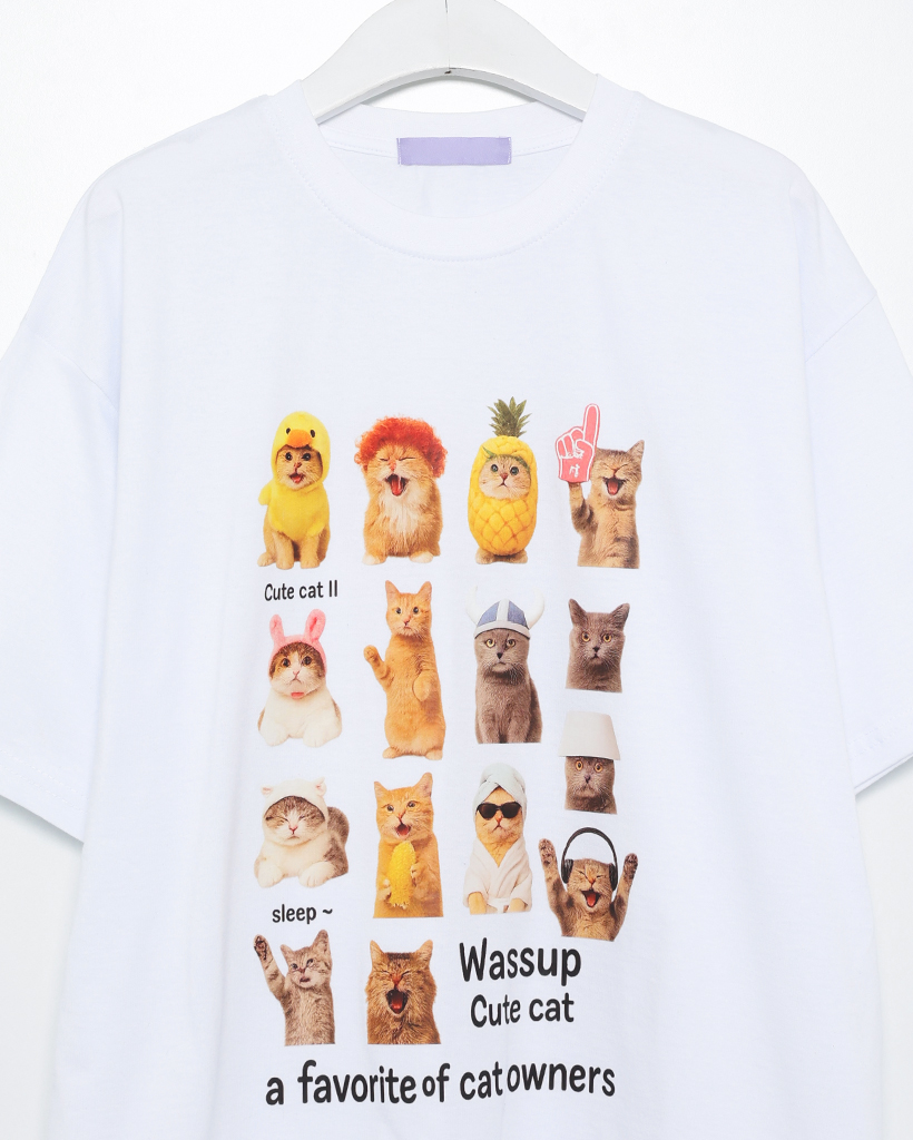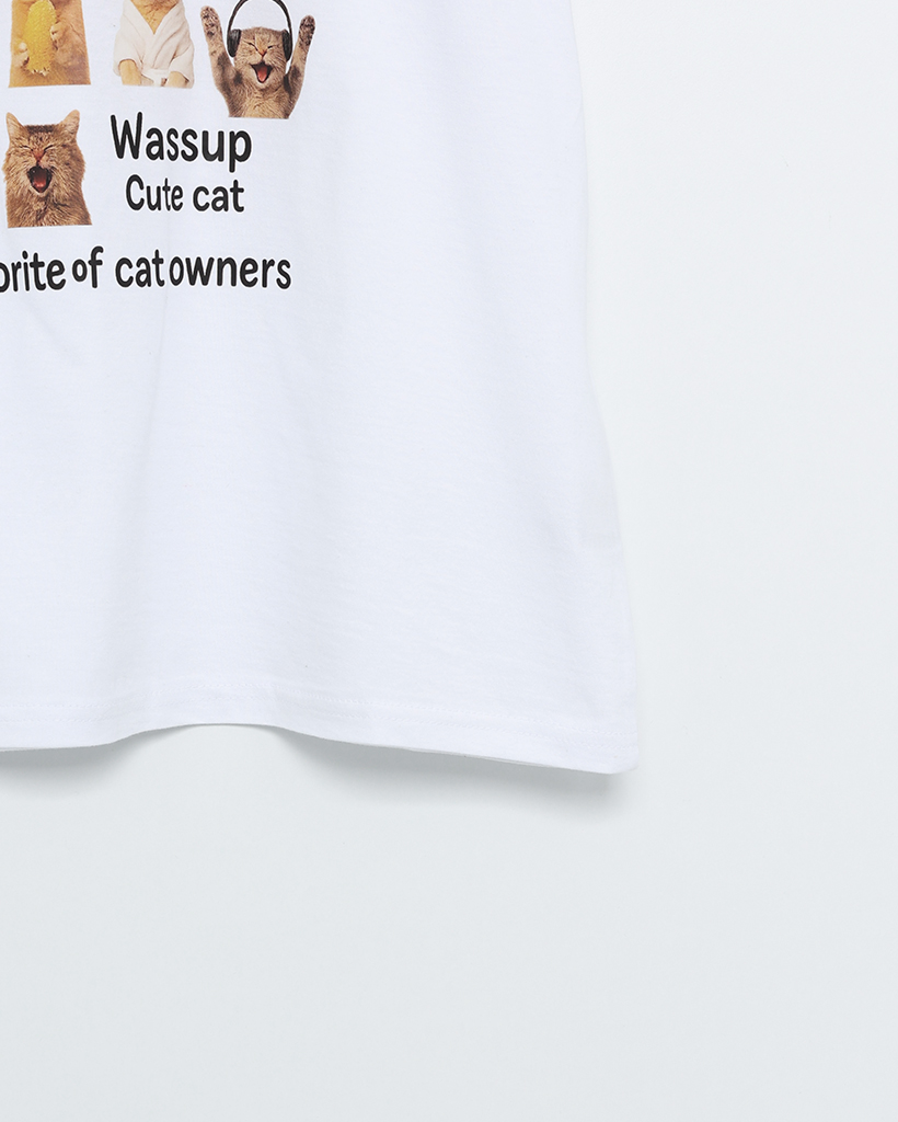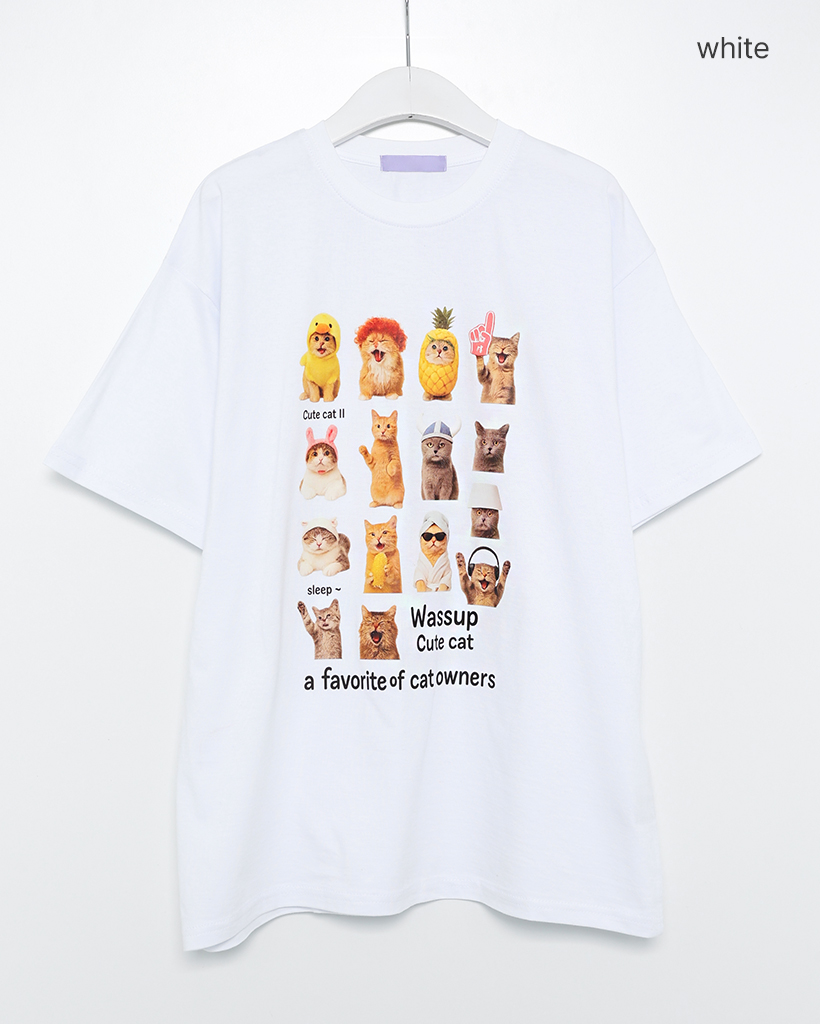 (ユニセックス)ユニークキャットプリントハーフTシャツ