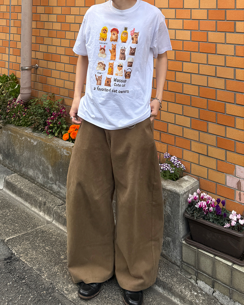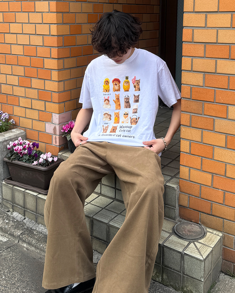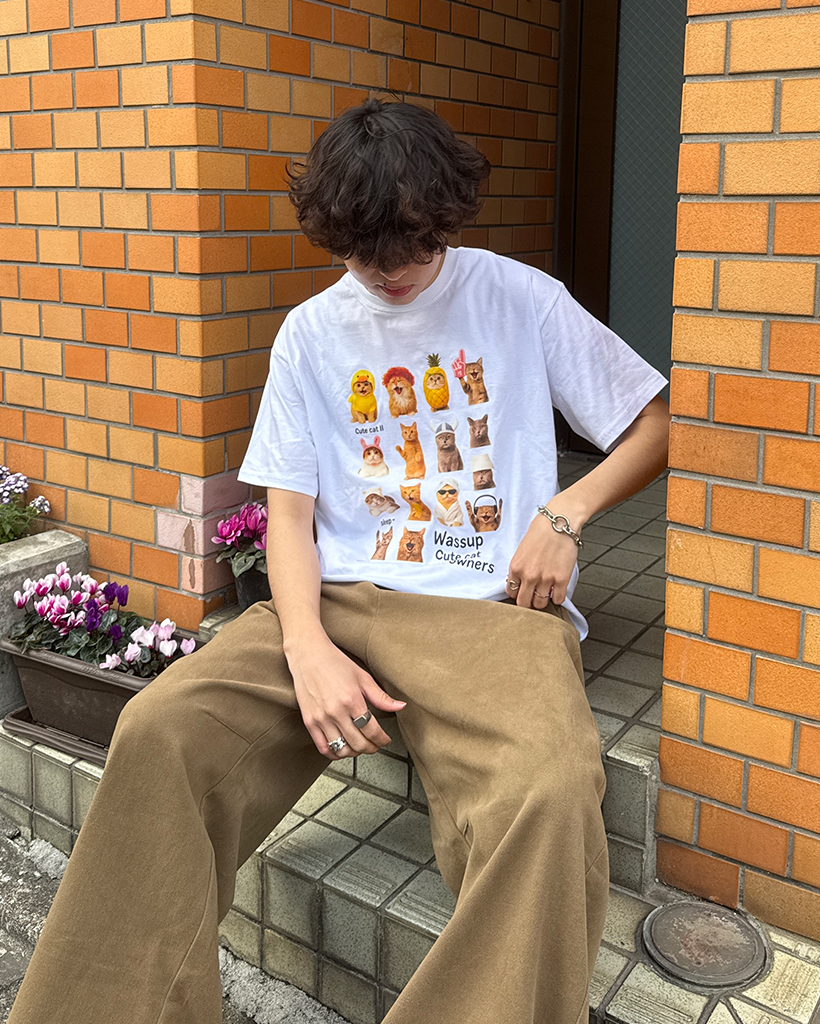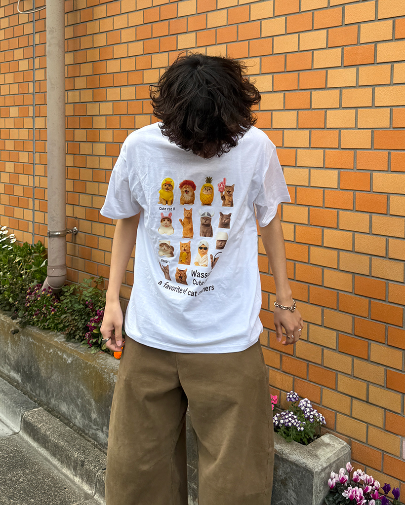 (ユニセックス)ユニークキャットプリントハーフTシャツ