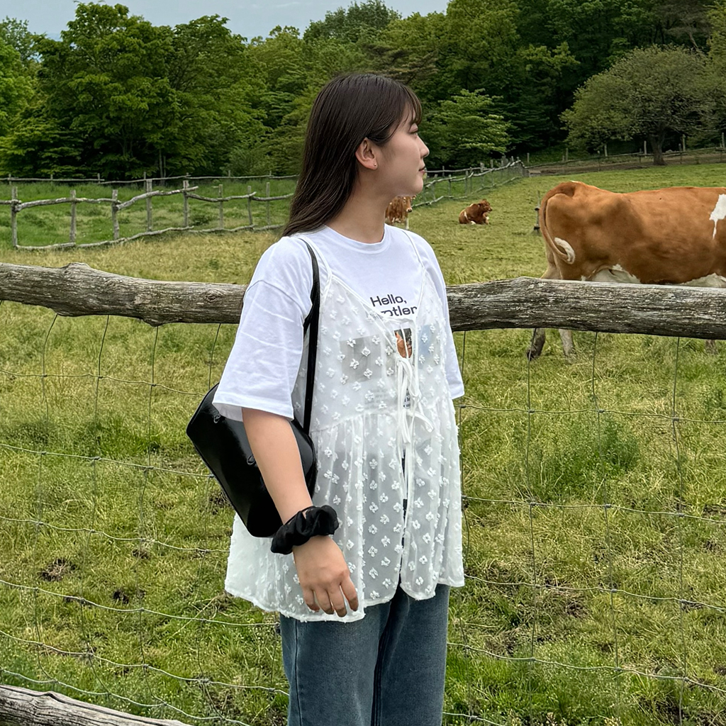 レイヤードシースルーリボンノースリーブ