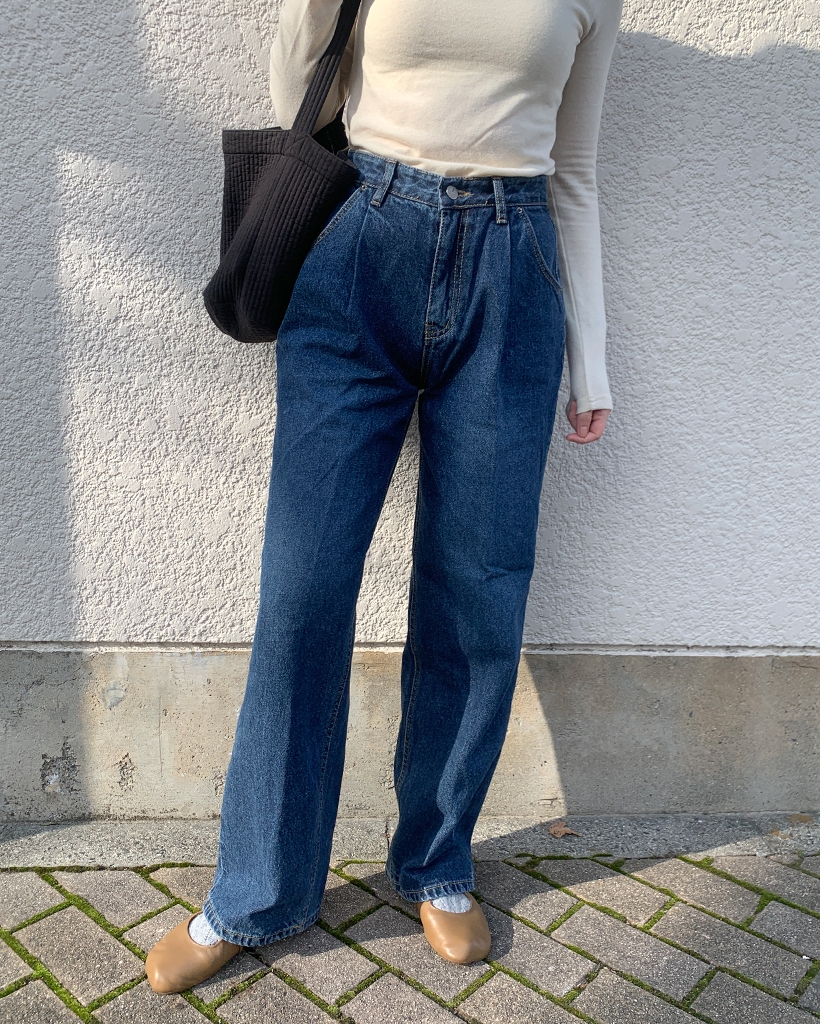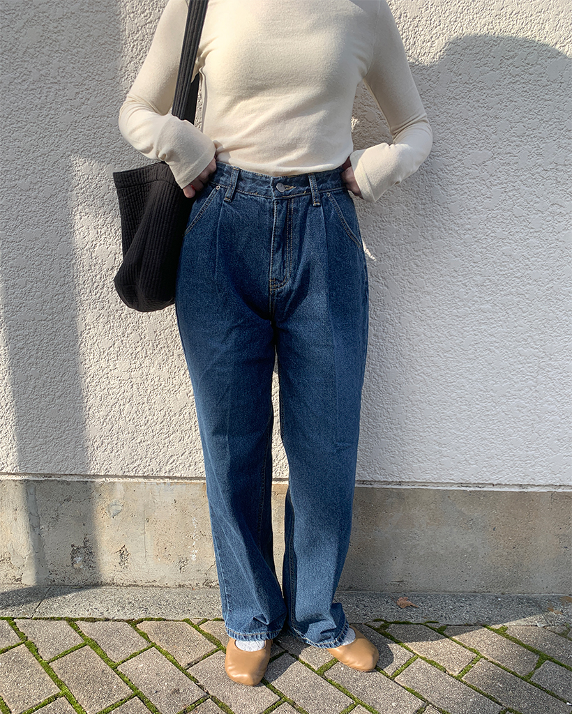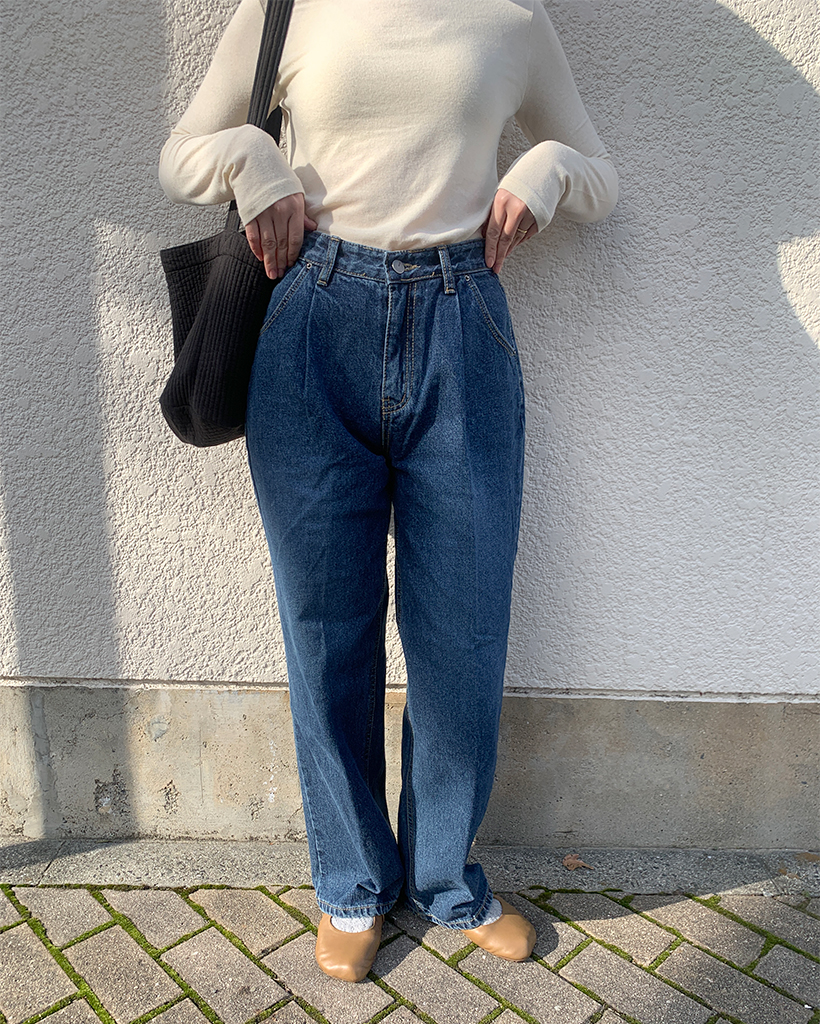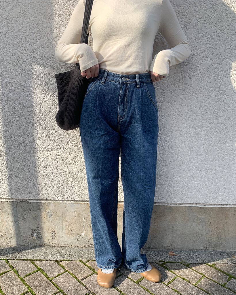 フロントピンタックワイドデニム裏起毛パンツ