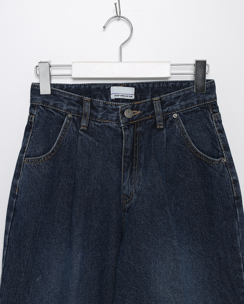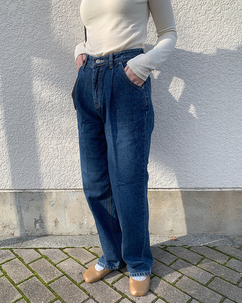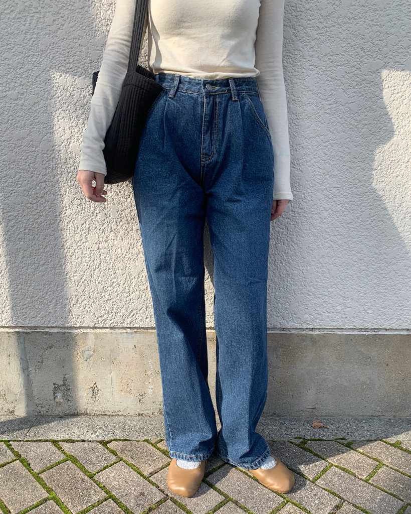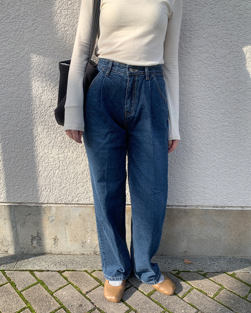 フロントピンタックワイドデニム裏起毛パンツ