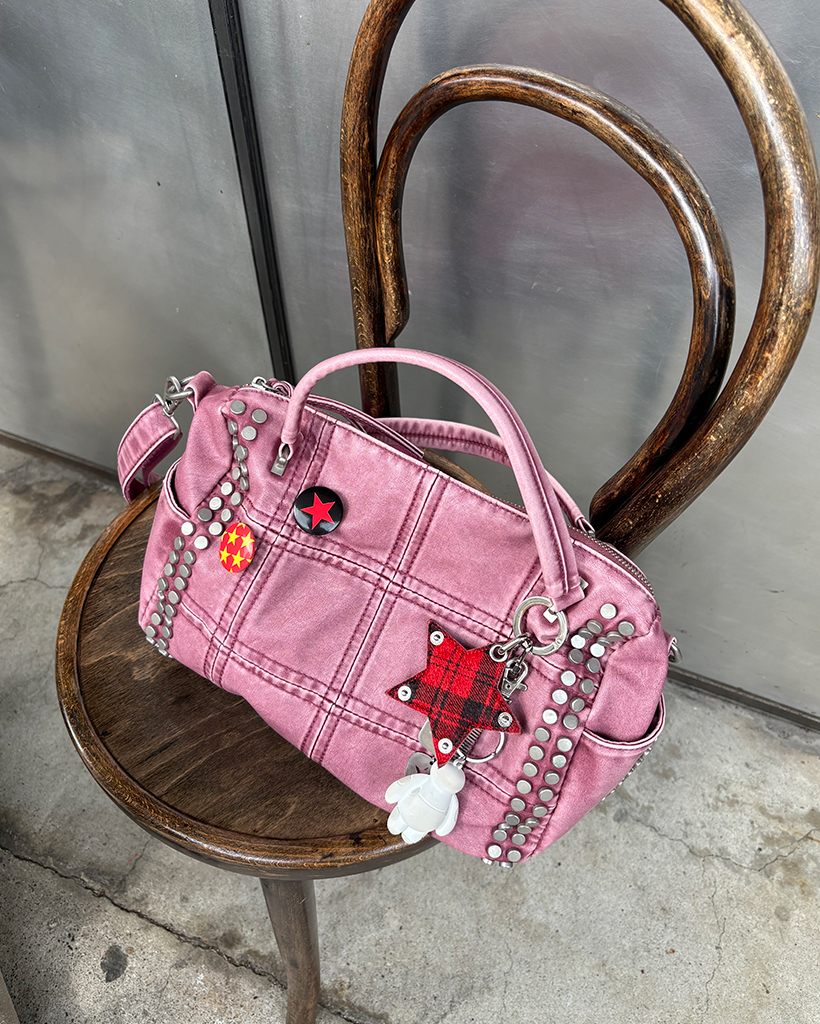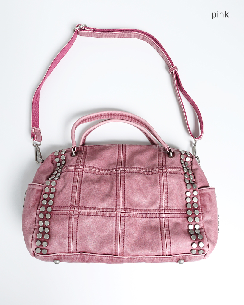 ブロックステッチダブルスタッズ2wayボストンバッグ