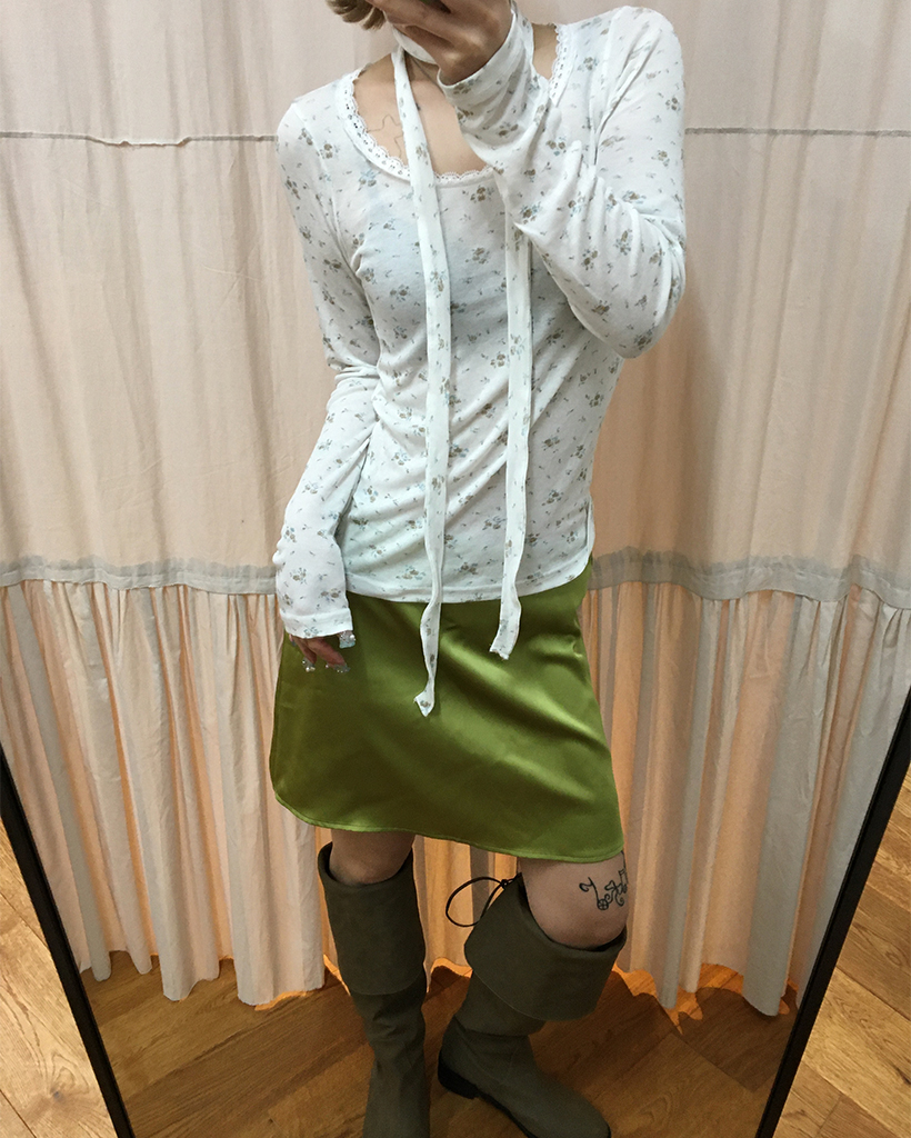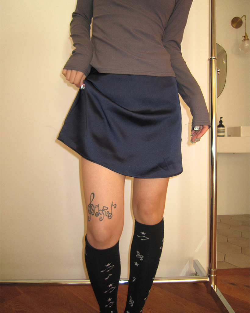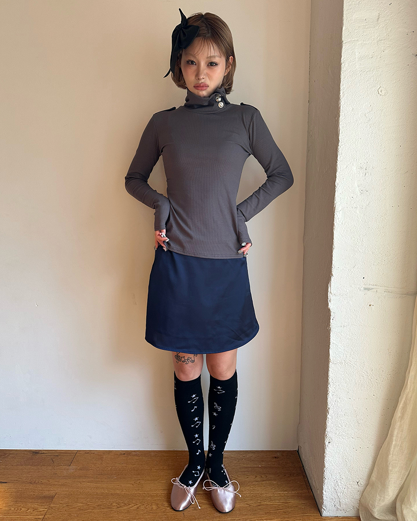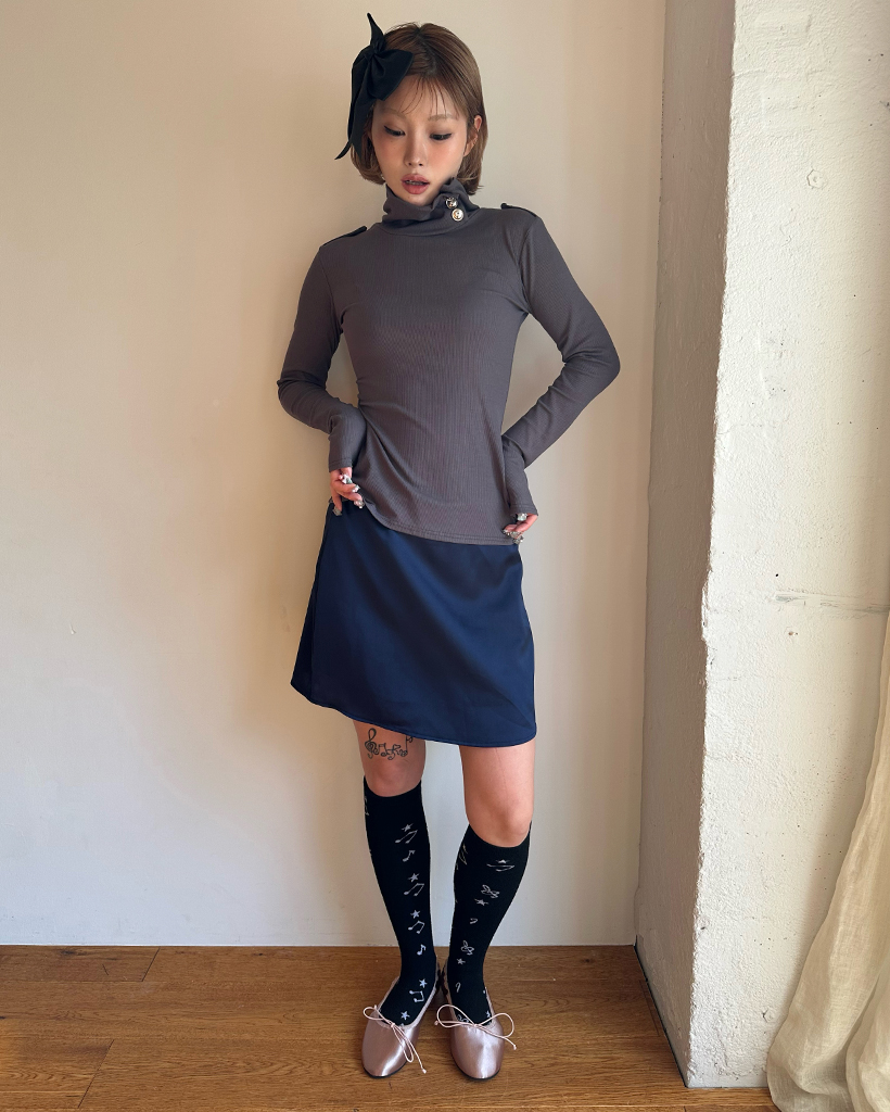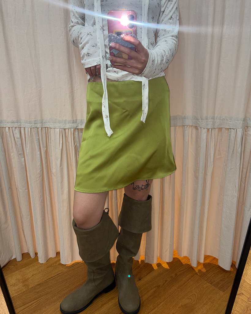 シンプルサテントラペーズミニスカート