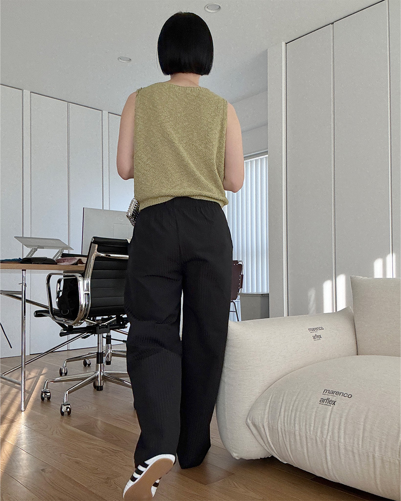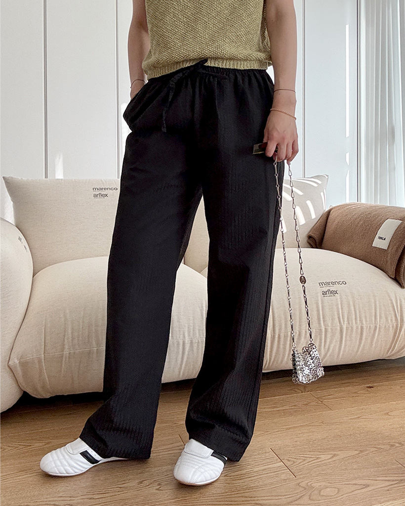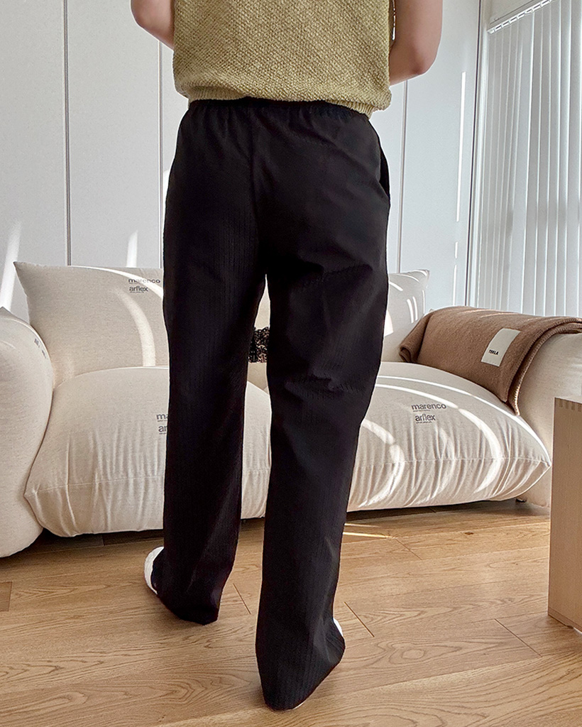シアサッカーストライプバンディングパンツ