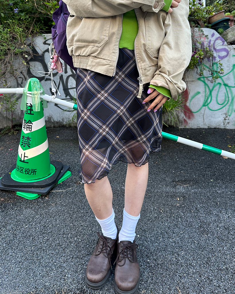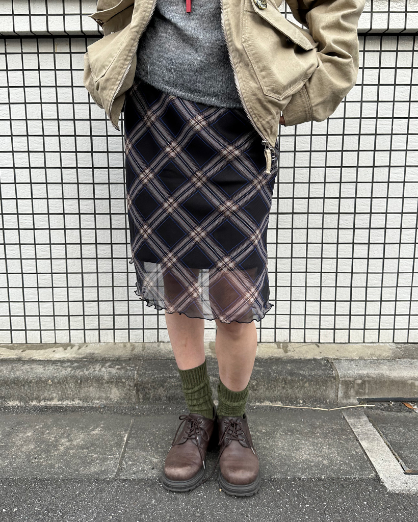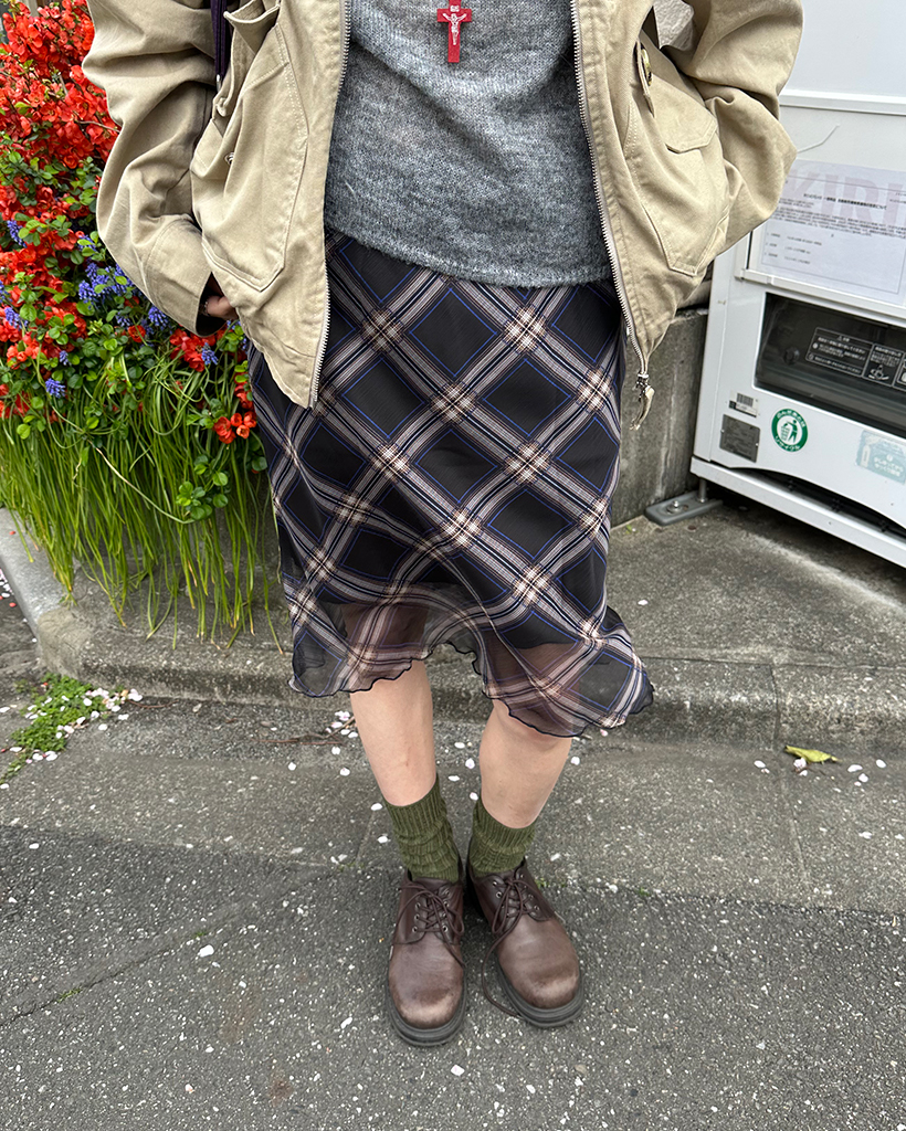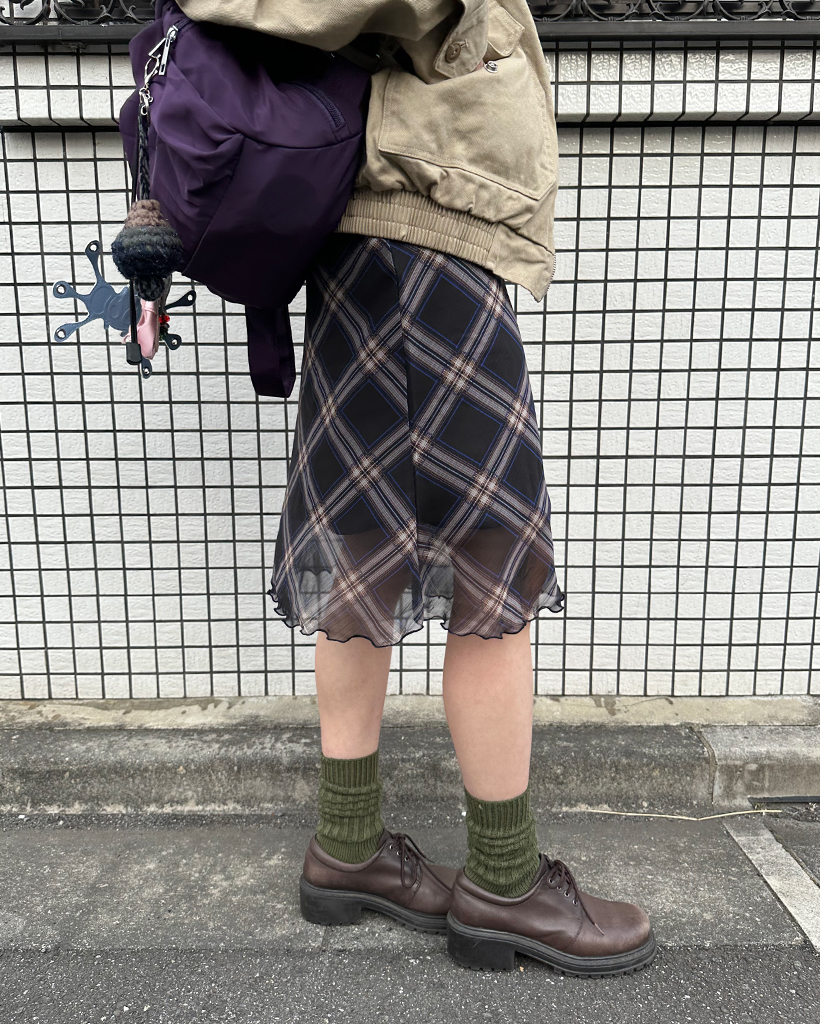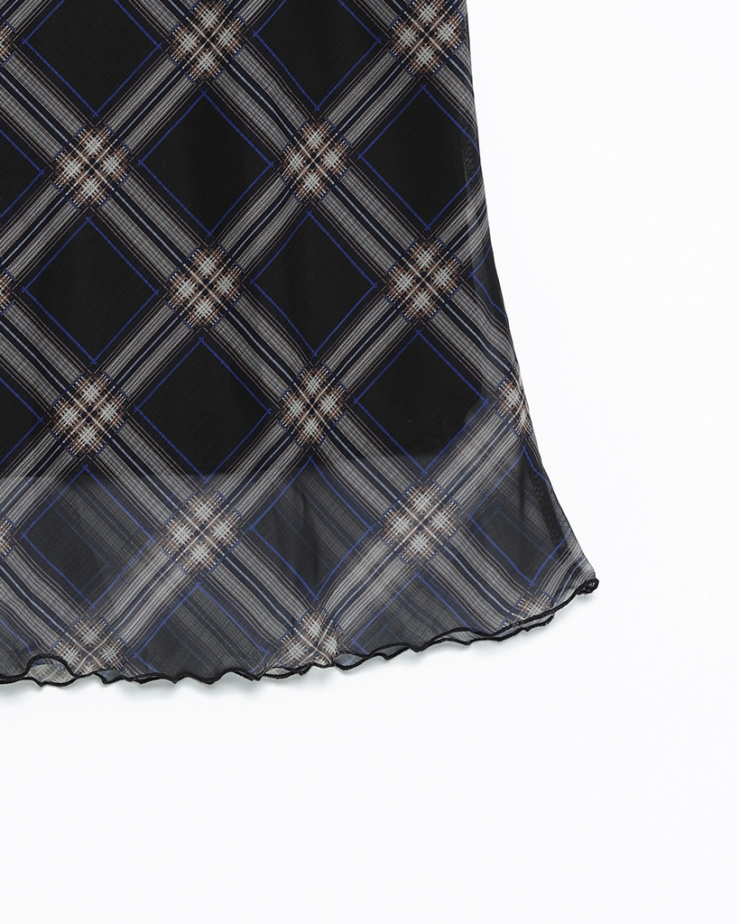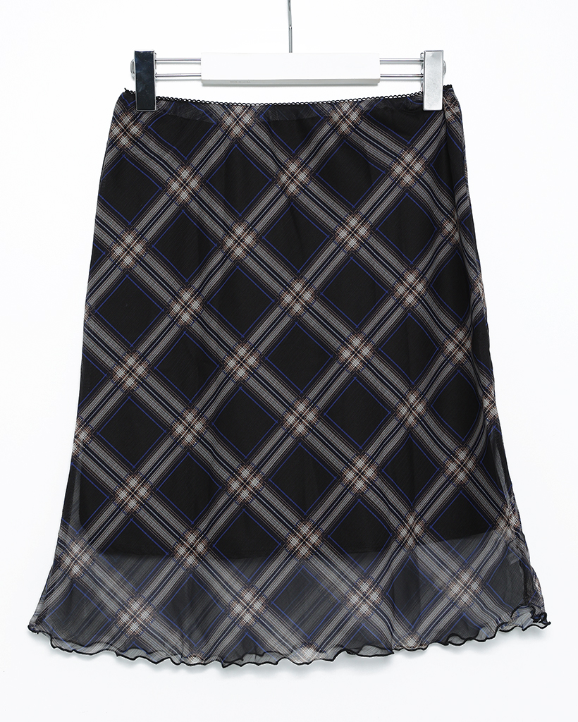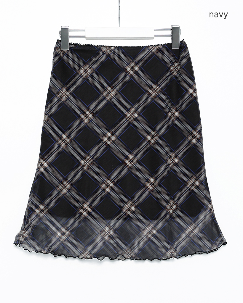 チェックスカラップヘムシフォンスカート