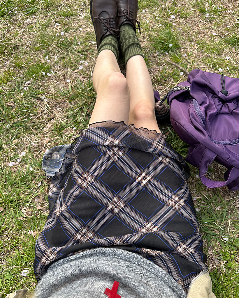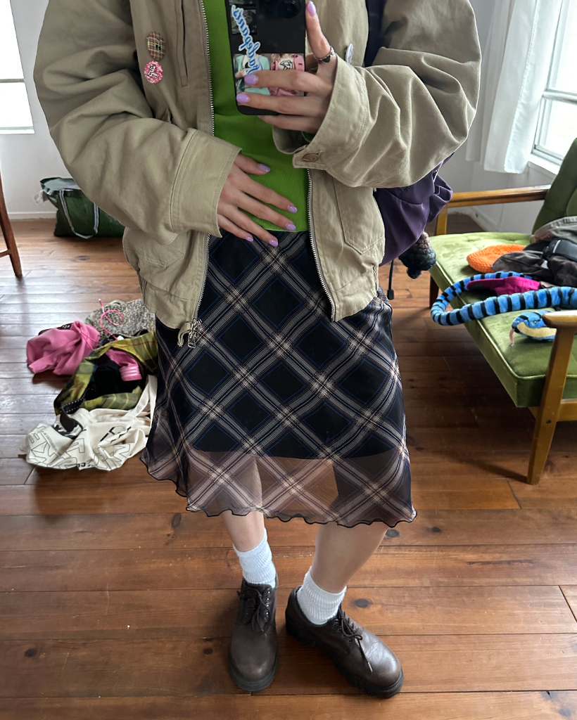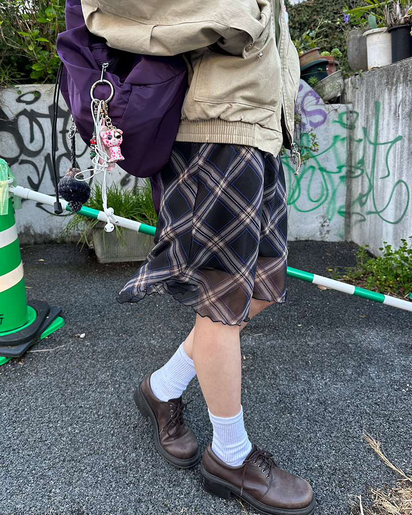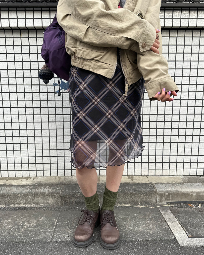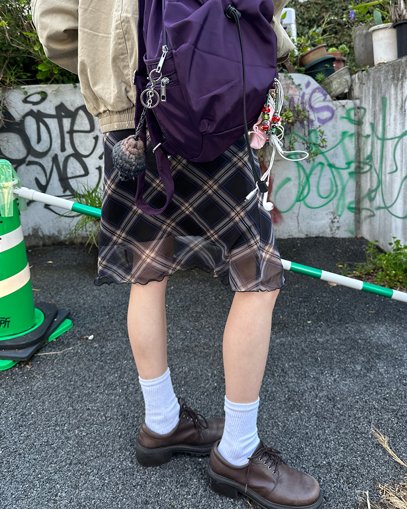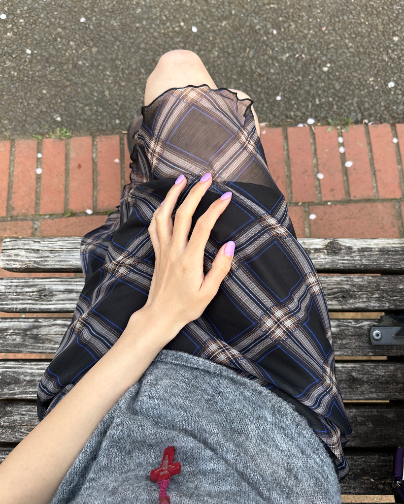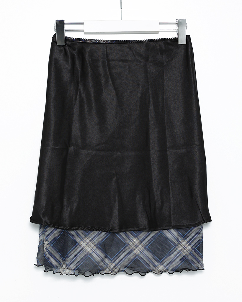 チェックスカラップヘムシフォンスカート