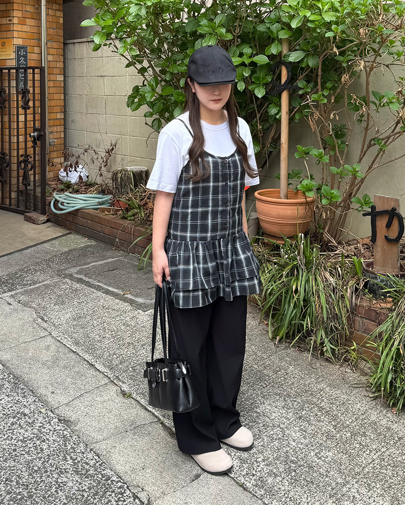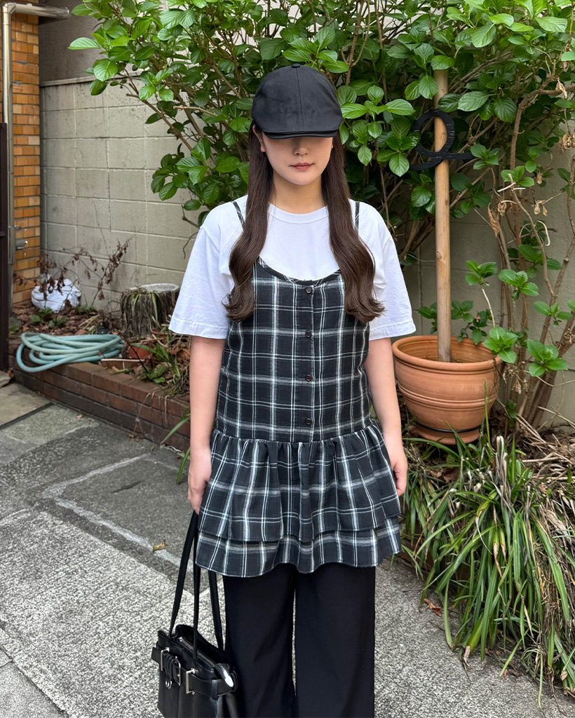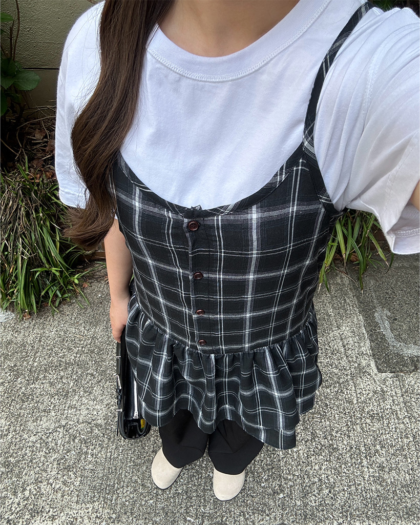 チェックスリーブレスビスチェ
