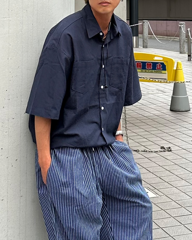 (ユニセックス)バイオウォッシュハーフスリーブシャツ