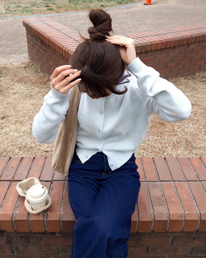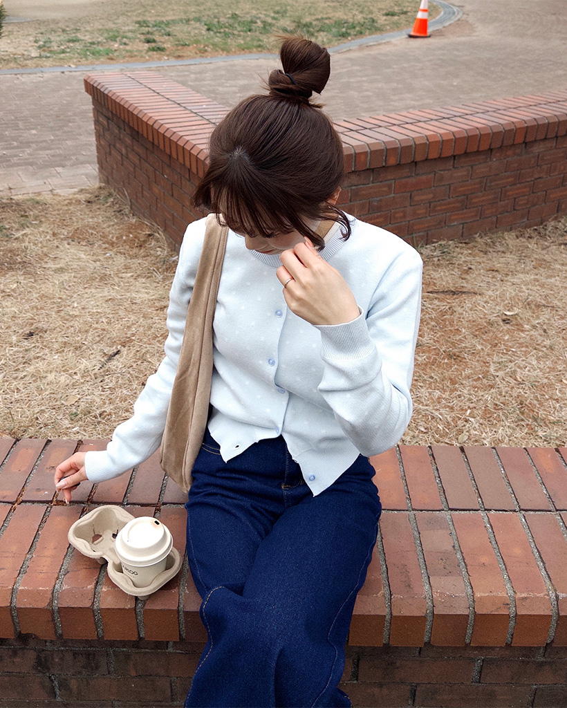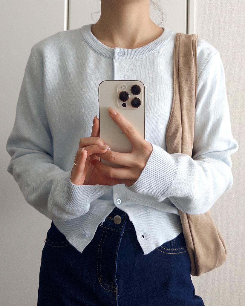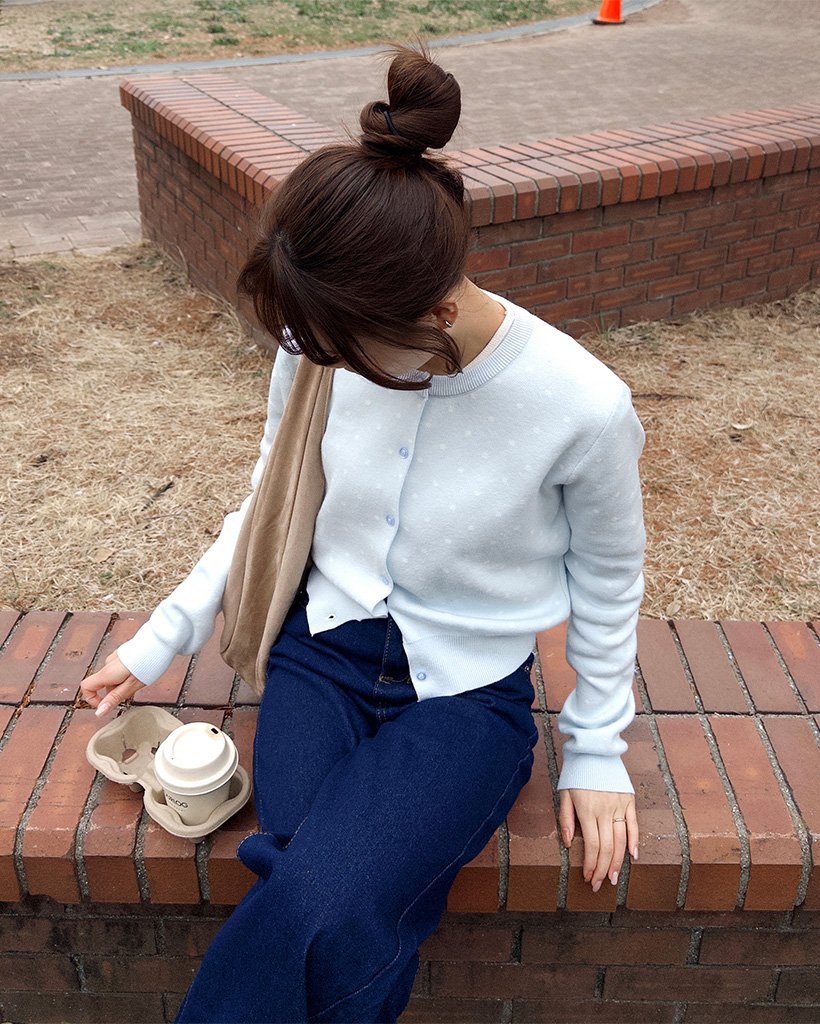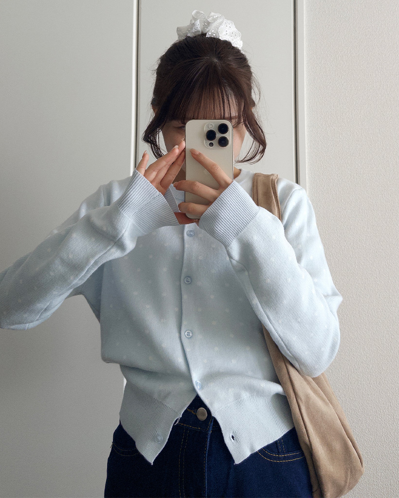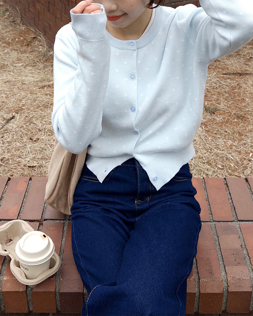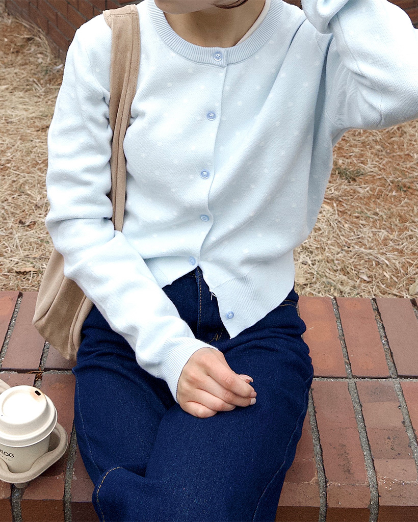 ラウンドネックドットカーディガン