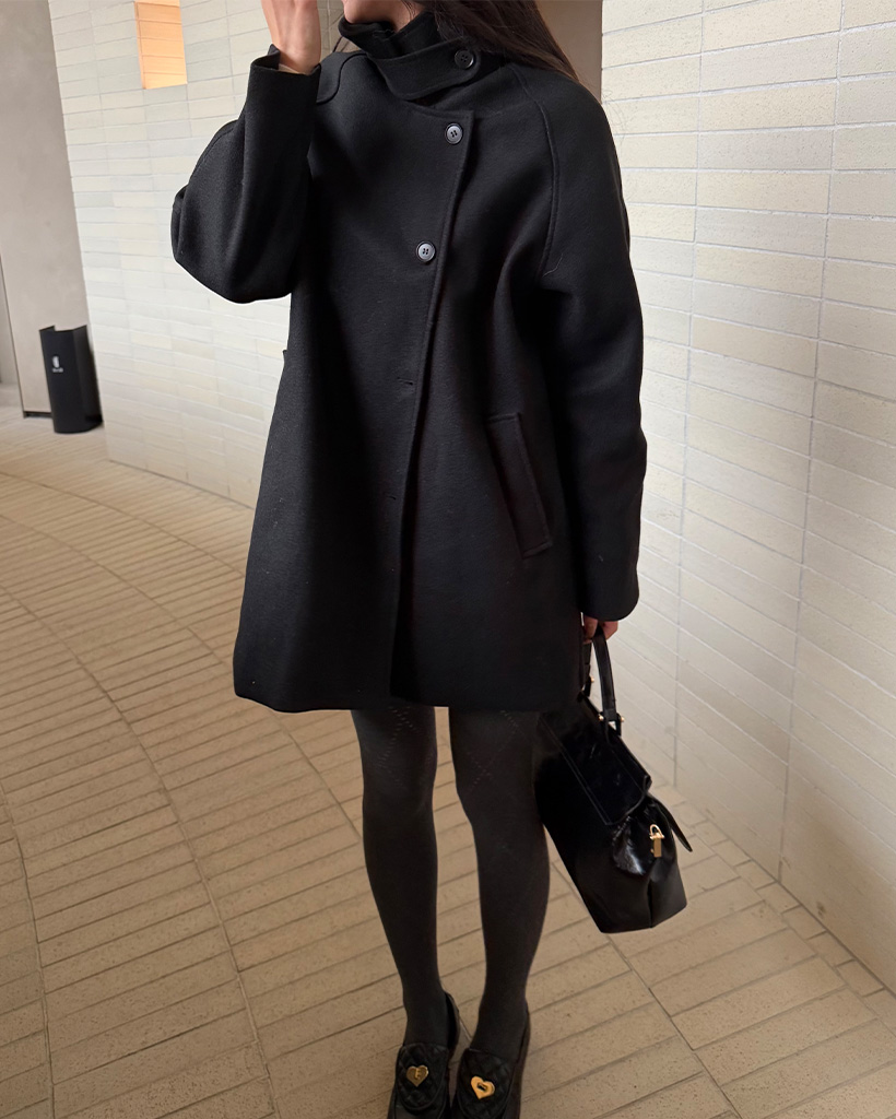ハイネックボタンハーフコート