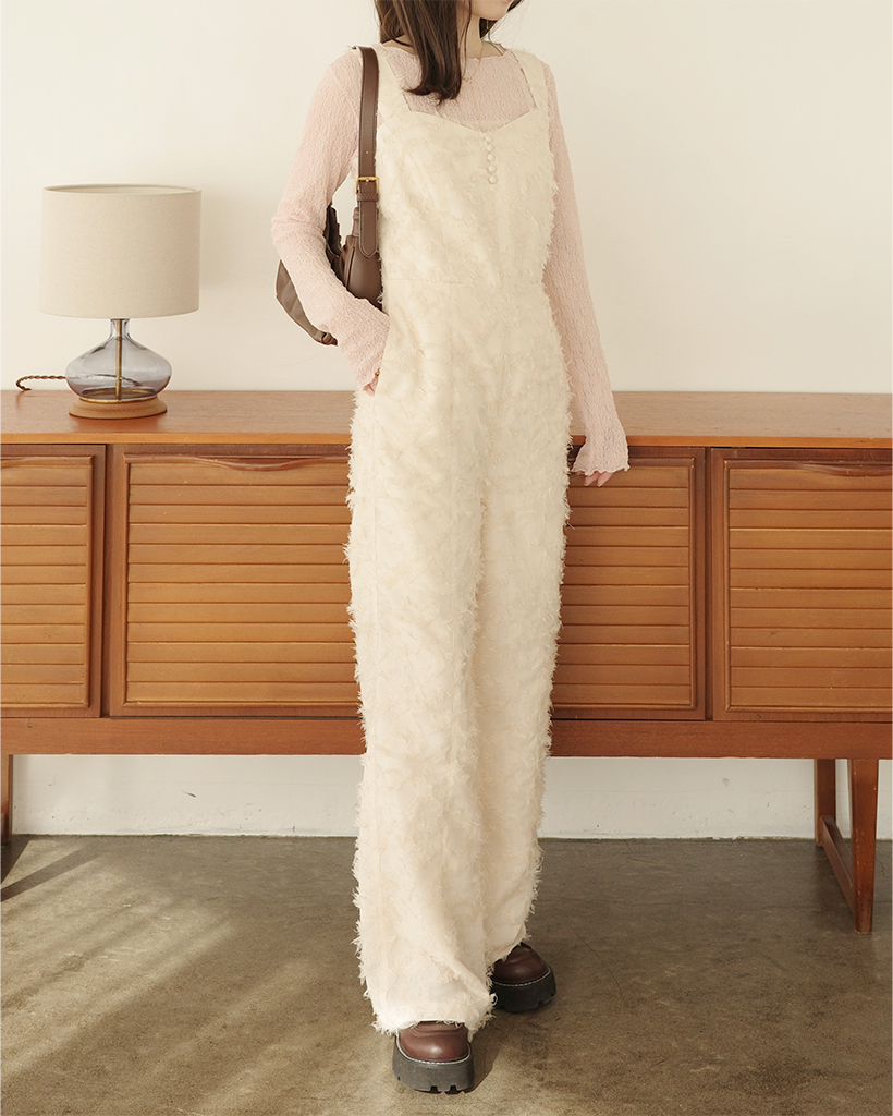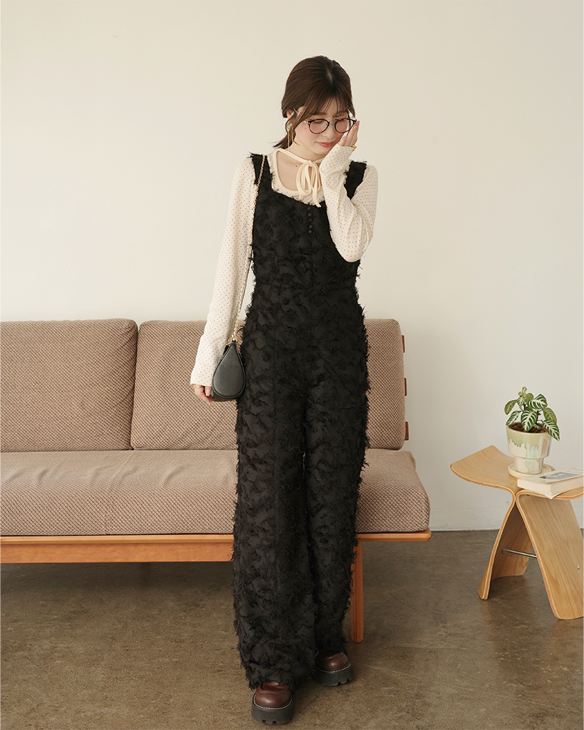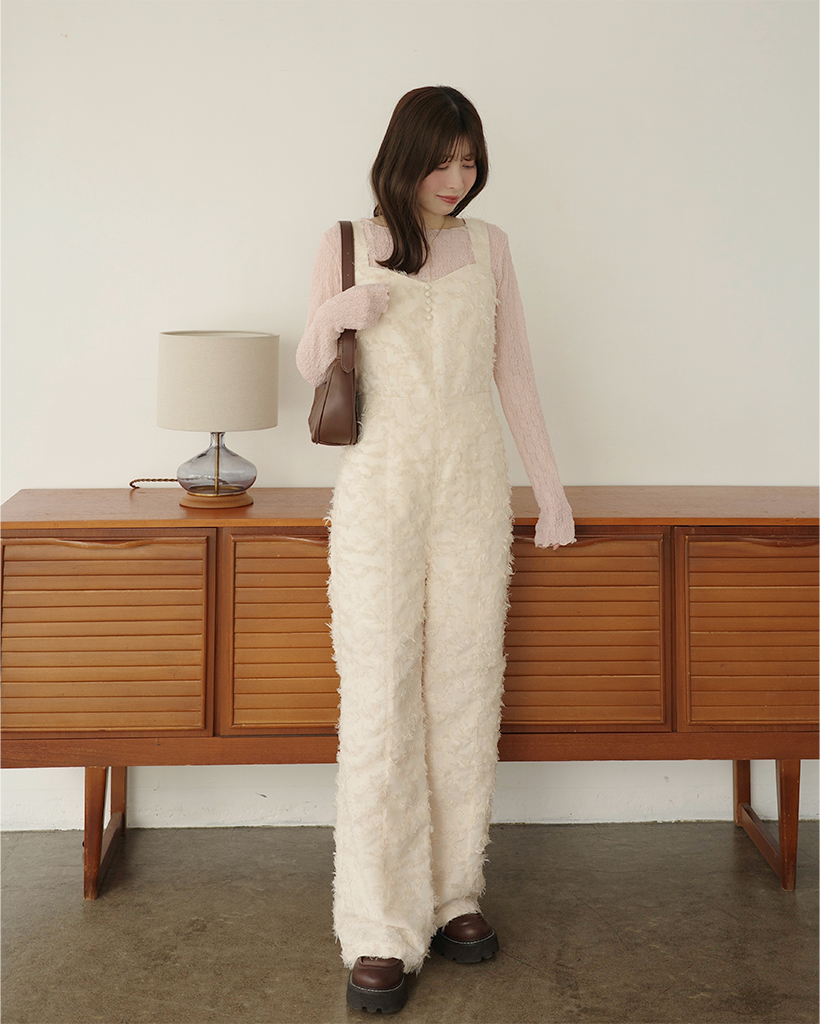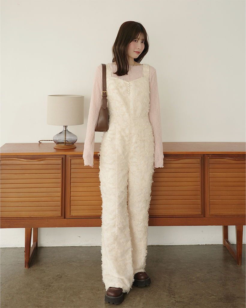 (ORIGINAL) ハートネックフェザージャンプスーツ