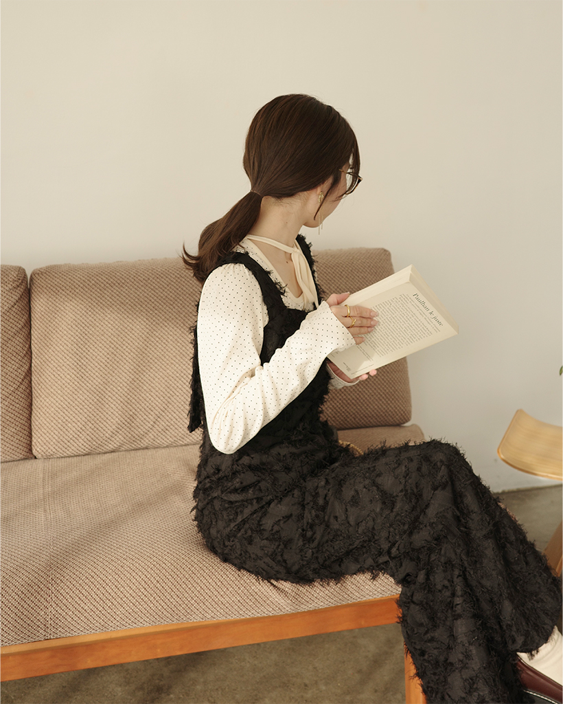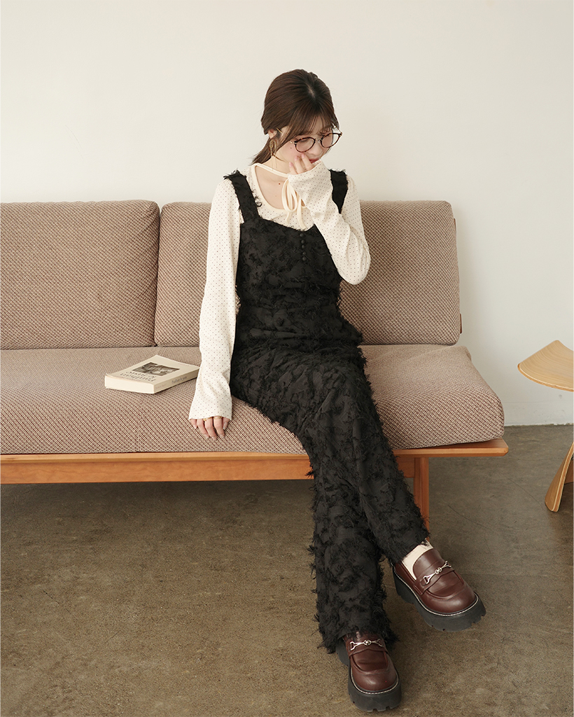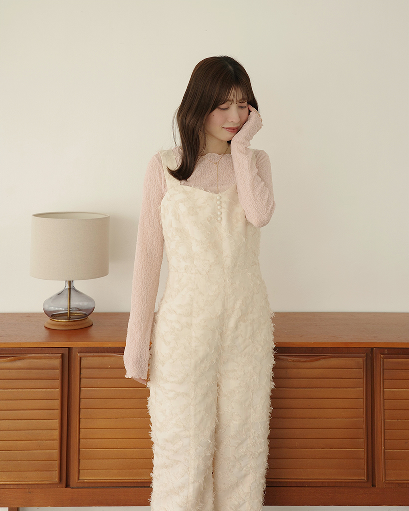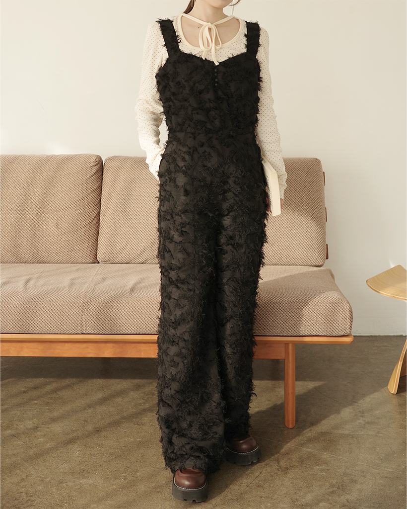 (ORIGINAL) ハートネックフェザージャンプスーツ