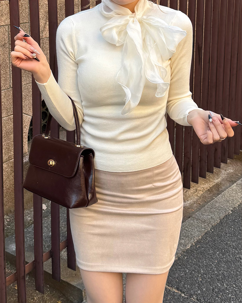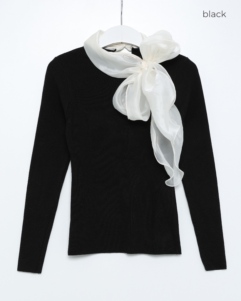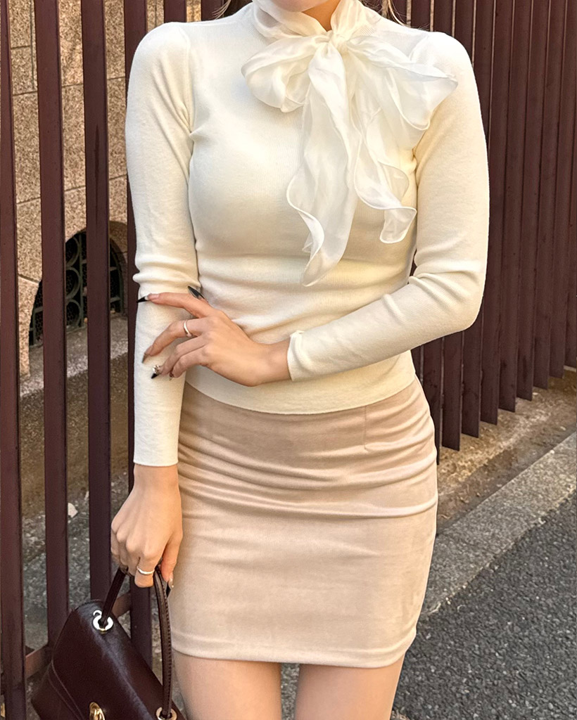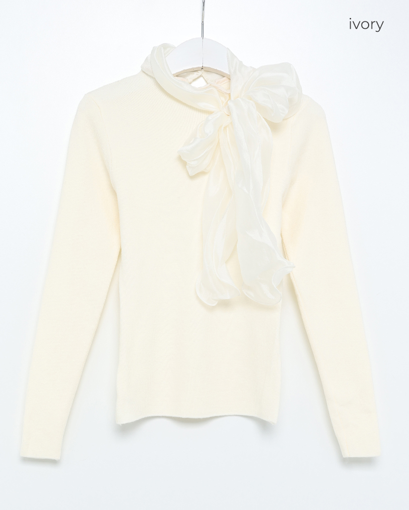 リボンタイディテールニット