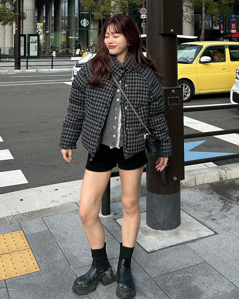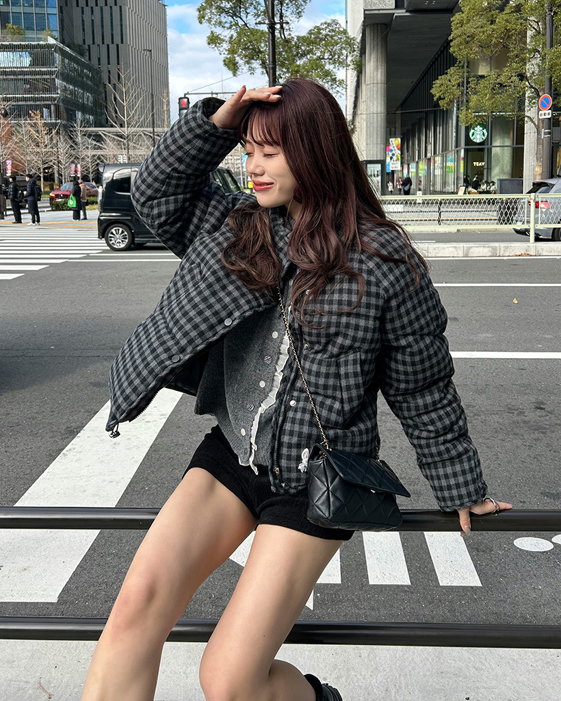 チェックパターンダウンジャケット