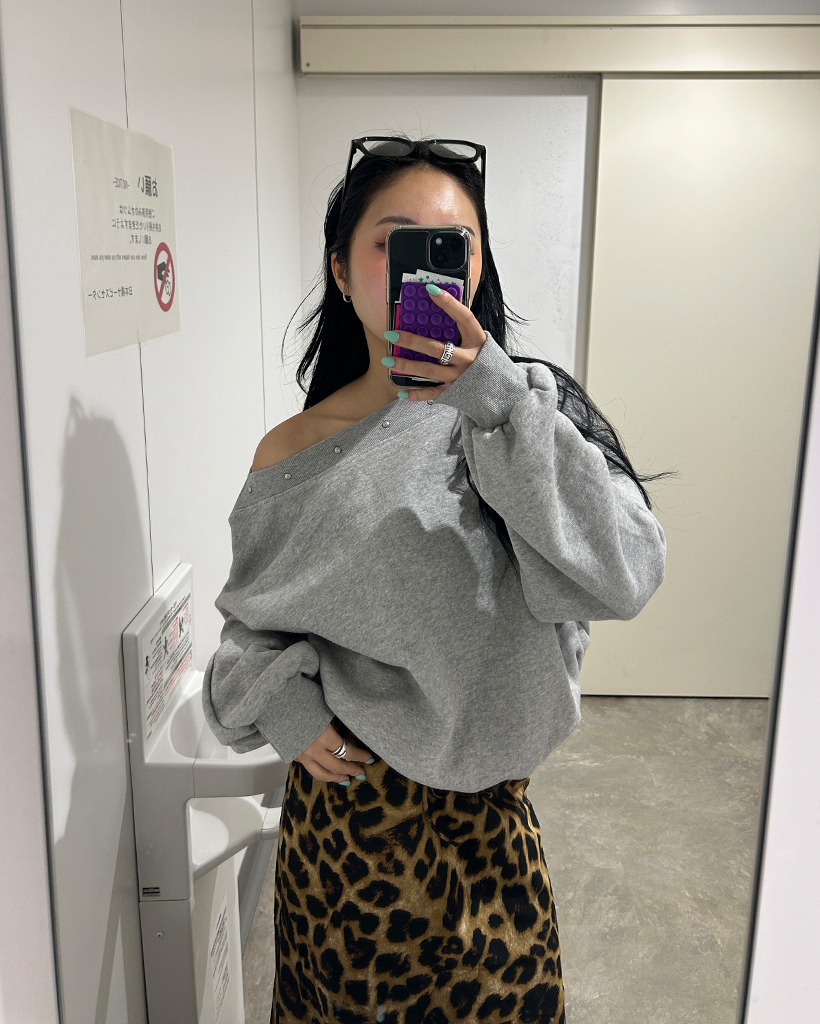 2wayネックスタッズロングスリーブ裏起毛スウェット