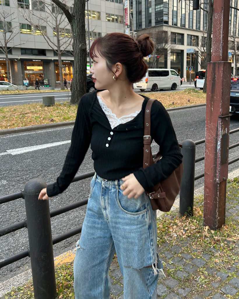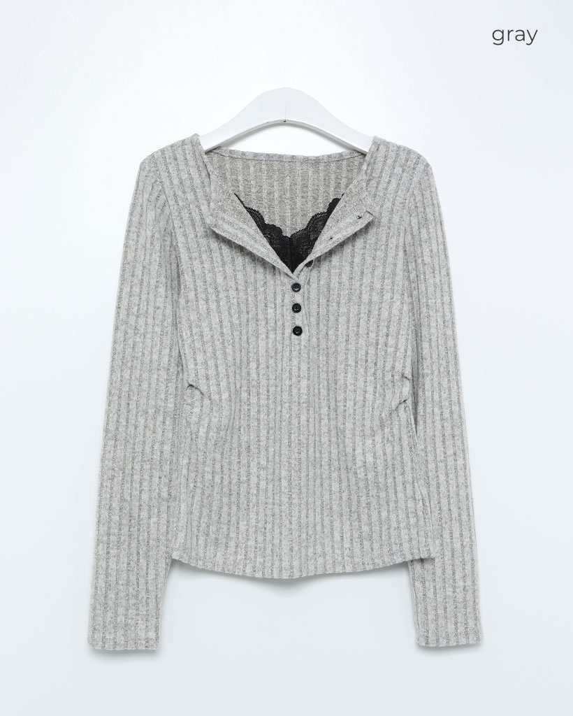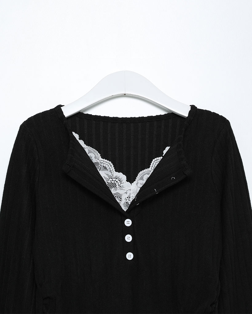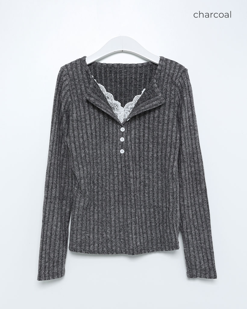 レースディテールボタンニット