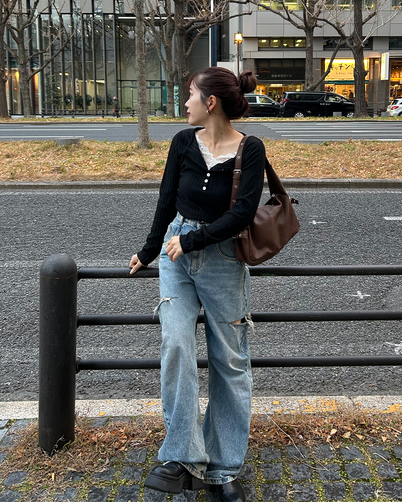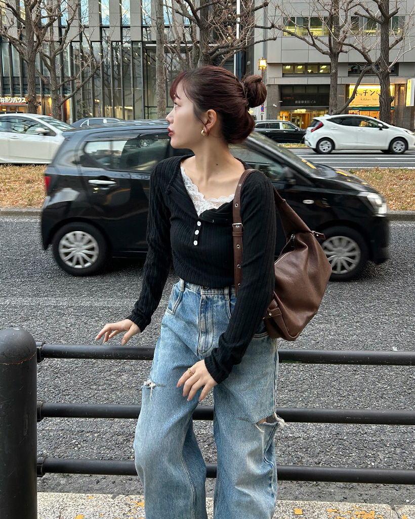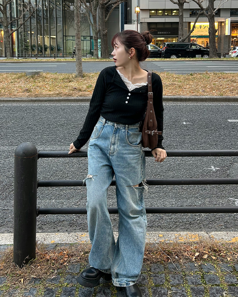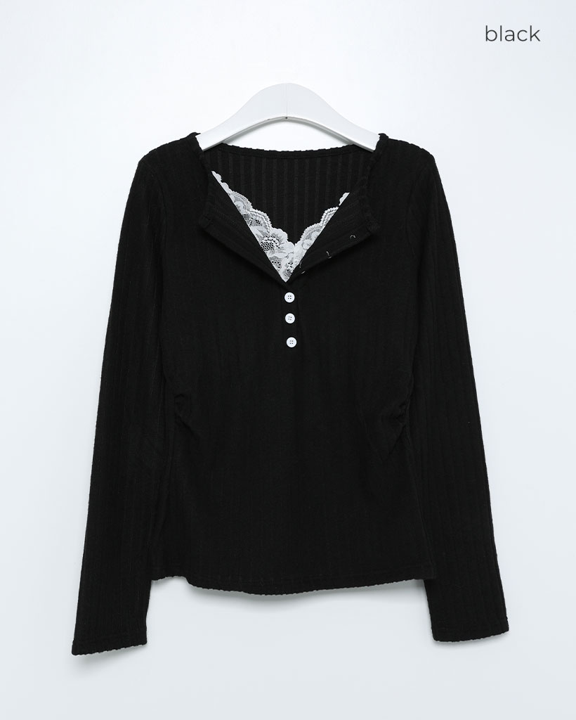 レースディテールボタンニット