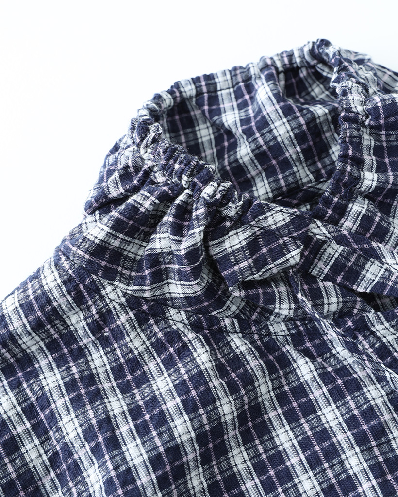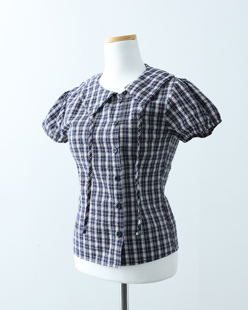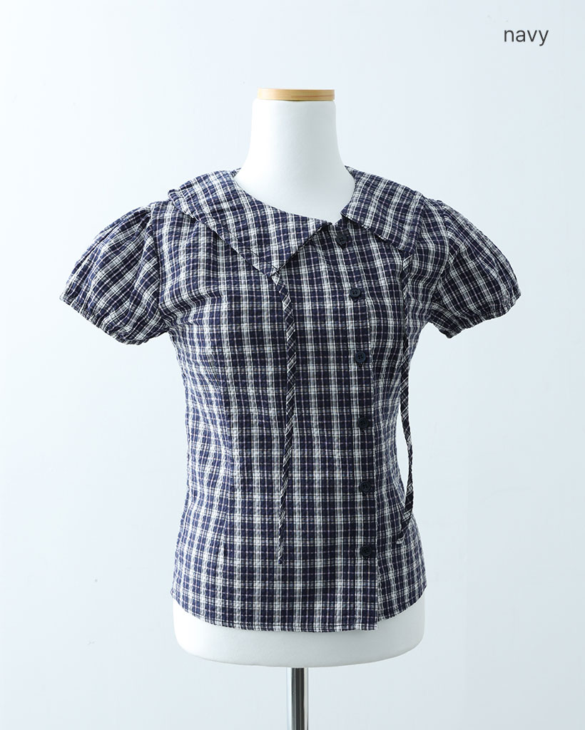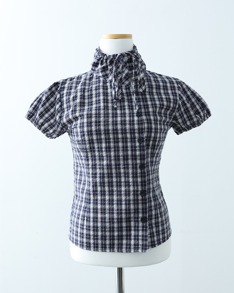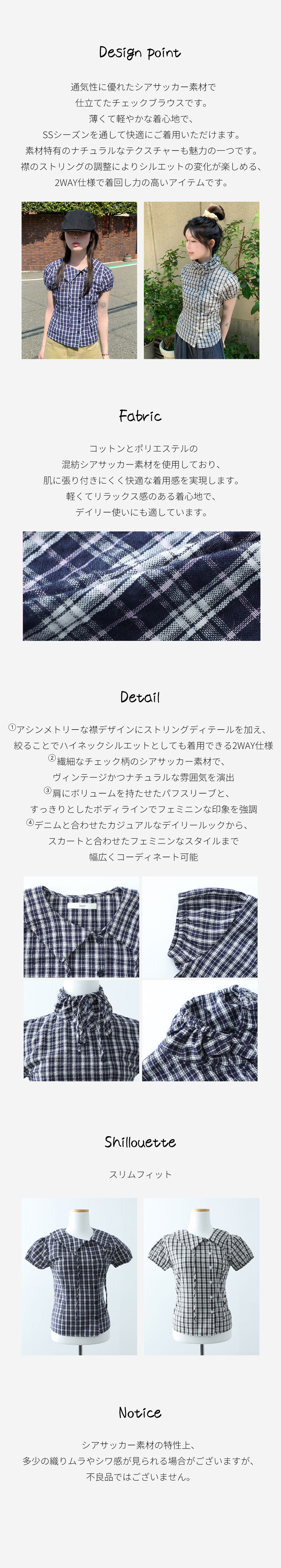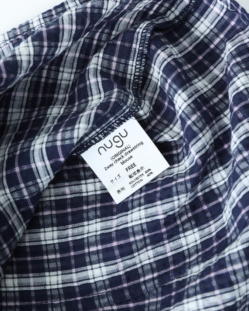 (ORIGINAL) 2wayチェックドローストリングブラウス