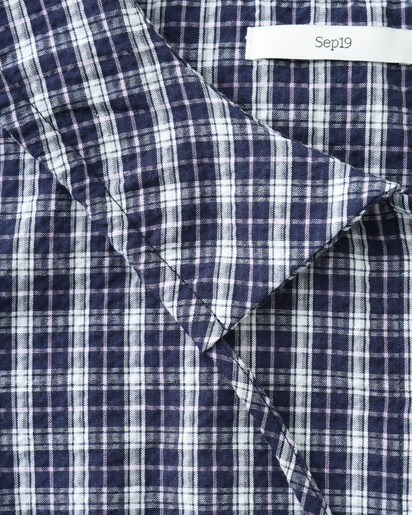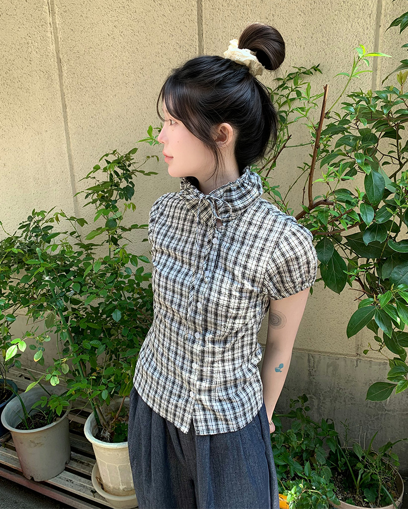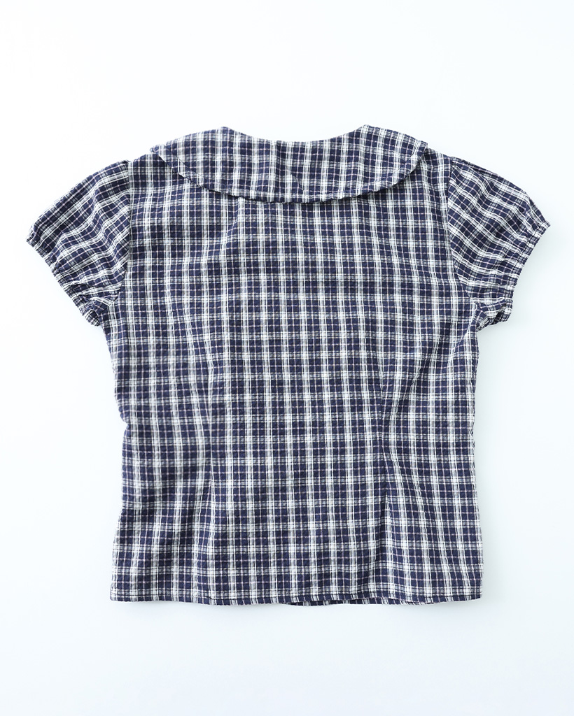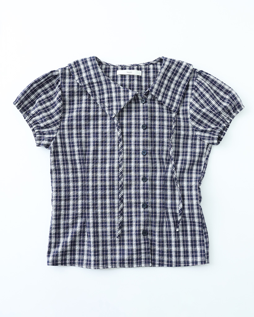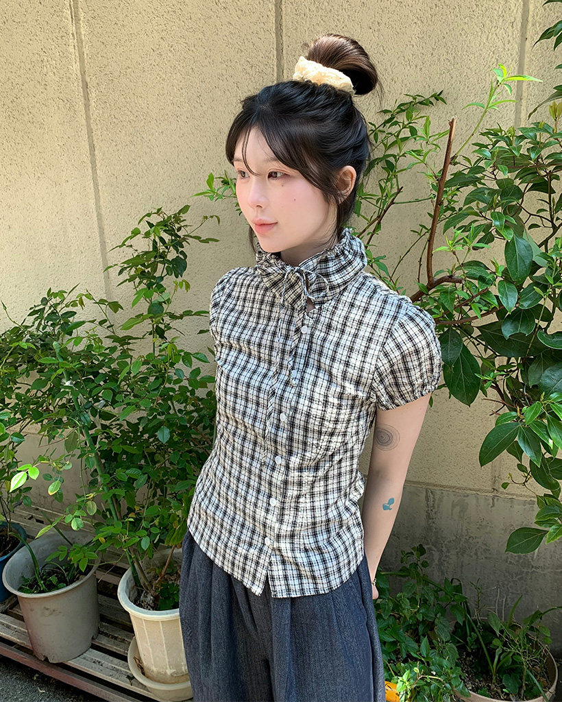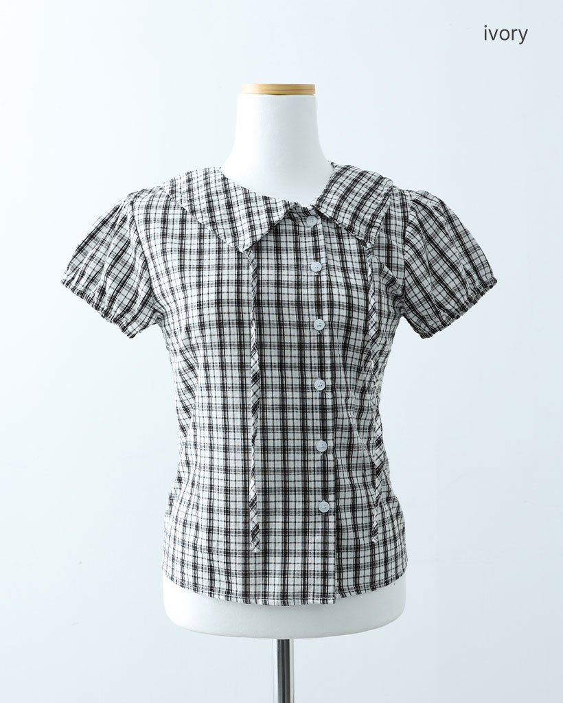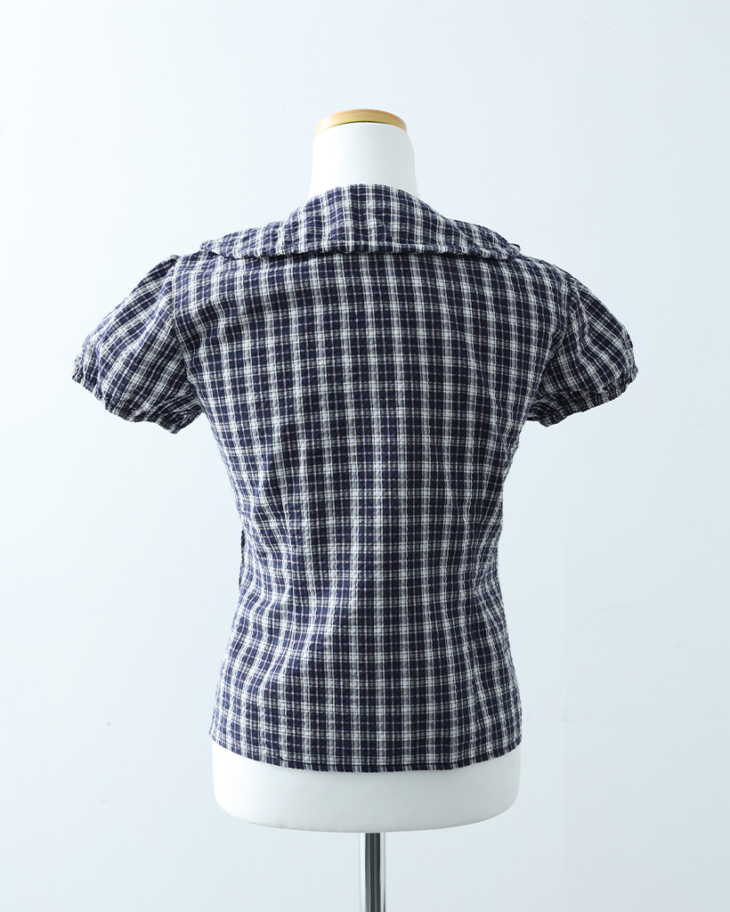 (ORIGINAL) 2wayチェックドローストリングブラウス