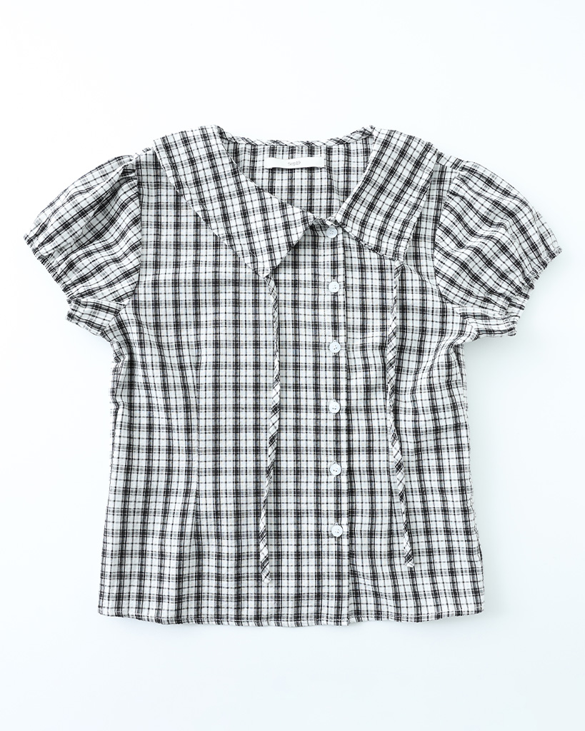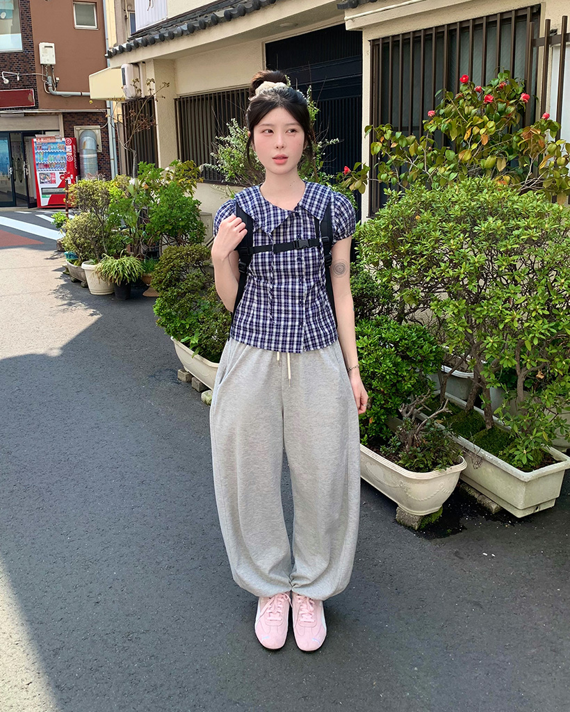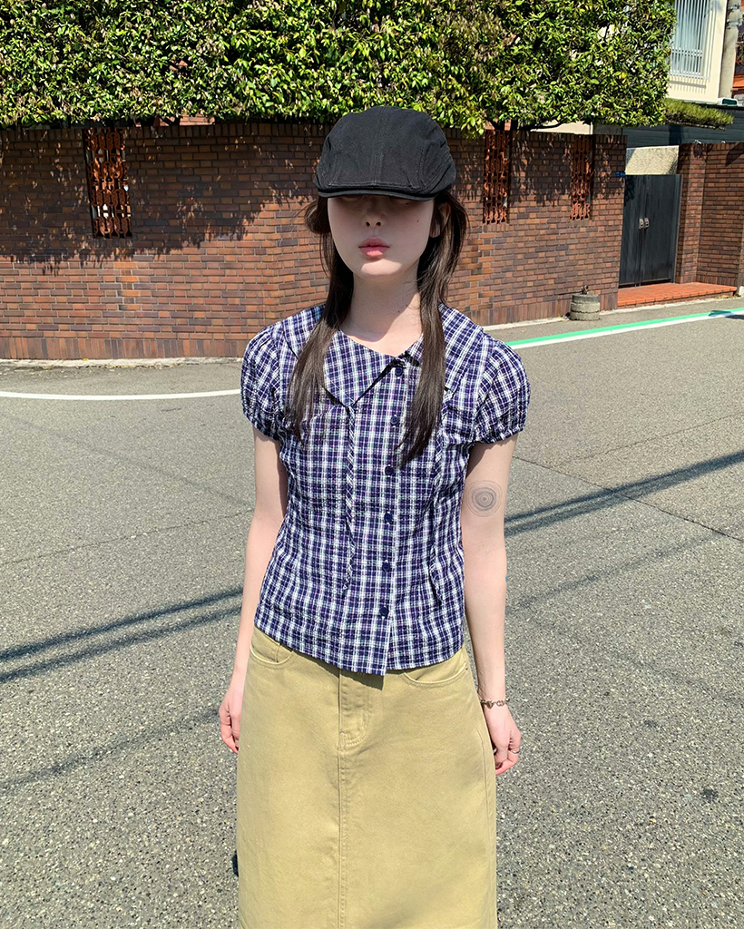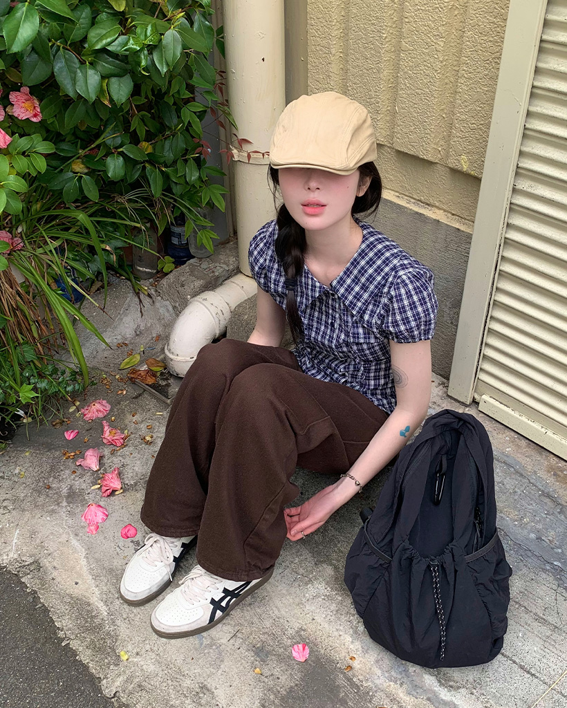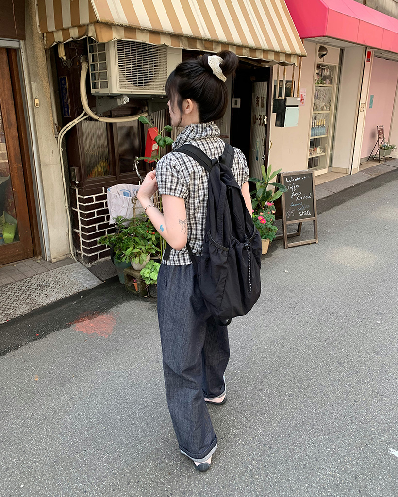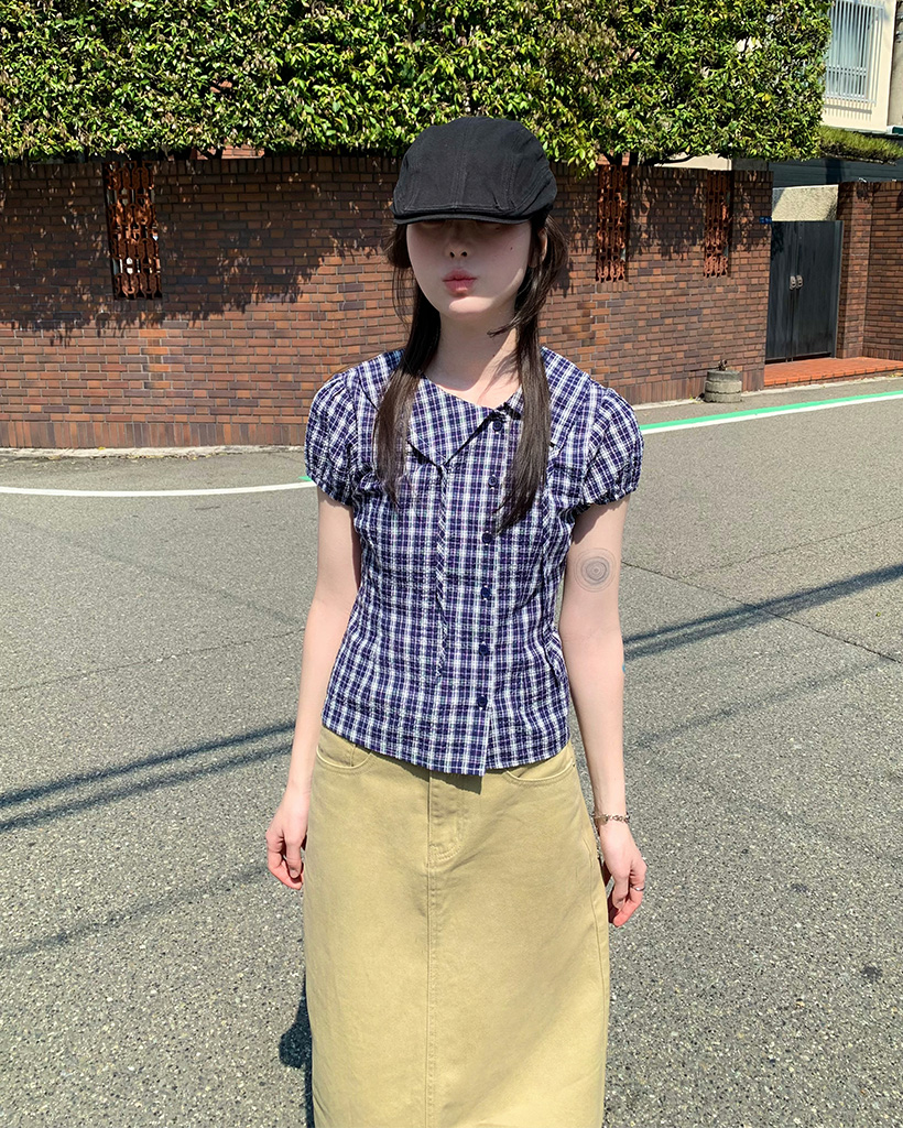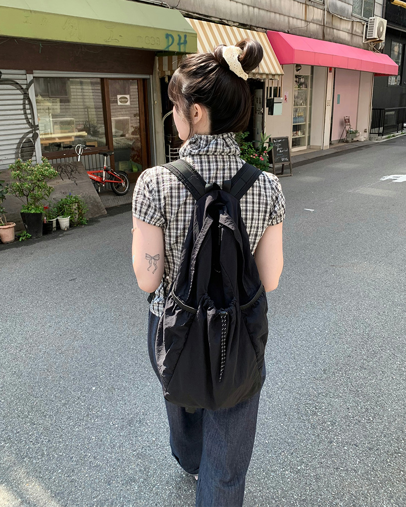 (ORIGINAL) 2wayチェックドローストリングブラウス