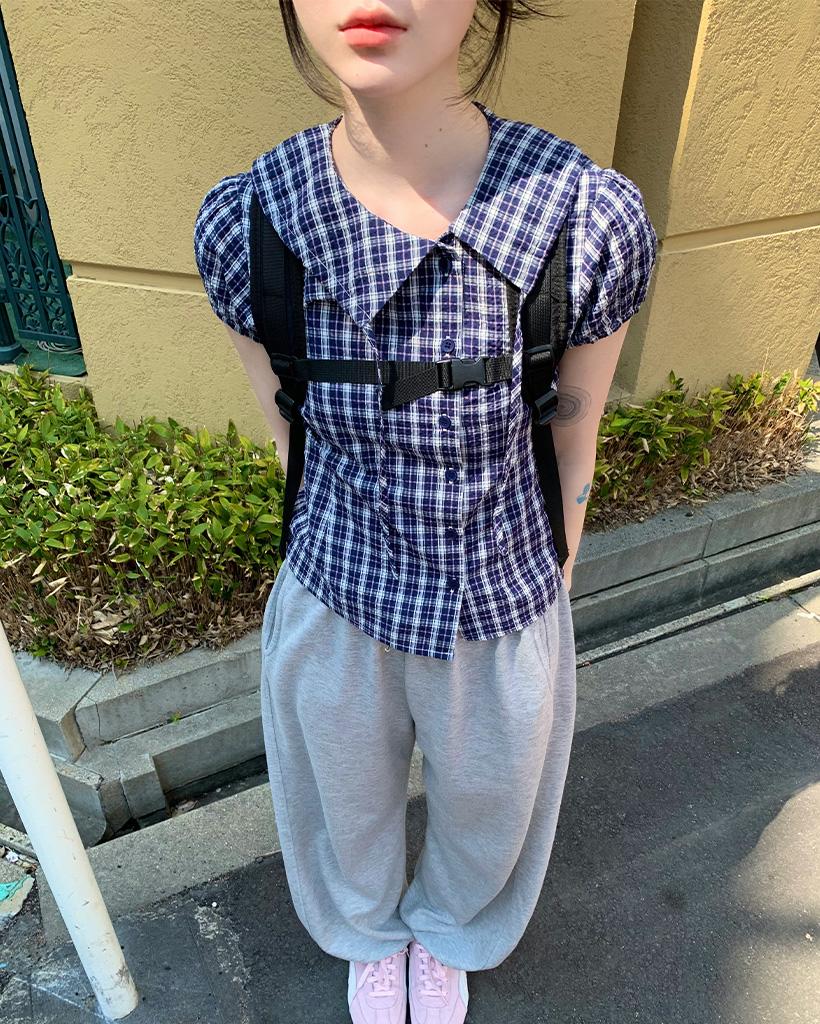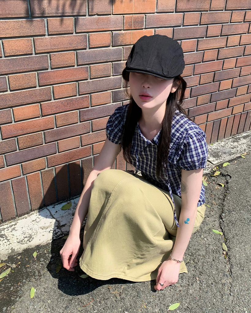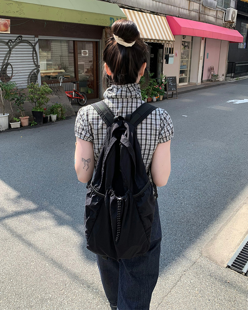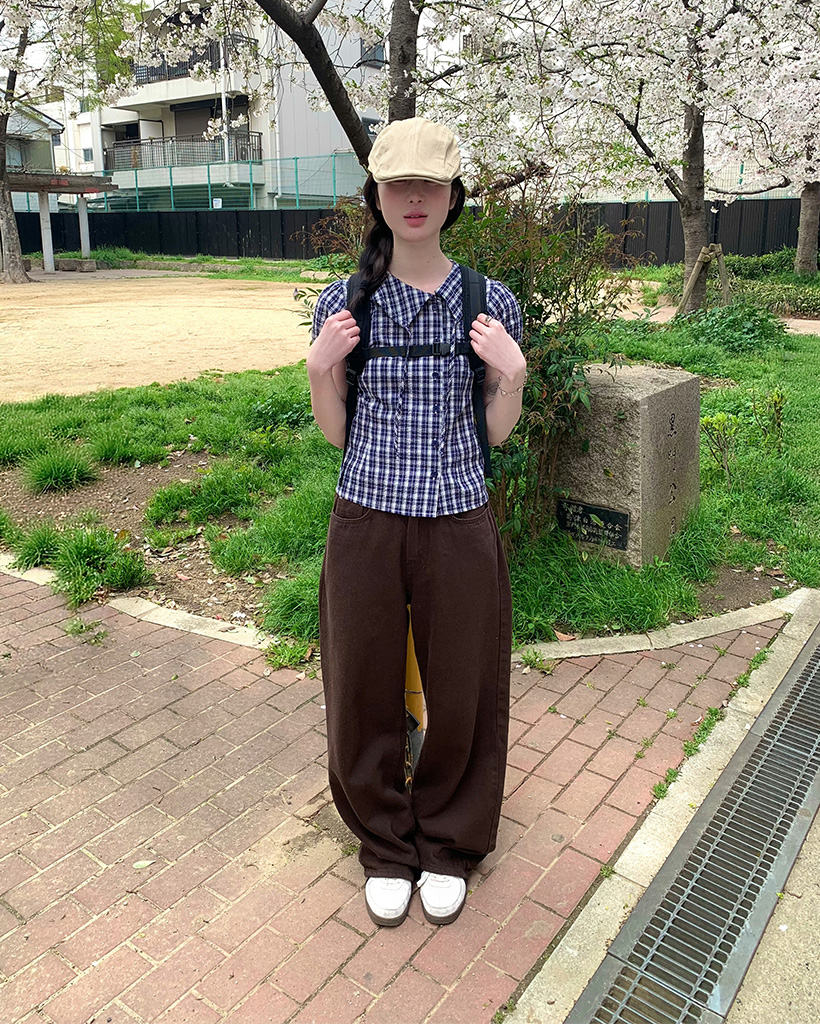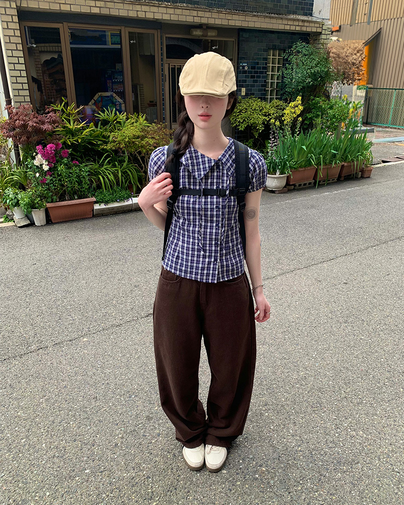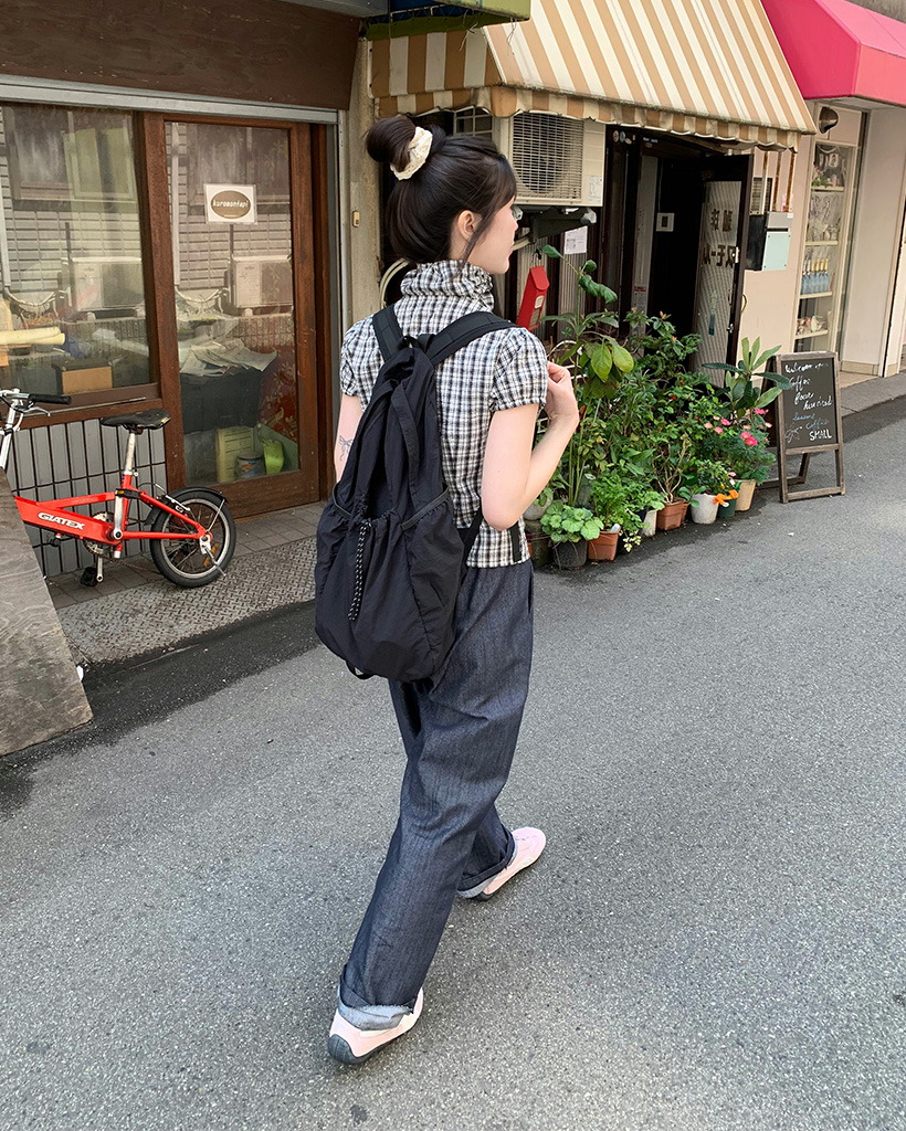 (ORIGINAL) 2wayチェックドローストリングブラウス