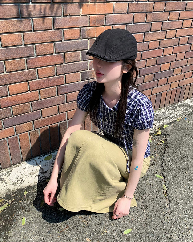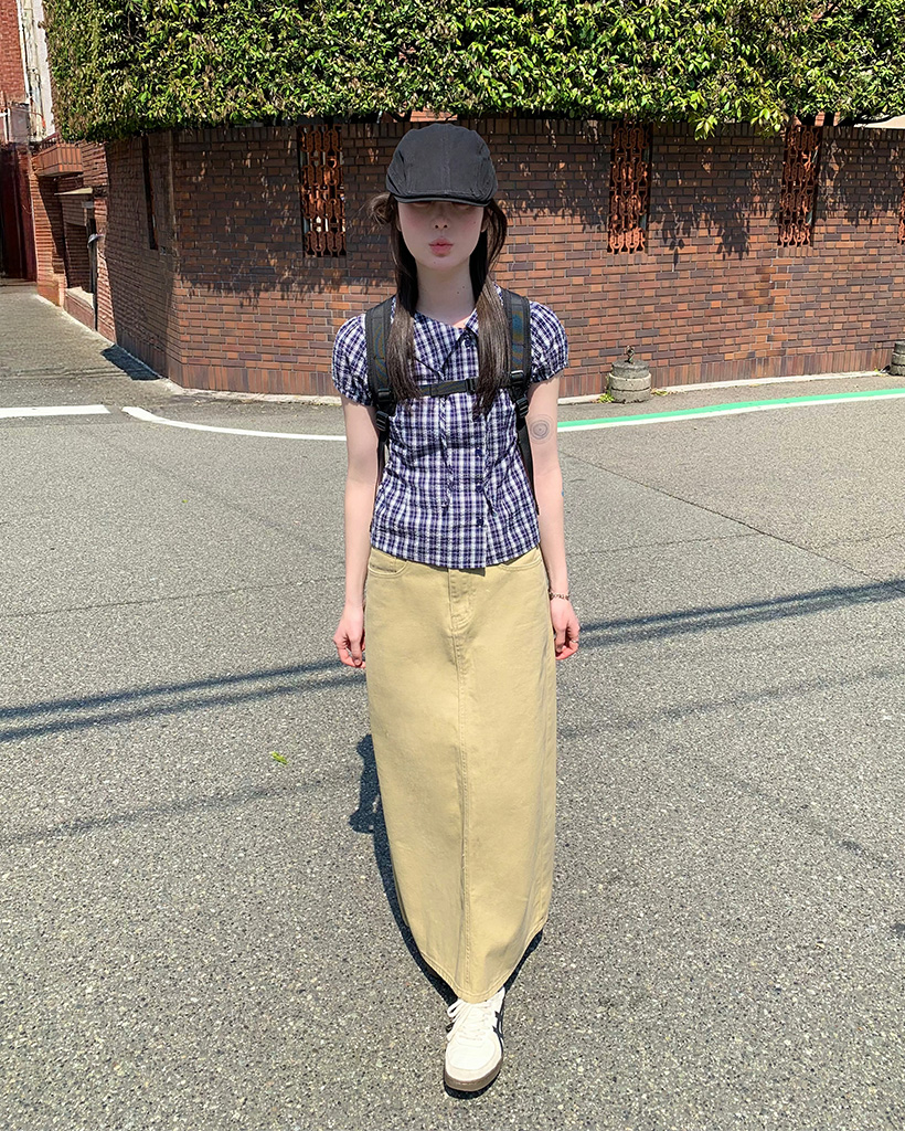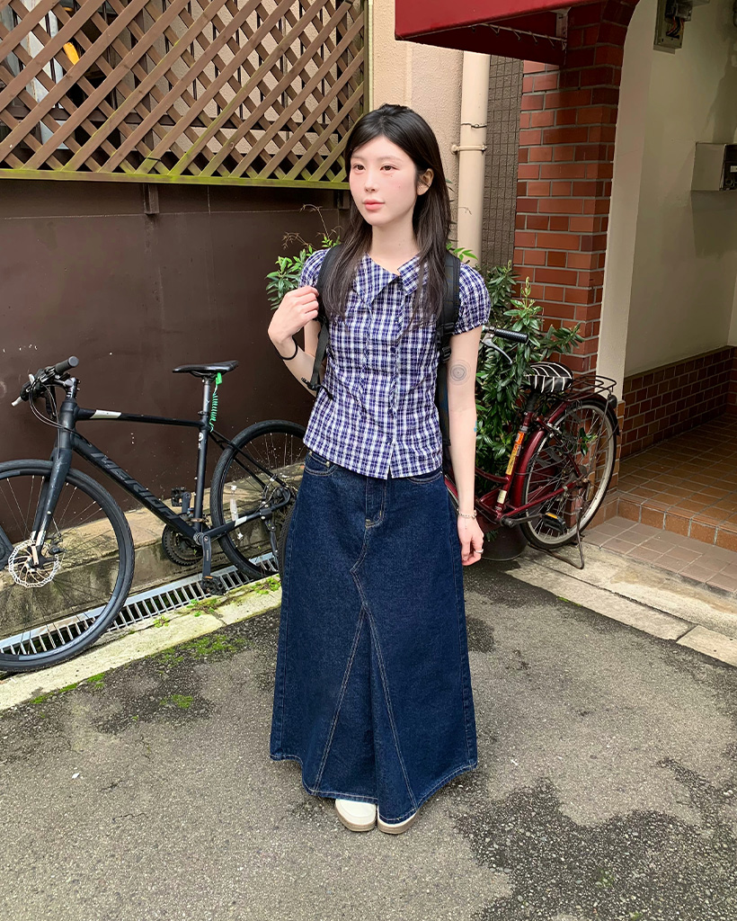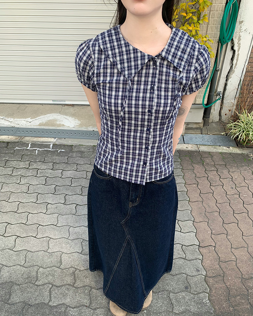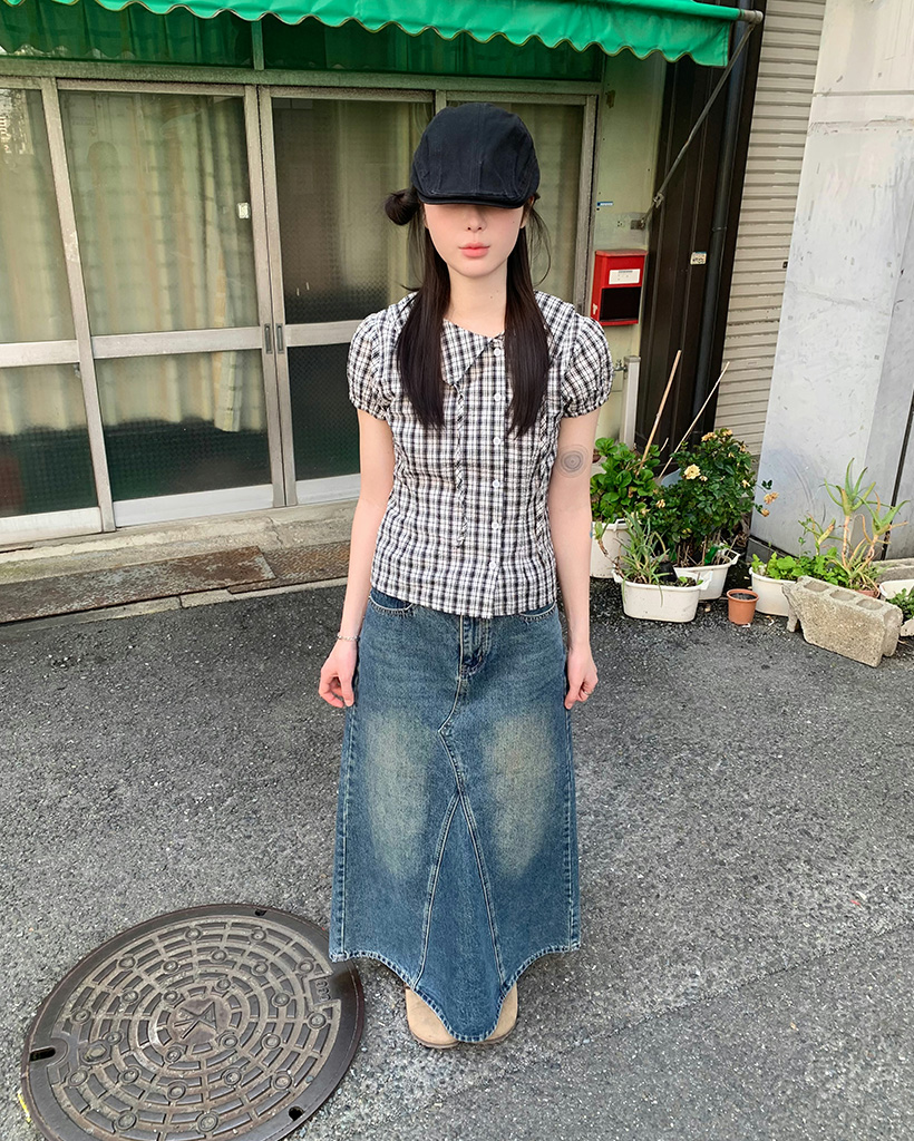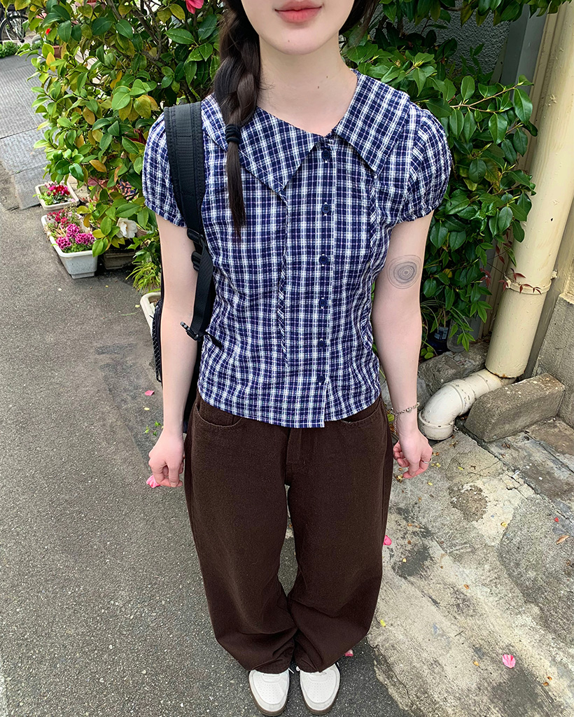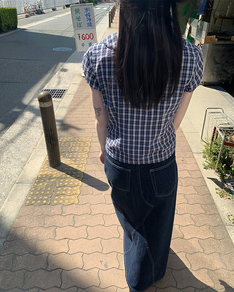 (ORIGINAL) 2wayチェックドローストリングブラウス