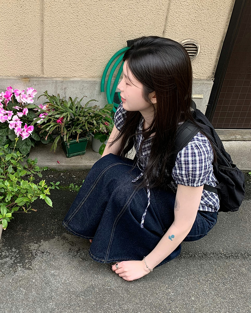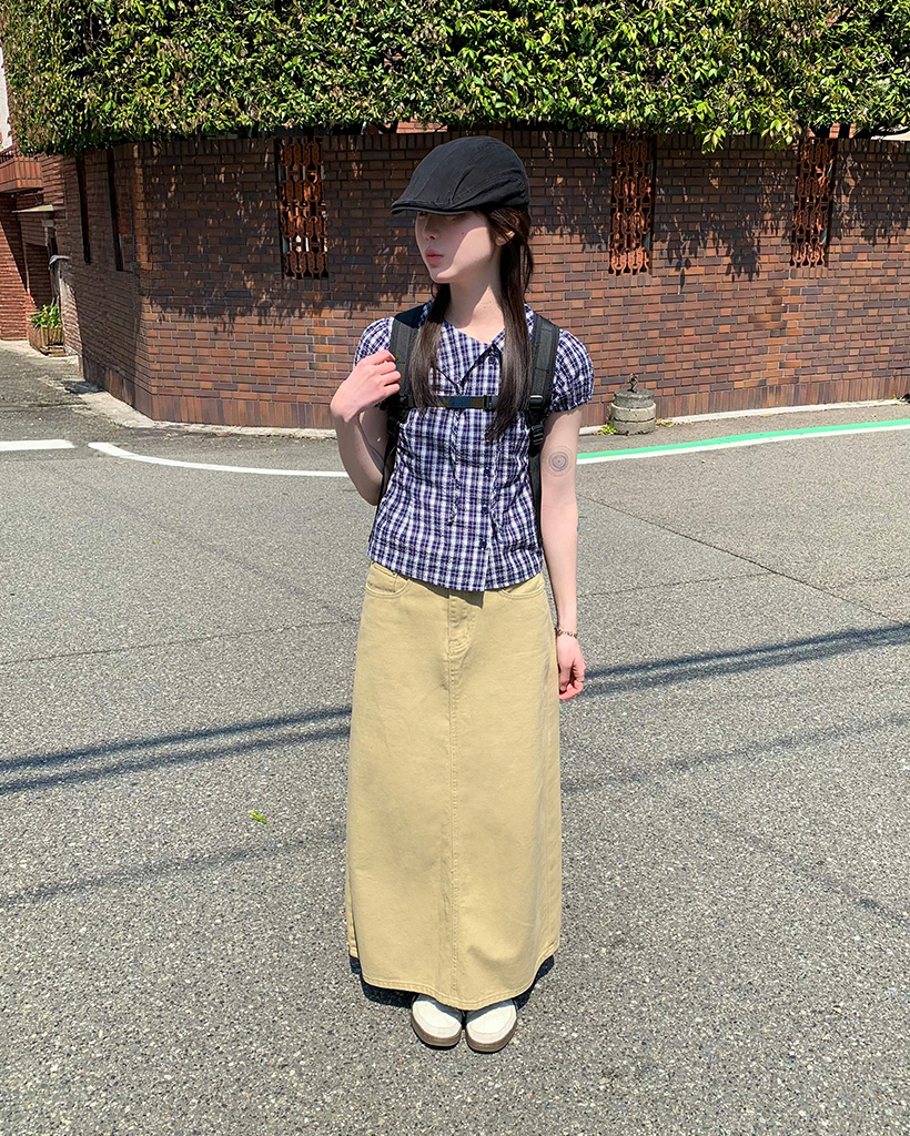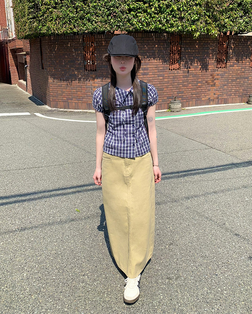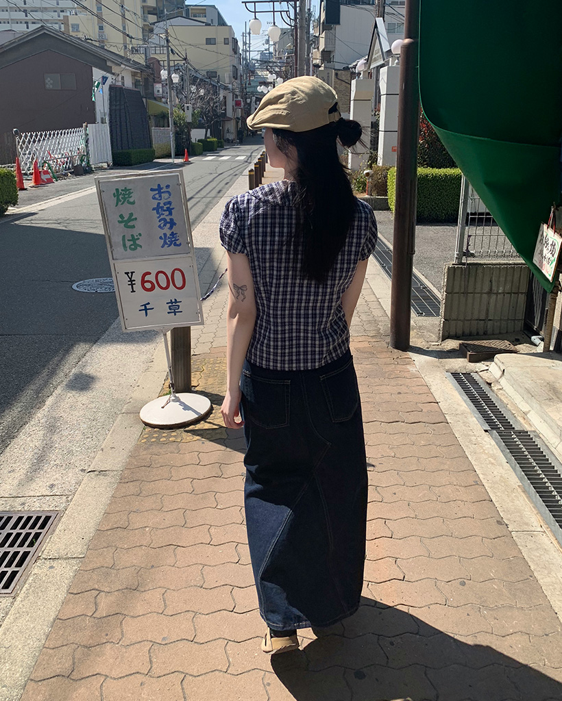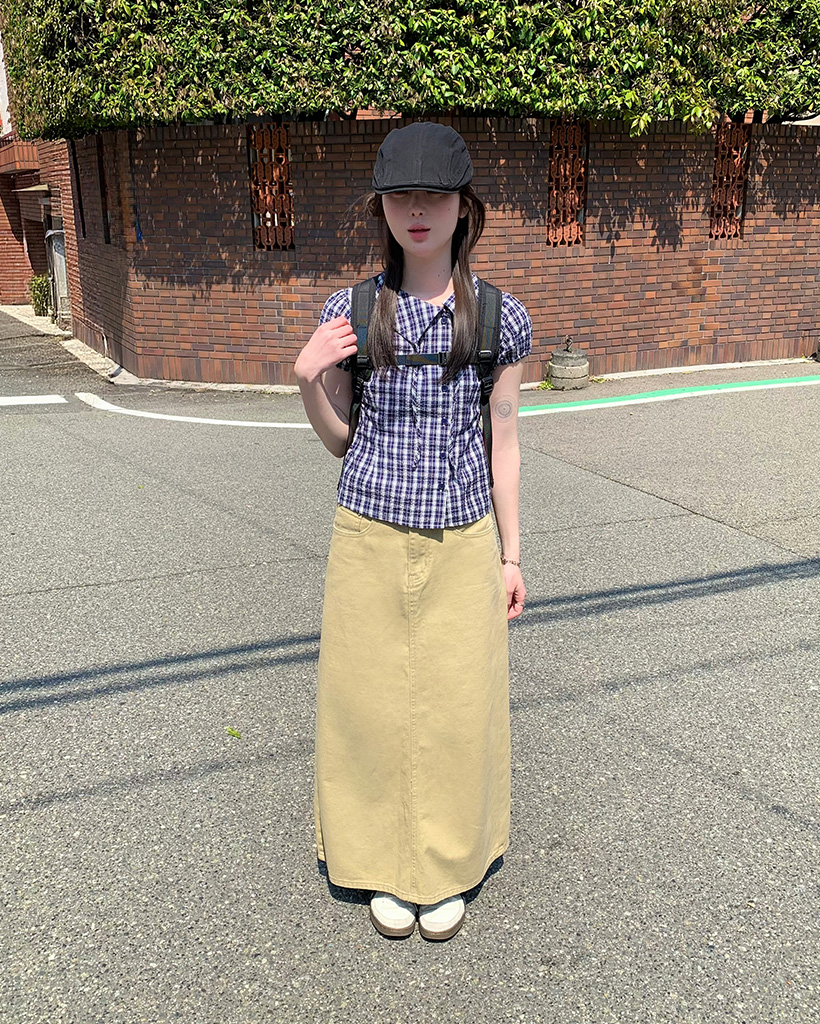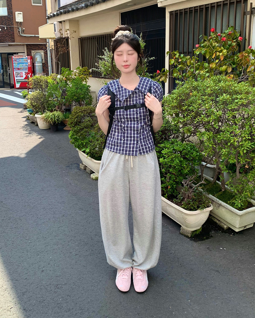 (ORIGINAL) 2wayチェックドローストリングブラウス