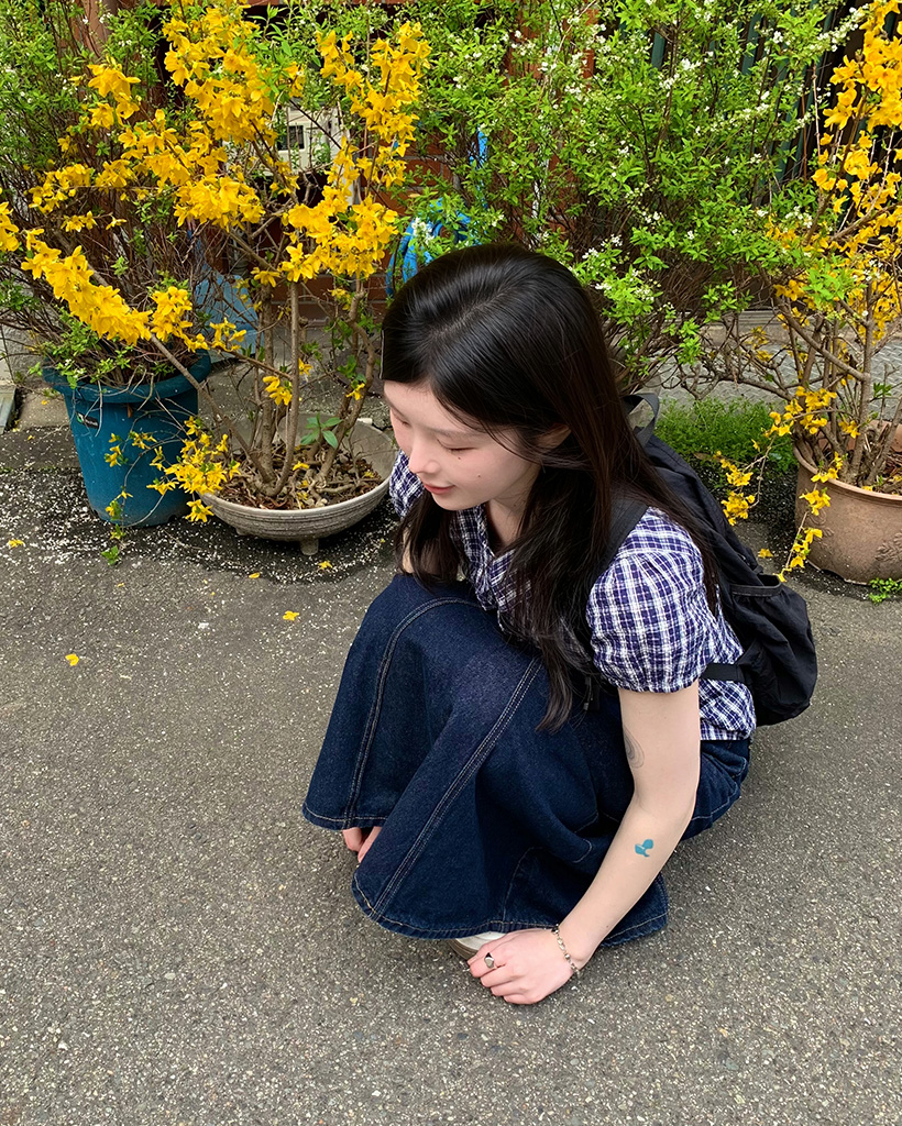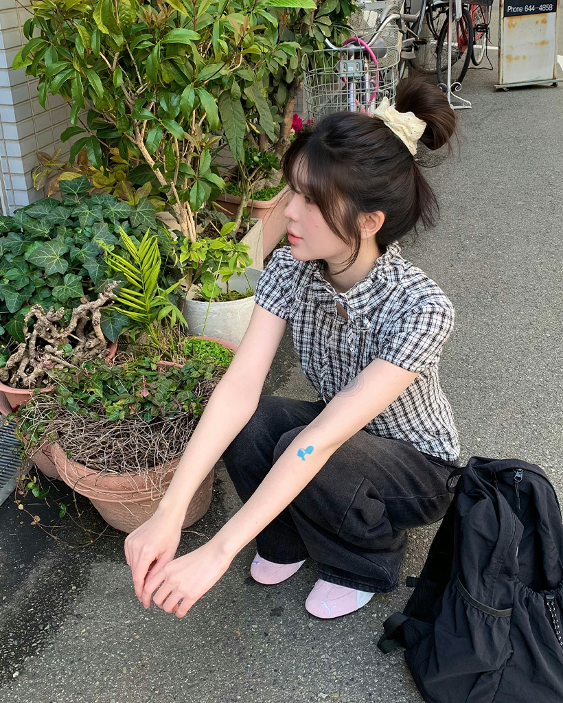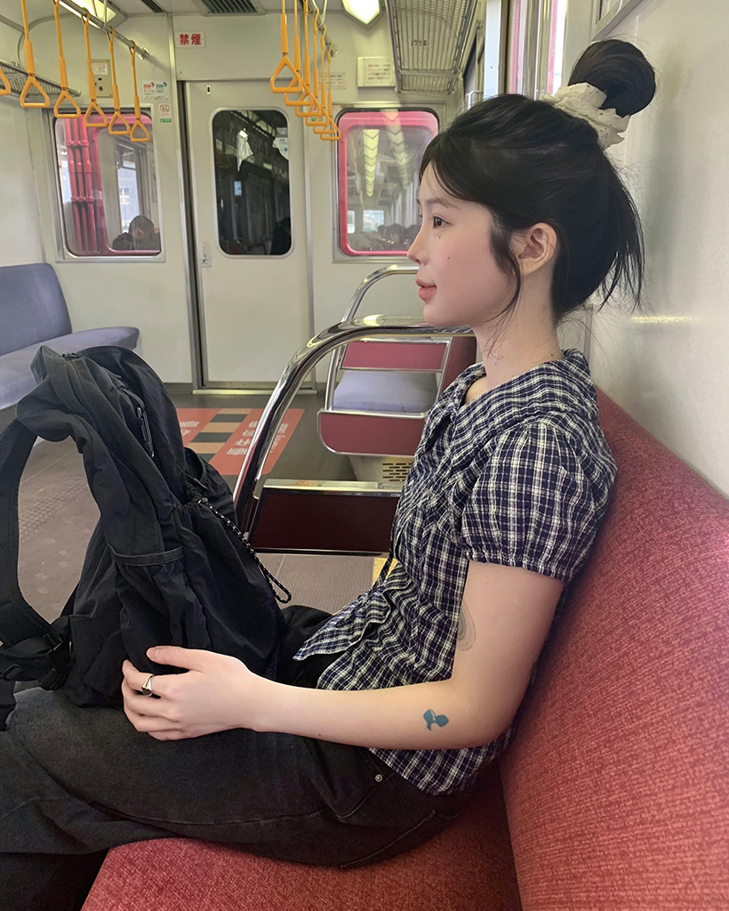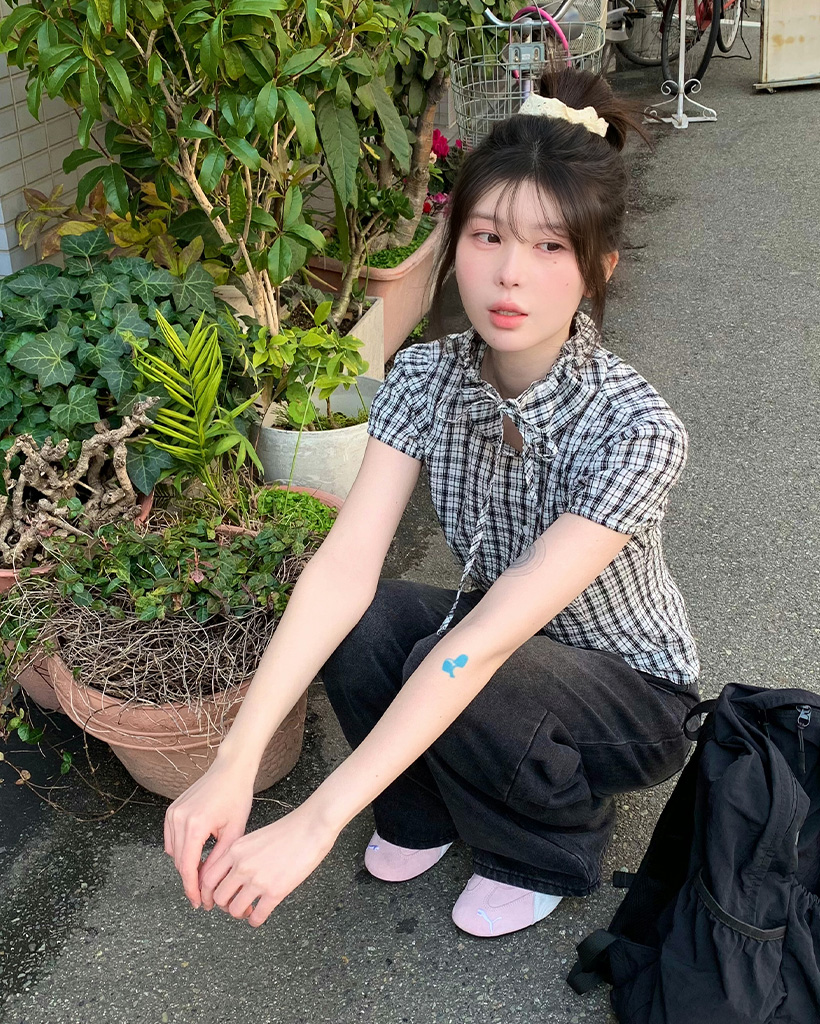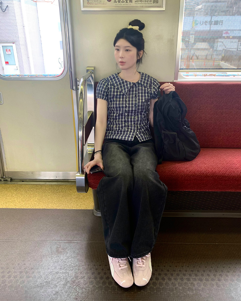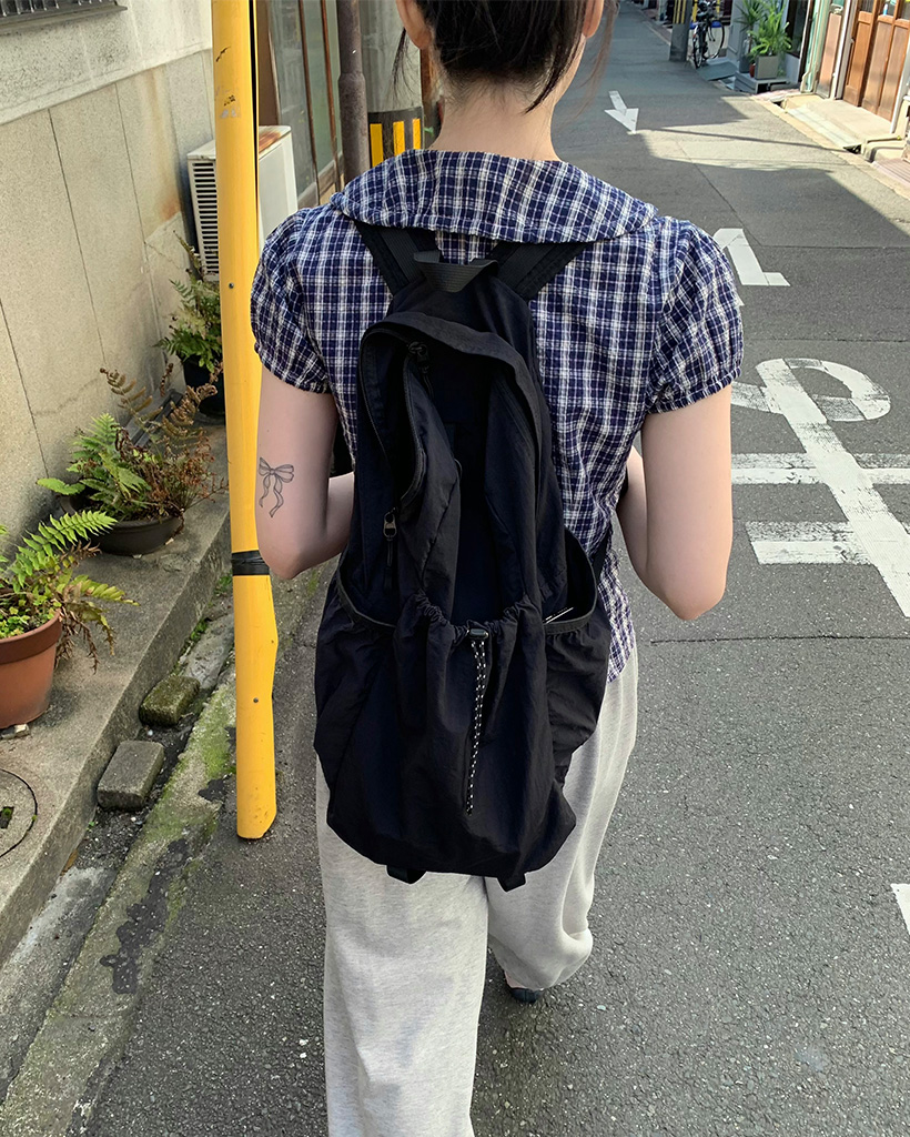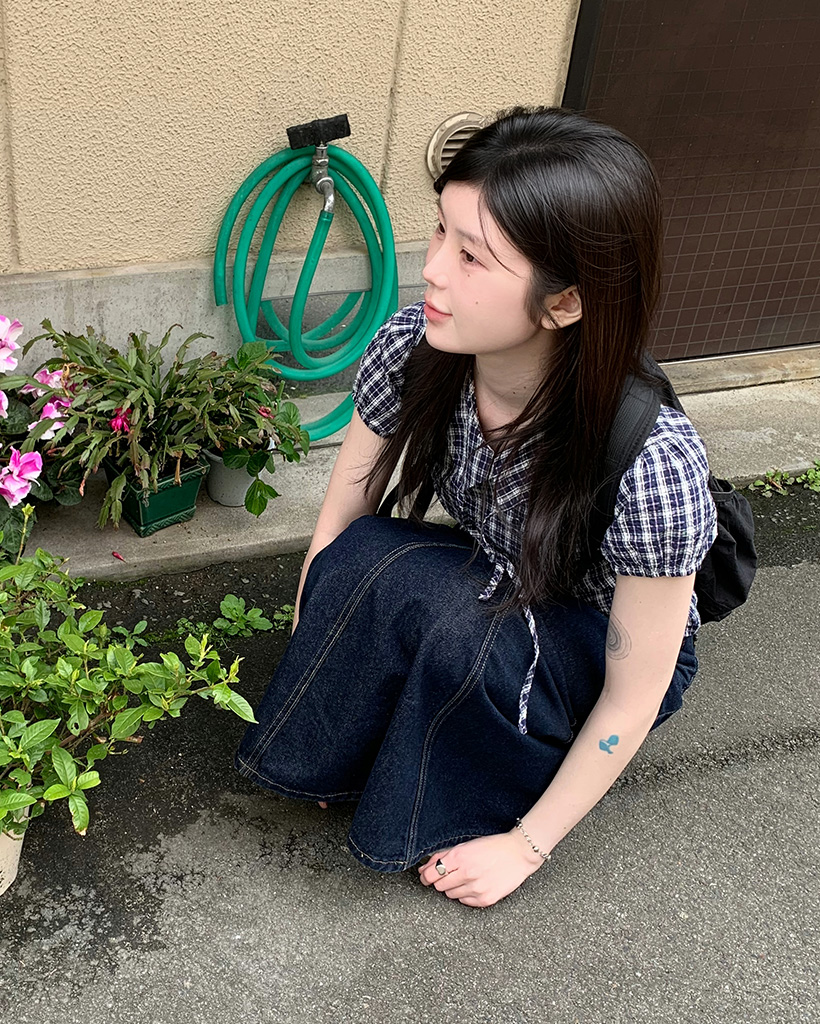 (ORIGINAL) 2wayチェックドローストリングブラウス